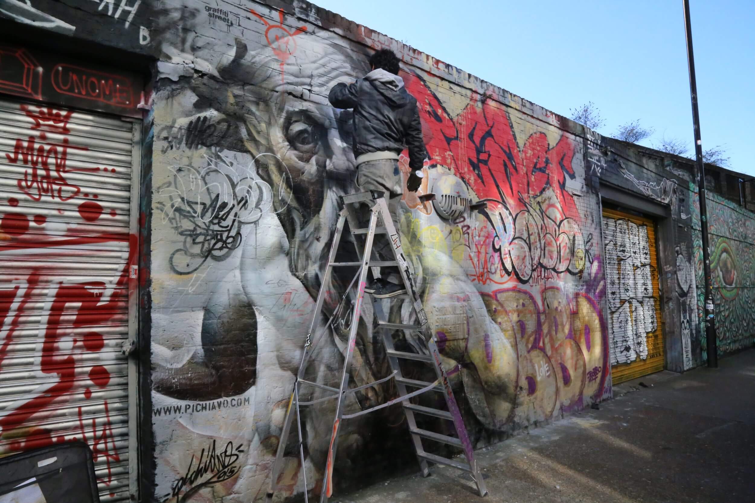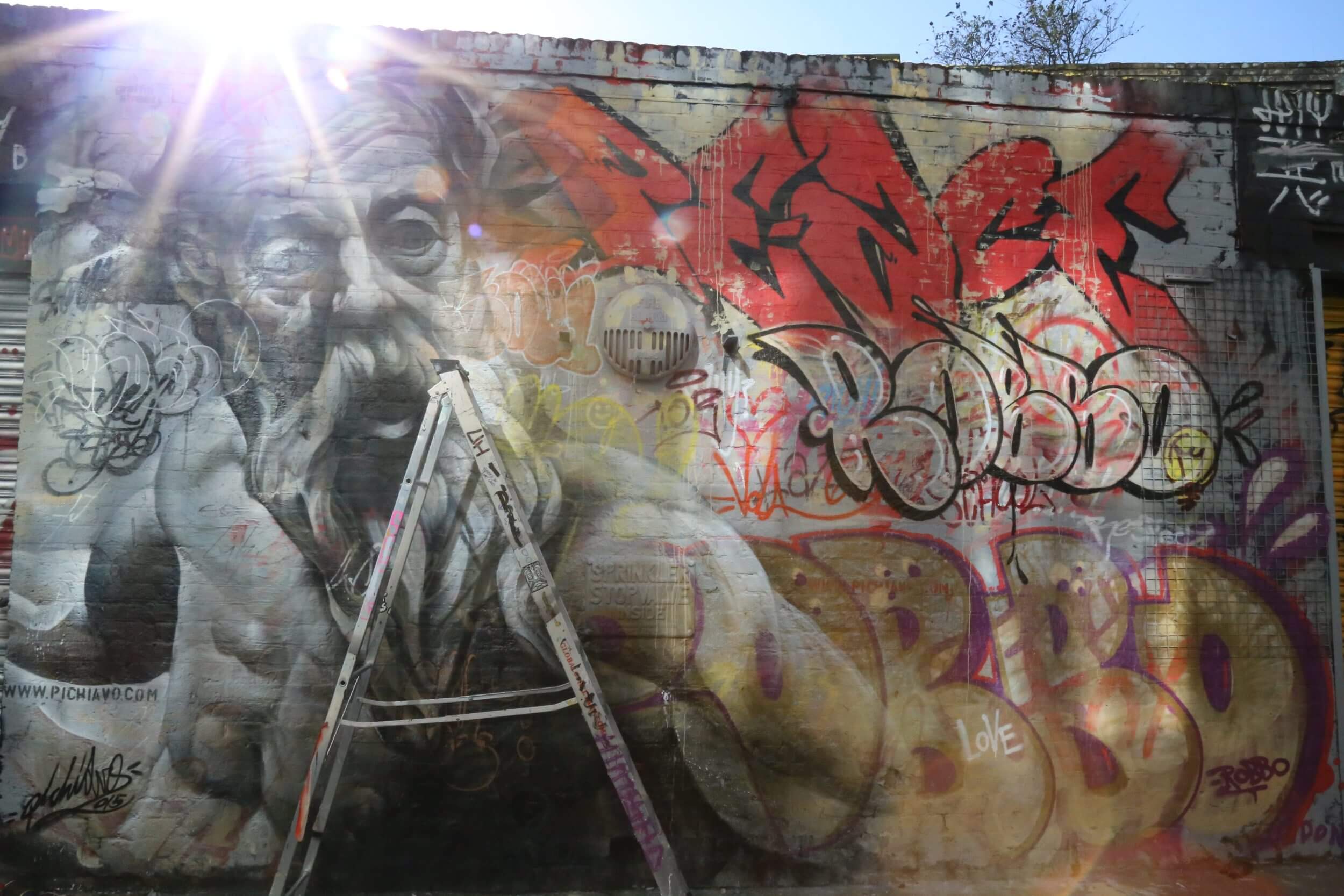 We were lucky enough to catch up with spanish graffiti duo Pichiavo. Pichi and Avo flew over from Valencia to London to show GraffitiStreet what they do best, and they certainly impressed us with their latest mural, mixing their fine art skills with graffiti writing perfectly.