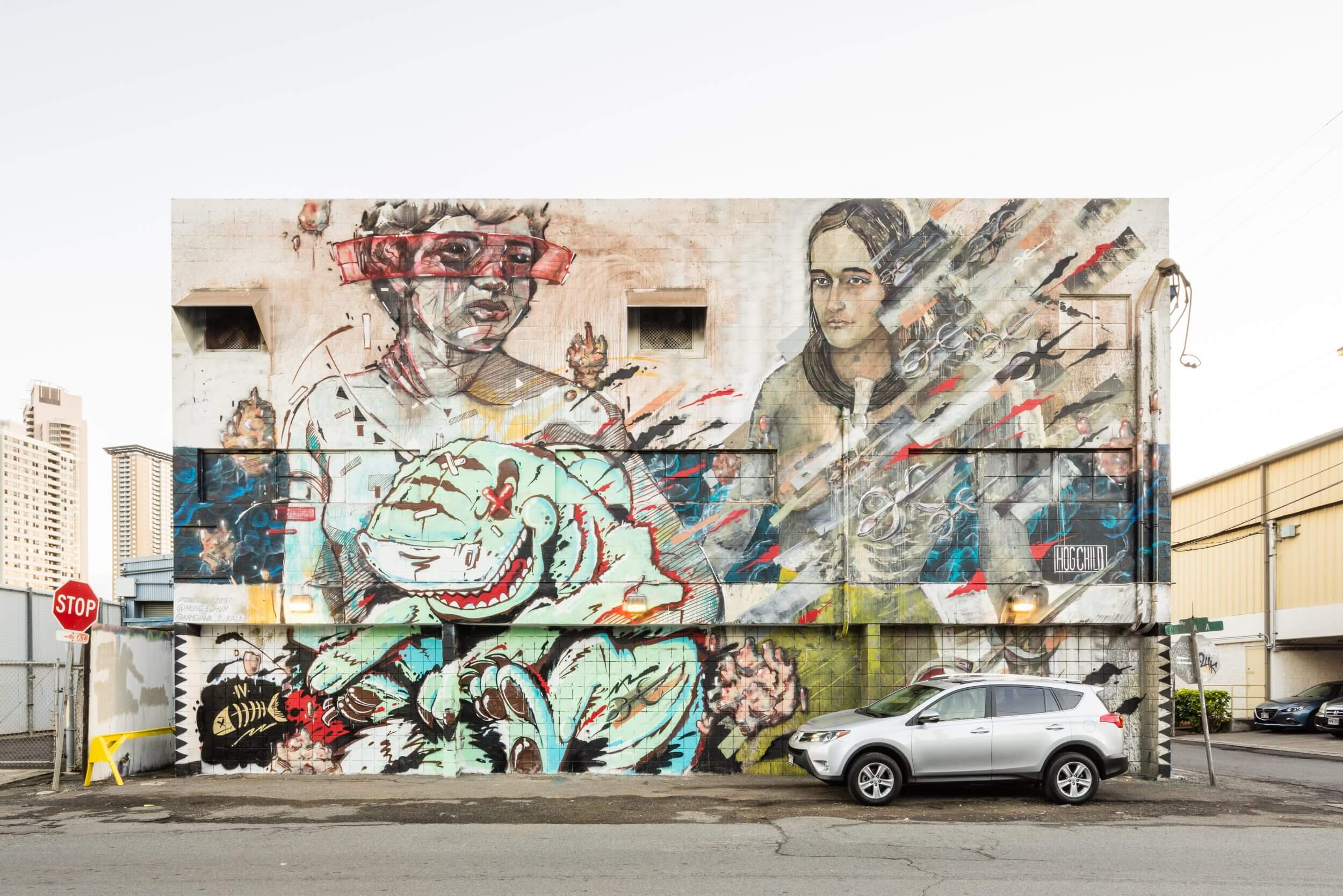 Valentine’s week not only brings love to the tropical island of Hawaii, it also brings us POW!WOW! The annual street art event, founded by Jasper Wong in 2011, has since grown to become one of the most anticipated street art events of the year. It unites more than one hundred street artists from all over the word who each unleash their creative powers within.