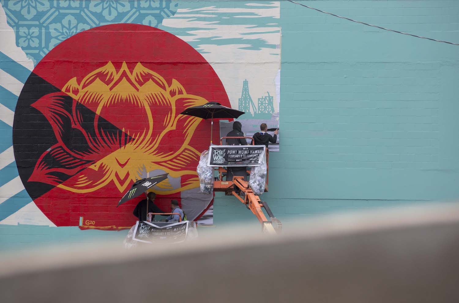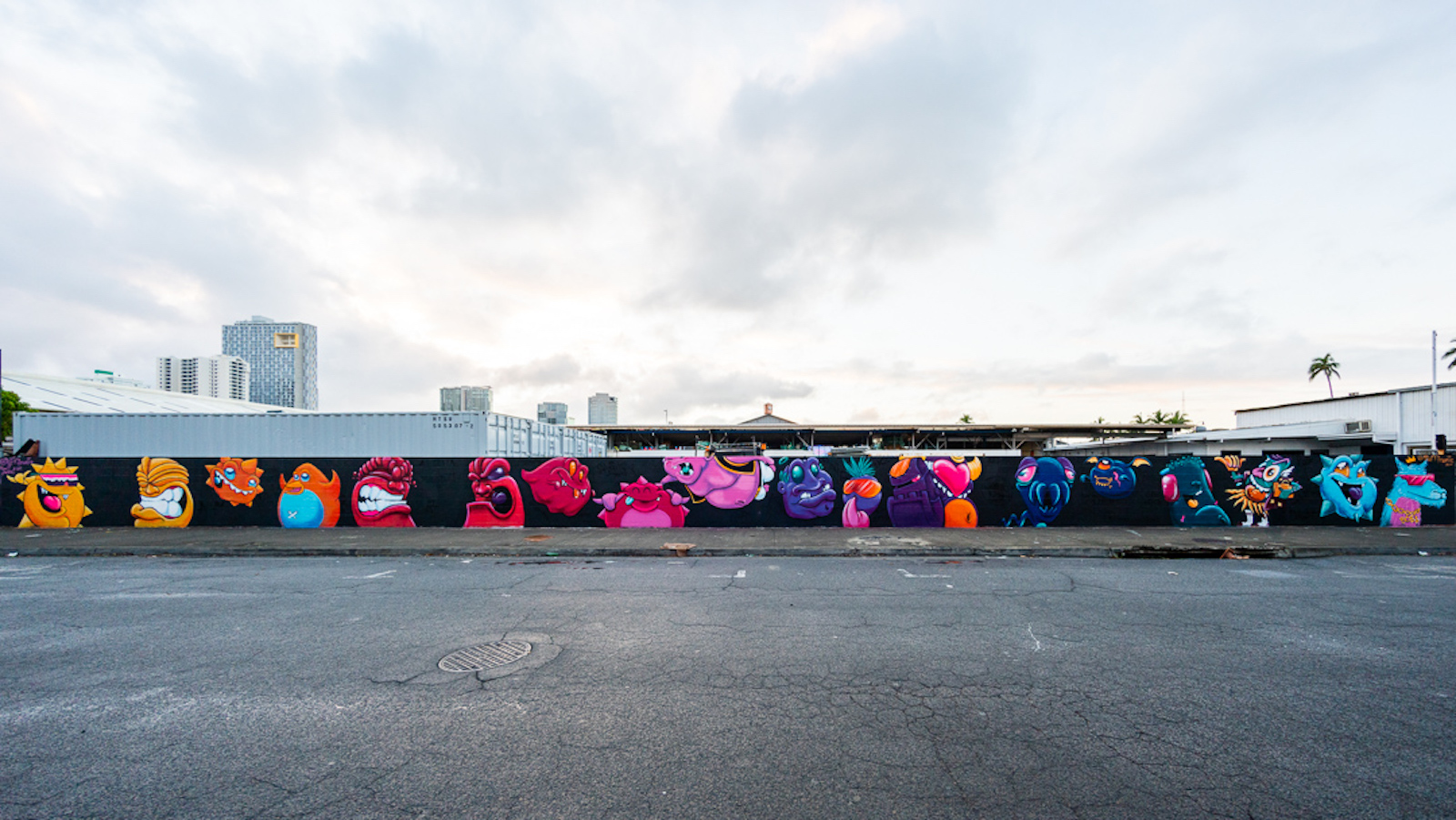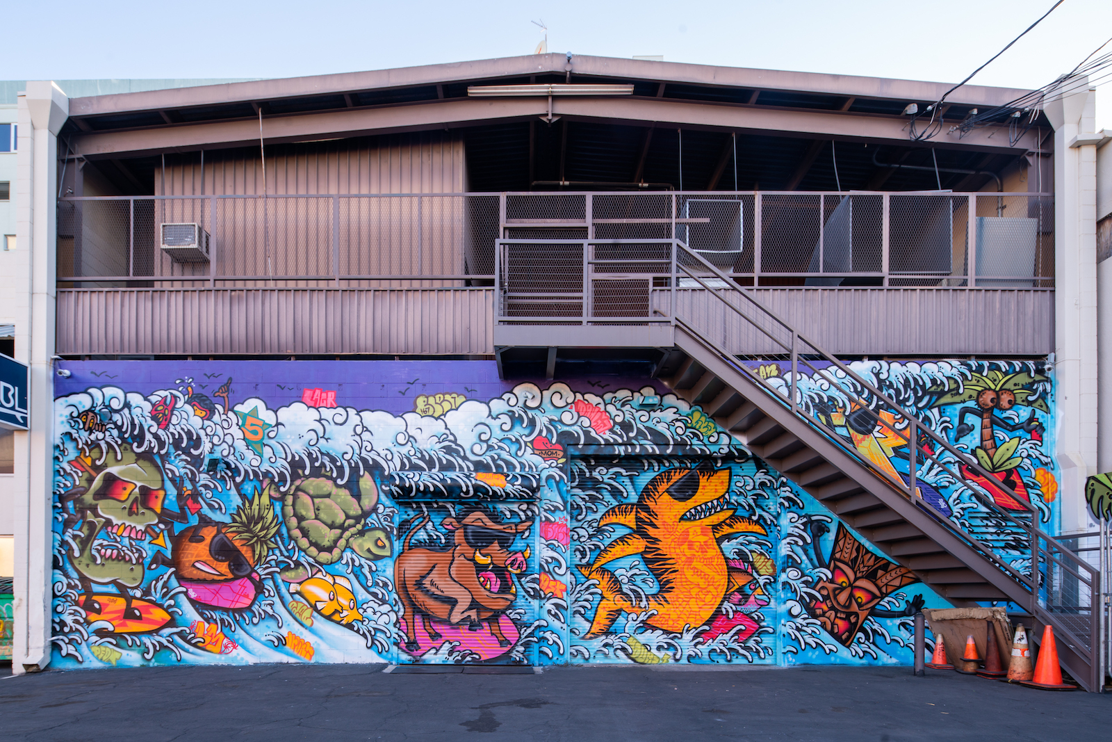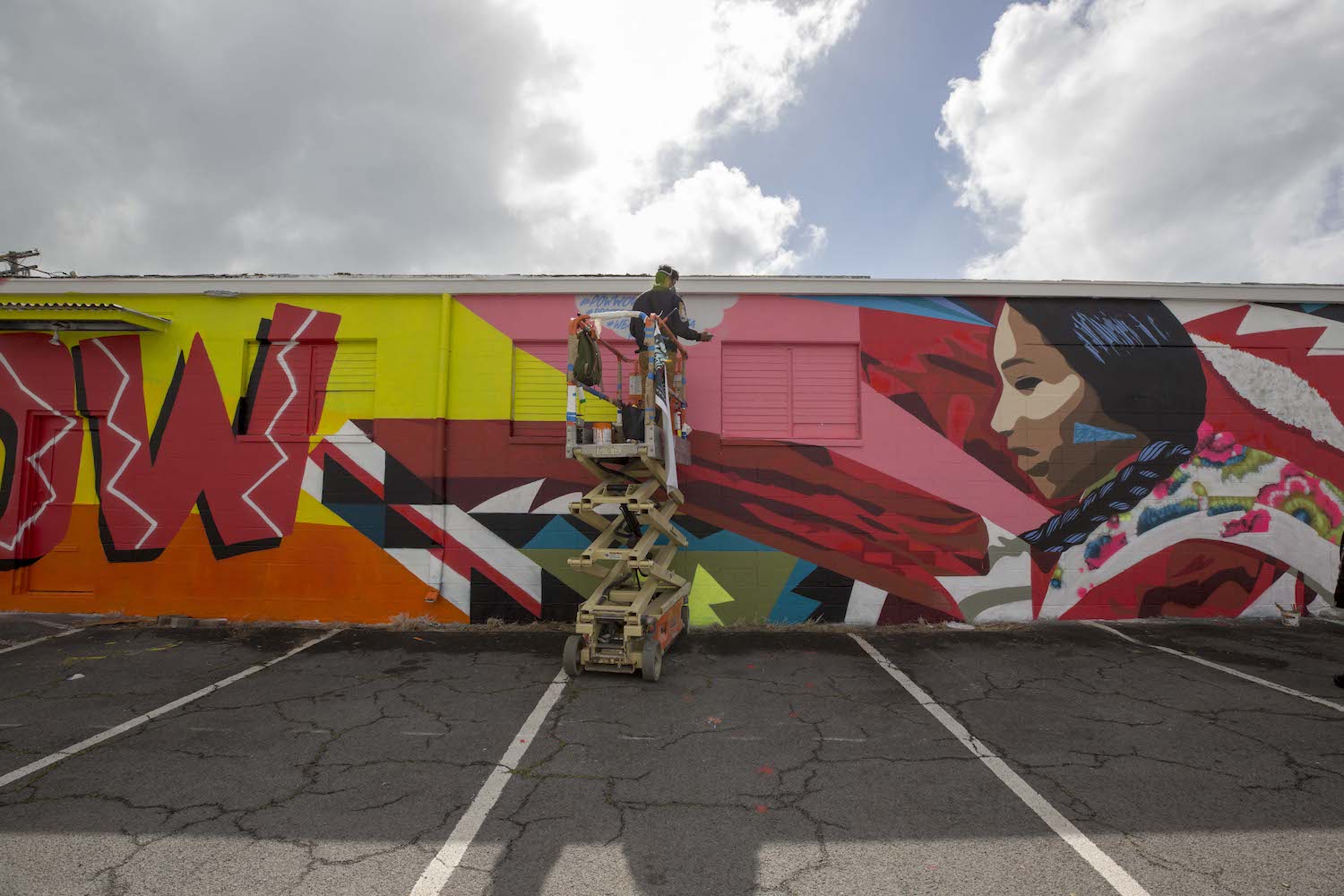 POW! WOW! Hawaii 2019 invited local and international artists to the beautiful town of Oahu, Visiting Artist Roster included Amy Sol (California), Lauren YS (California), Ekundayo (Hawaii/Washington), Joao Ruas (Brazil), Reeder One (California), Mr. Hahn of Linkin Park (Hawaii/California), ONEQ (Japan), Crash (New York), Mike McGinn of World of Dance (California), Spidertag (Spain), How Nosm (New York), Logan Hicks (New York), Zepha (France), Roamcouch (Japan), Superdeux (California), Shepard Fairey (California), Kevin Lyons (New York), Mayo (Australia), Drew Young (Canada), Eddy Angel (Florida), Aaron De La Cruz (California), Woes (Hawaii/California) and OG Slick (Hawaii/California). Local artists included 7sketches (California),Asalt (Hawaii), Cme (Hawaii),Cory Taum (Hawaii), Ckaweeks (Hawaii), Devour (Hawaii), Gary Draws Fish (Hawaii), Gavin Murai (Hawaii), Jasper Wong (Hawaii), Jeffrey Gress (Hawaii), Dak1ne (Hawaii), Kahiau Beamer (Hawaii), Kai Kaulukukui (Hawaii), Kamea Hadar (Hawaii), Kaplan Bunce (Hawaii), Katch (Hawaii), Kate Wadsworth (Hawaii), Kealakukui of 808Urban (Hawaii), Kris Goto (Hawaii), Lucky Olelo (Hawaii), Luke Dekneef (Hawaii), Render (Hawaii), Matthew Tapia (Hawaii), Maek (Hawaii), Melon James (Hawaii), Jesico Serrano (Hawaii), Oera (Hawaii), Prime (Hawaii), Puff (Hawaii), Sidy (Hawaii), Jack Soren (Hawaii), Nanea Lum (Hawaii), Ran Noveck (Hawaii), Solomon Enos (Hawaii), Unomas (Hawaii), Wooden Wave (Hawaii), Mystic (Hawaii), Gezu (Hawaii), Retsy (Hawaii) and Katoe (Hawaii).
