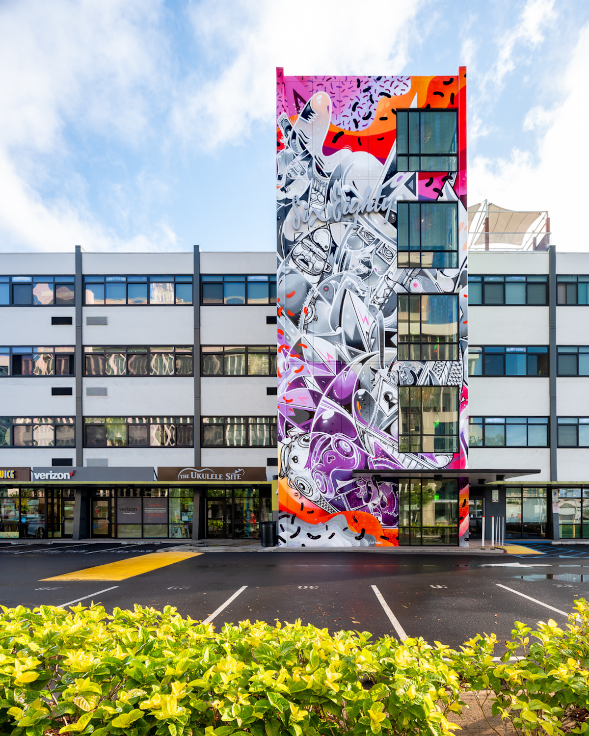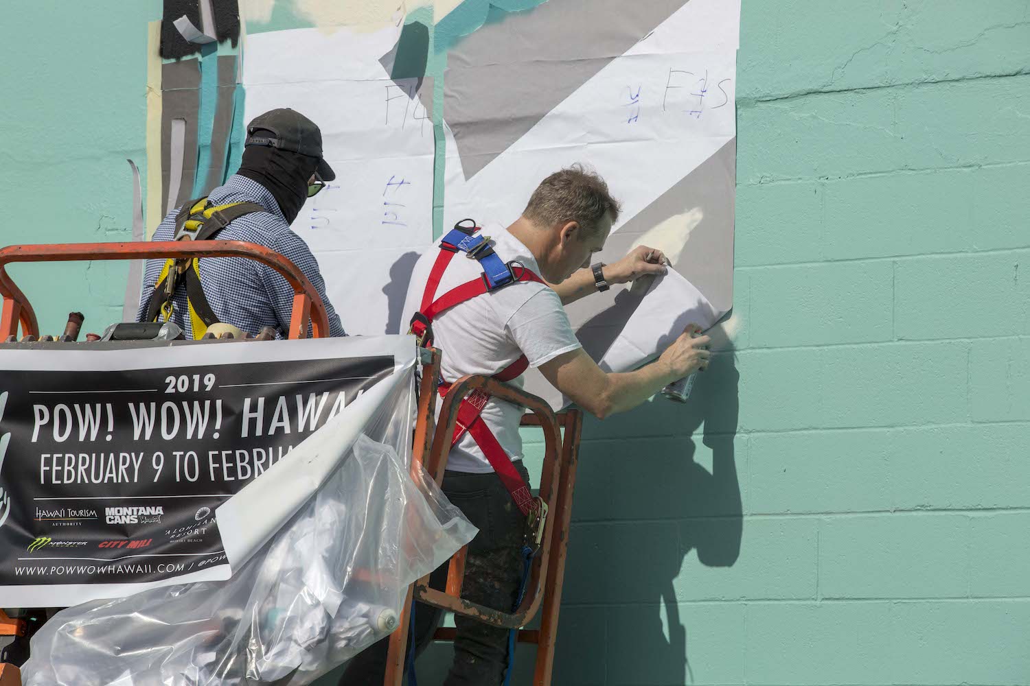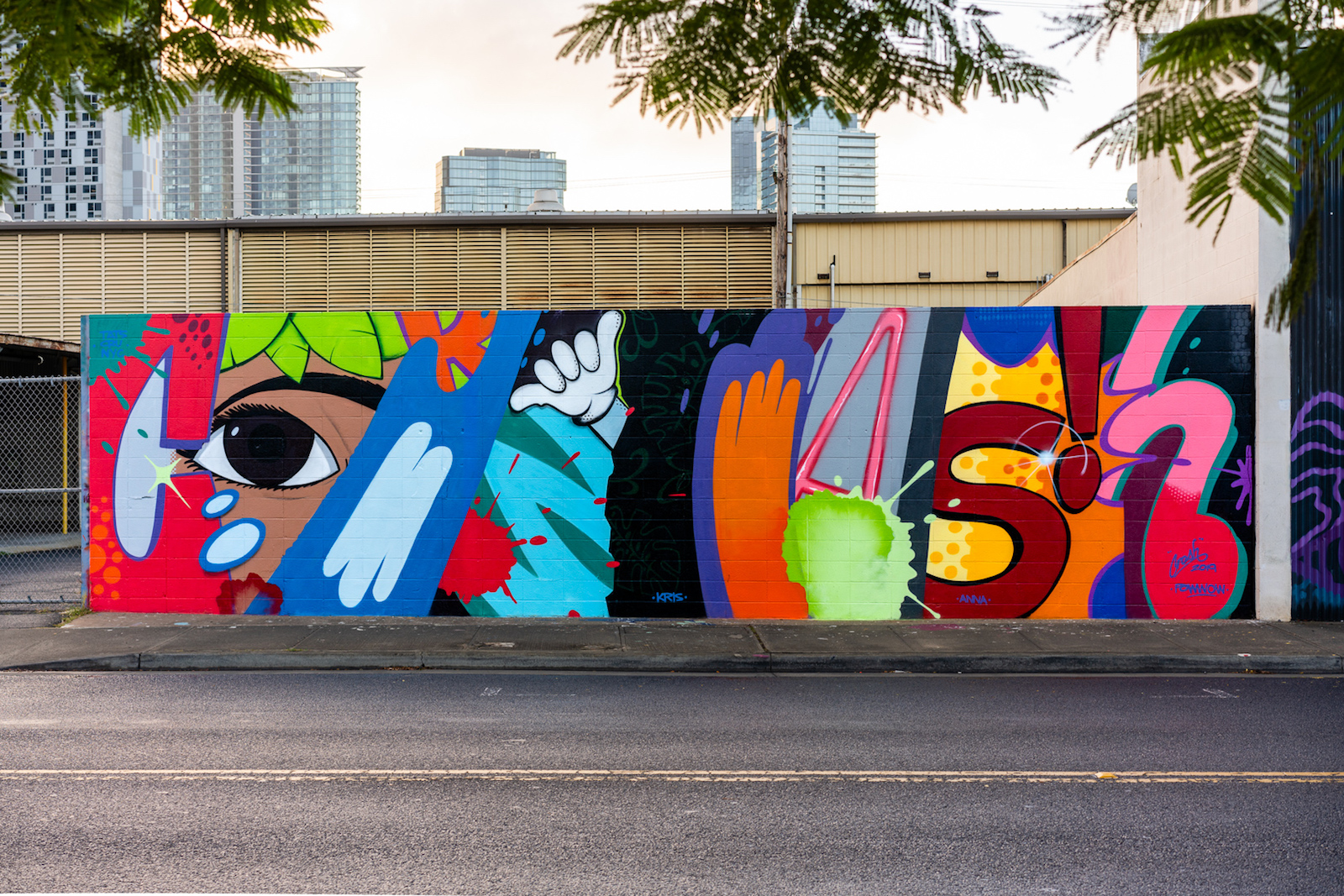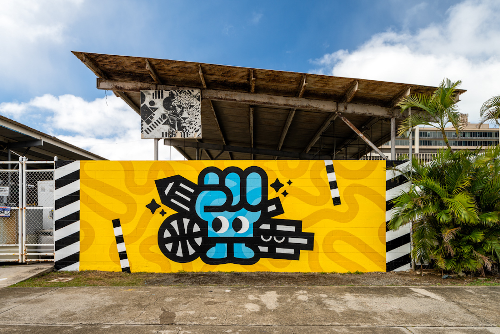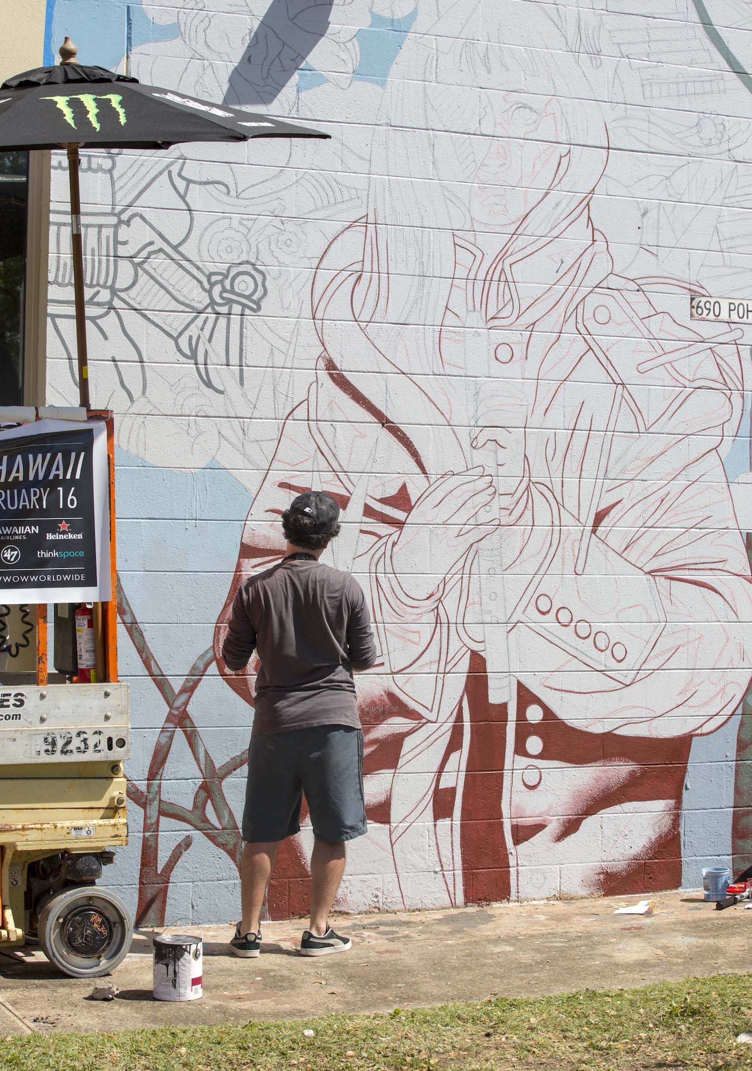 POW! WOW! Hawaii 2019 invited local and international artists to the beautiful town of Oahu, Visiting Artist Roster included Amy Sol (California), Lauren YS (California), Ekundayo (Hawaii/Washington), Joao Ruas (Brazil), Reeder One (California), Mr. Hahn of Linkin Park (Hawaii/California), ONEQ (Japan), Crash (New York), Mike McGinn of World of Dance (California), Spidertag (Spain), How Nosm (New York), Logan Hicks (New York), Zepha (France), Roamcouch (Japan), Superdeux (California), Shepard Fairey (California), Kevin Lyons (New York), Mayo (Australia), Drew Young (Canada), Eddy Angel (Florida), Aaron De La Cruz (California), Woes (Hawaii/California) and OG Slick (Hawaii/California). Local artists included 7sketches (California),Asalt (Hawaii), Cme (Hawaii),Cory Taum (Hawaii), Ckaweeks (Hawaii), Devour (Hawaii), Gary Draws Fish (Hawaii), Gavin Murai (Hawaii), Jasper Wong (Hawaii), Jeffrey Gress (Hawaii), Dak1ne (Hawaii), Kahiau Beamer (Hawaii), Kai Kaulukukui (Hawaii), Kamea Hadar (Hawaii), Kaplan Bunce (Hawaii), Katch (Hawaii), Kate Wadsworth (Hawaii), Kealakukui of 808Urban (Hawaii), Kris Goto (Hawaii), Lucky Olelo (Hawaii), Luke Dekneef (Hawaii), Render (Hawaii), Matthew Tapia (Hawaii), Maek (Hawaii), Melon James (Hawaii), Jesico Serrano (Hawaii), Oera (Hawaii), Prime (Hawaii), Puff (Hawaii), Sidy (Hawaii), Jack Soren (Hawaii), Nanea Lum (Hawaii), Ran Noveck (Hawaii), Solomon Enos (Hawaii), Unomas (Hawaii), Wooden Wave (Hawaii), Mystic (Hawaii), Gezu (Hawaii), Retsy (Hawaii) and Katoe (Hawaii).