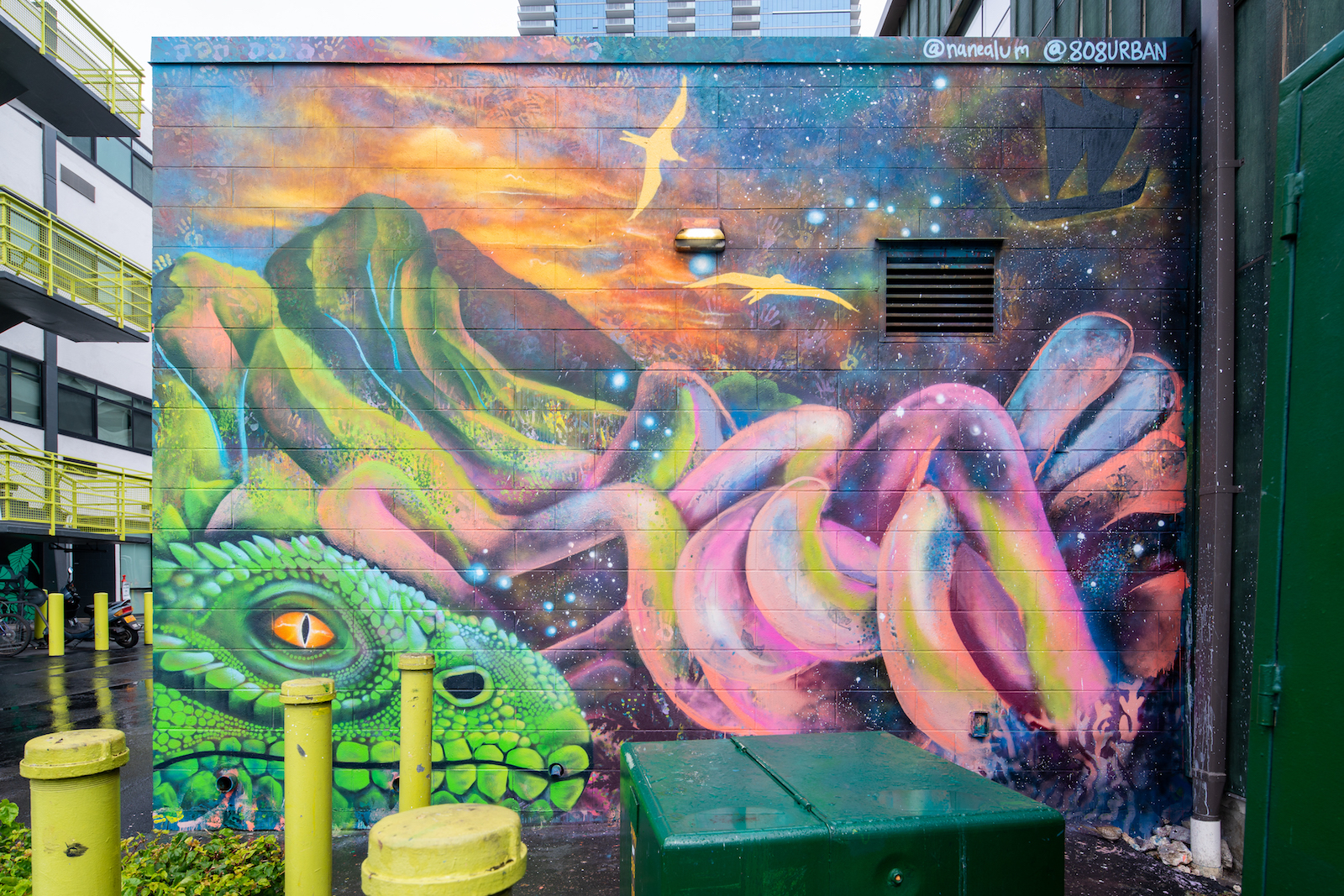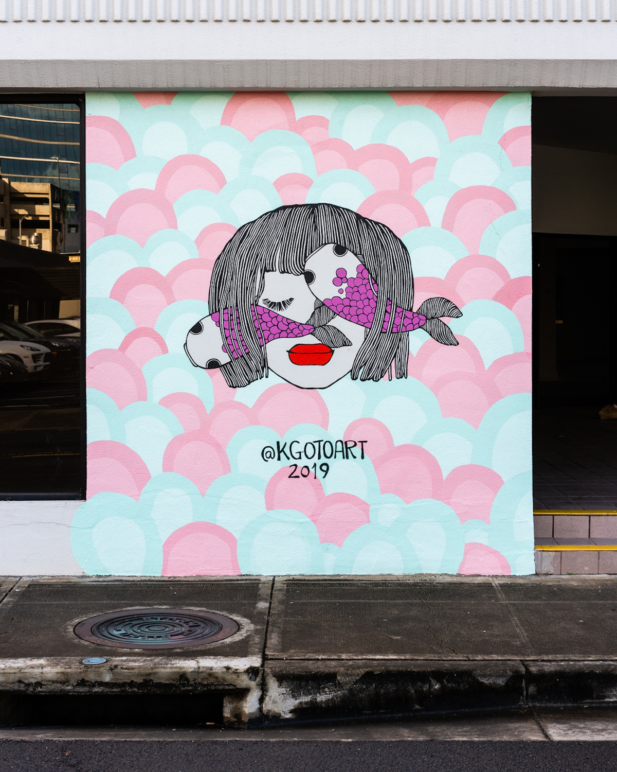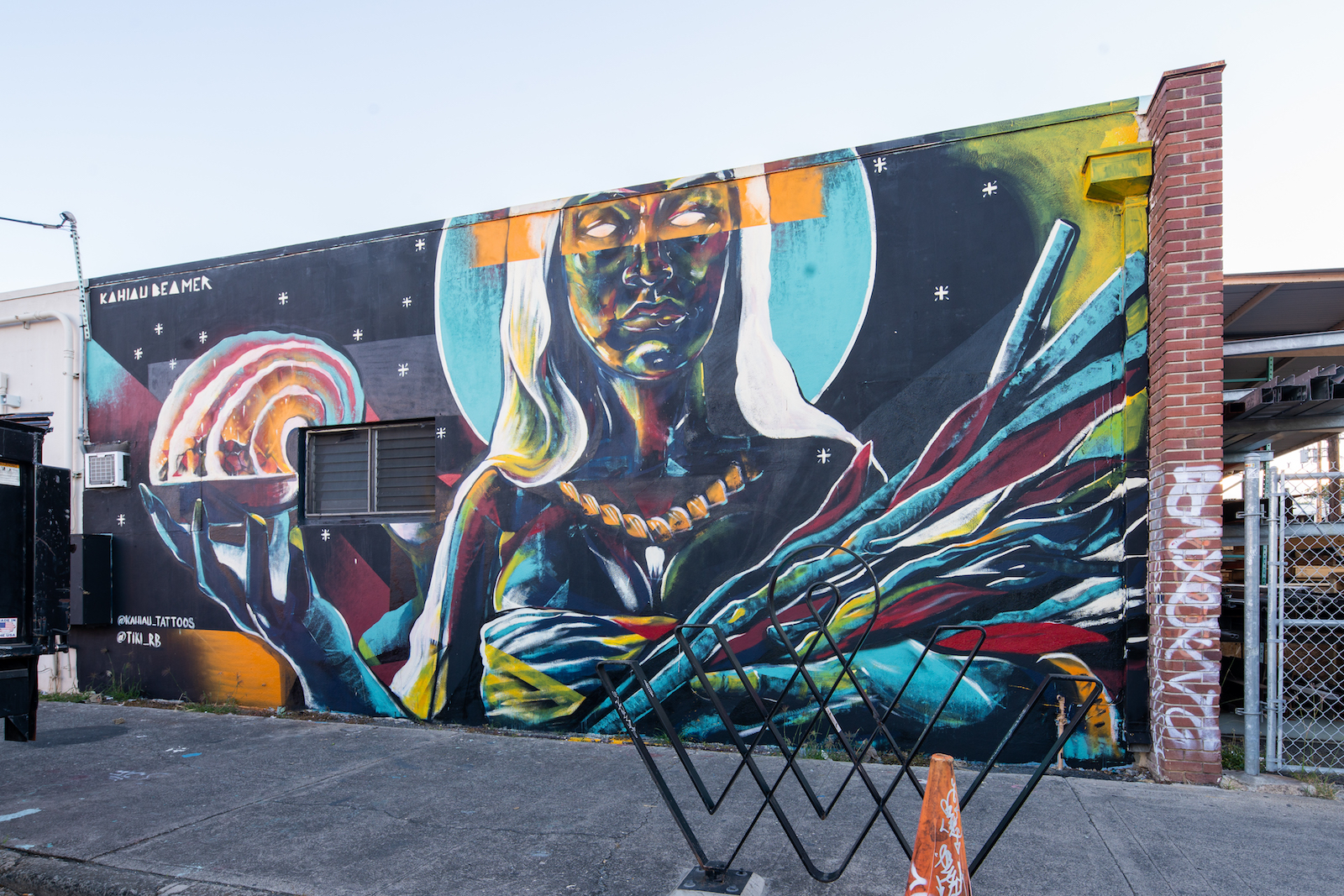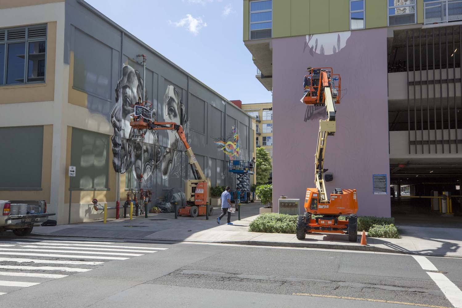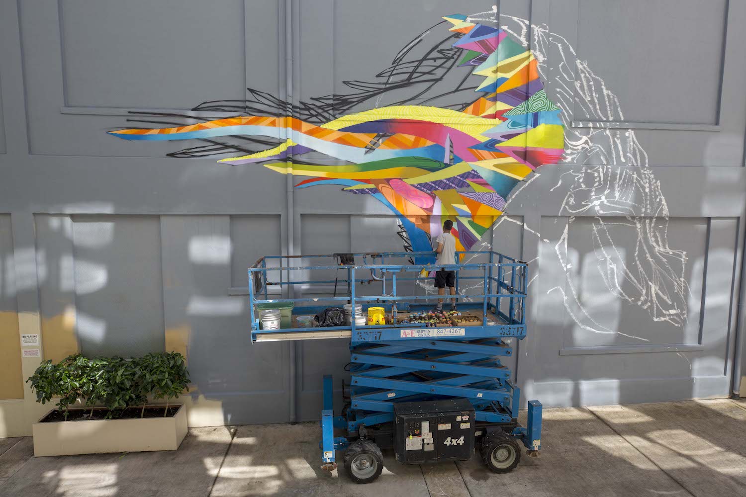 POW! WOW! Hawaii 2019 invited local and international artists to the beautiful town of Oahu, Visiting Artist Roster included Amy Sol (California), Lauren YS (California), Ekundayo (Hawaii/Washington), Joao Ruas (Brazil), Reeder One (California), Mr. Hahn of Linkin Park (Hawaii/California), ONEQ (Japan), Crash (New York), Mike McGinn of World of Dance (California), Spidertag (Spain), How Nosm (New York), Logan Hicks (New York), Zepha (France), Roamcouch (Japan), Superdeux (California), Shepard Fairey (California), Kevin Lyons (New York), Mayo (Australia), Drew Young (Canada), Eddy Angel (Florida), Aaron De La Cruz (California), Woes (Hawaii/California) and OG Slick (Hawaii/California). Local artists included 7sketches (California),Asalt (Hawaii), Cme (Hawaii),Cory Taum (Hawaii), Ckaweeks (Hawaii), Devour (Hawaii), Gary Draws Fish (Hawaii), Gavin Murai (Hawaii), Jasper Wong (Hawaii), Jeffrey Gress (Hawaii), Dak1ne (Hawaii), Kahiau Beamer (Hawaii), Kai Kaulukukui (Hawaii), Kamea Hadar (Hawaii), Kaplan Bunce (Hawaii), Katch (Hawaii), Kate Wadsworth (Hawaii), Kealakukui of 808Urban (Hawaii), Kris Goto (Hawaii), Lucky Olelo (Hawaii), Luke Dekneef (Hawaii), Render (Hawaii), Matthew Tapia (Hawaii), Maek (Hawaii), Melon James (Hawaii), Jesico Serrano (Hawaii), Oera (Hawaii), Prime (Hawaii), Puff (Hawaii), Sidy (Hawaii), Jack Soren (Hawaii), Nanea Lum (Hawaii), Ran Noveck (Hawaii), Solomon Enos (Hawaii), Unomas (Hawaii), Wooden Wave (Hawaii), Mystic (Hawaii), Gezu (Hawaii), Retsy (Hawaii) and Katoe (Hawaii).