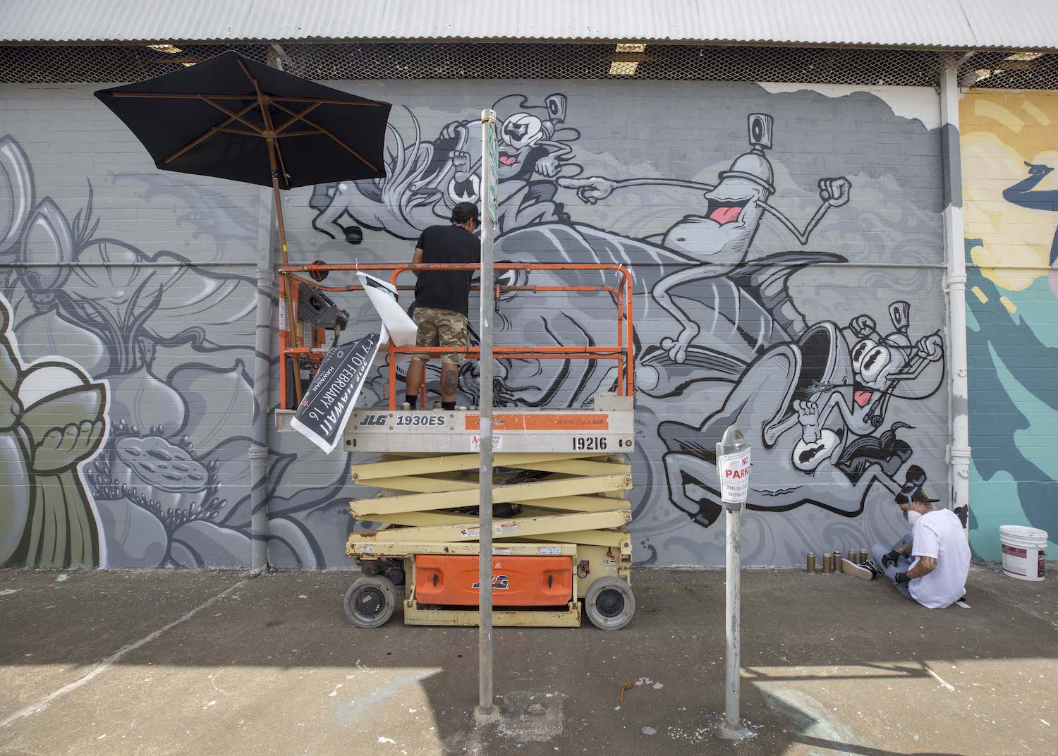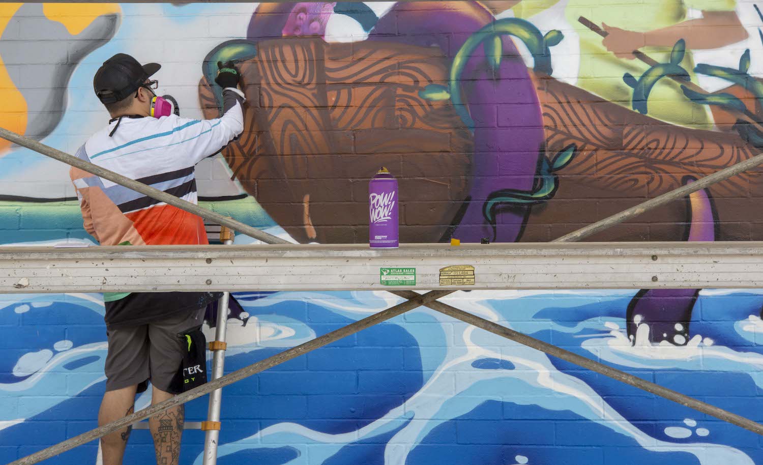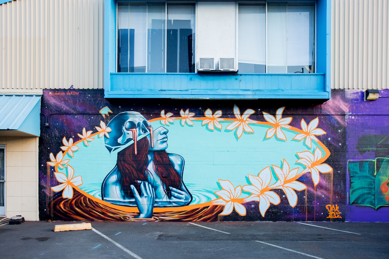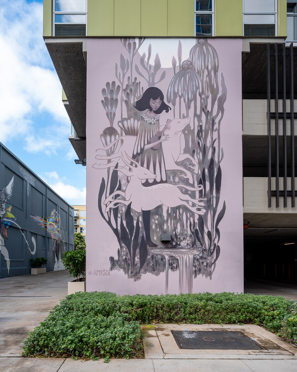 POW! WOW! Hawaii 2019 invited local and international artists to the beautiful town of Oahu, Visiting Artist Roster included Amy Sol (California), Lauren YS (California), Ekundayo (Hawaii/Washington), Joao Ruas (Brazil), Reeder One (California), Mr. Hahn of Linkin Park (Hawaii/California), ONEQ (Japan), Crash (New York), Mike McGinn of World of Dance (California), Spidertag (Spain), How Nosm (New York), Logan Hicks (New York), Zepha (France), Roamcouch (Japan), Superdeux (California), Shepard Fairey (California), Kevin Lyons (New York), Mayo (Australia), Drew Young (Canada), Eddy Angel (Florida), Aaron De La Cruz (California), Woes (Hawaii/California) and OG Slick (Hawaii/California). Local artists included 7sketches (California),Asalt (Hawaii), Cme (Hawaii),Cory Taum (Hawaii), Ckaweeks (Hawaii), Devour (Hawaii), Gary Draws Fish (Hawaii), Gavin Murai (Hawaii), Jasper Wong (Hawaii), Jeffrey Gress (Hawaii), Dak1ne (Hawaii), Kahiau Beamer (Hawaii), Kai Kaulukukui (Hawaii), Kamea Hadar (Hawaii), Kaplan Bunce (Hawaii), Katch (Hawaii), Kate Wadsworth (Hawaii), Kealakukui of 808Urban (Hawaii), Kris Goto (Hawaii), Lucky Olelo (Hawaii), Luke Dekneef (Hawaii), Render (Hawaii), Matthew Tapia (Hawaii), Maek (Hawaii), Melon James (Hawaii), Jesico Serrano (Hawaii), Oera (Hawaii), Prime (Hawaii), Puff (Hawaii), Sidy (Hawaii), Jack Soren (Hawaii), Nanea Lum (Hawaii), Ran Noveck (Hawaii), Solomon Enos (Hawaii), Unomas (Hawaii), Wooden Wave (Hawaii), Mystic (Hawaii), Gezu (Hawaii), Retsy (Hawaii) and Katoe (Hawaii).