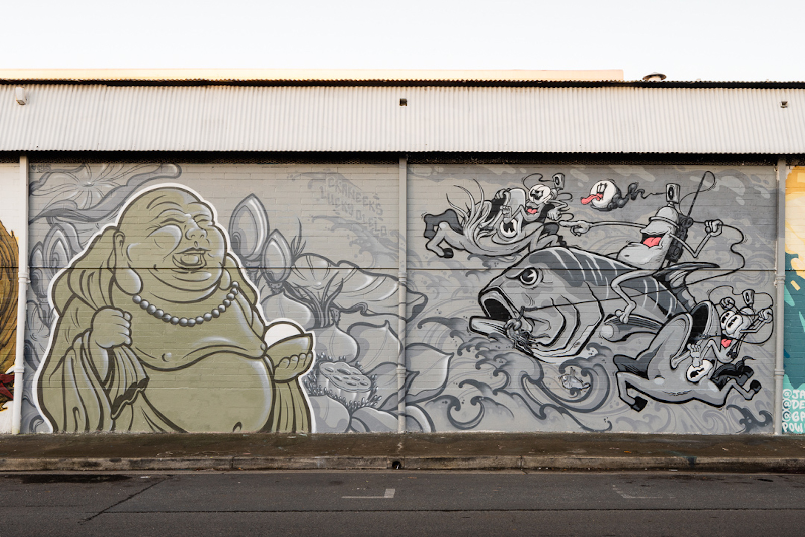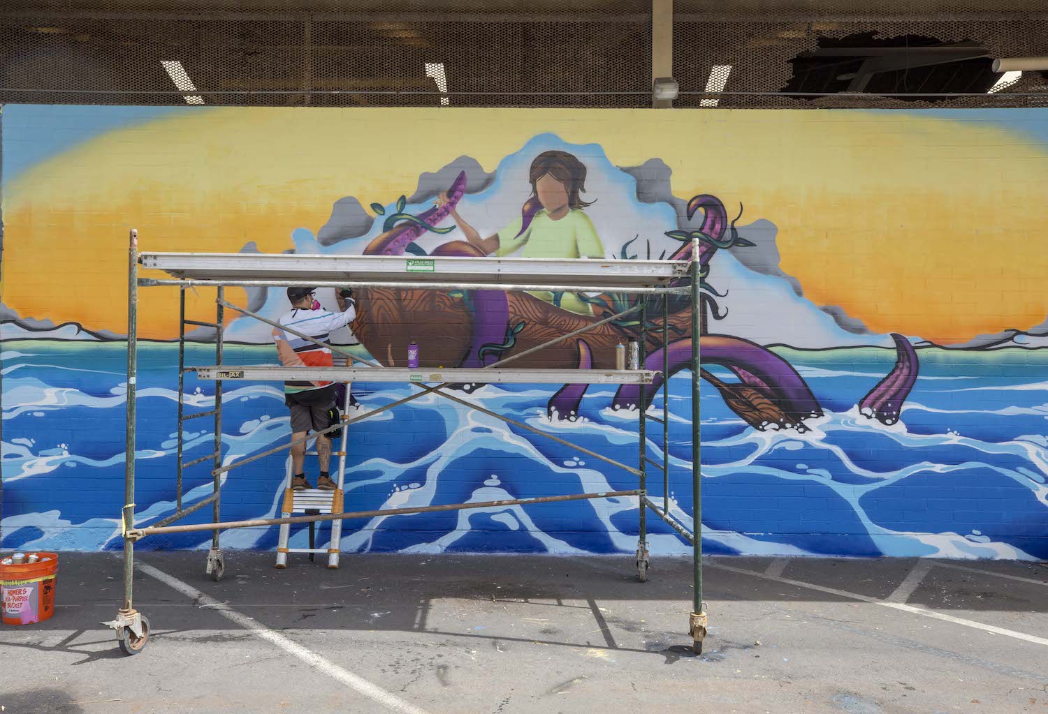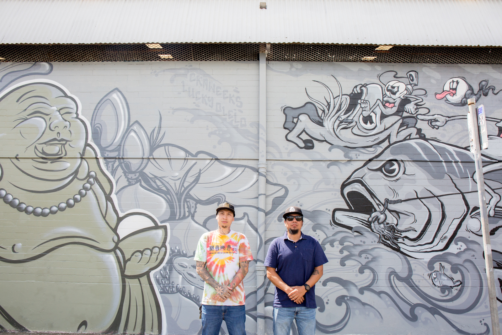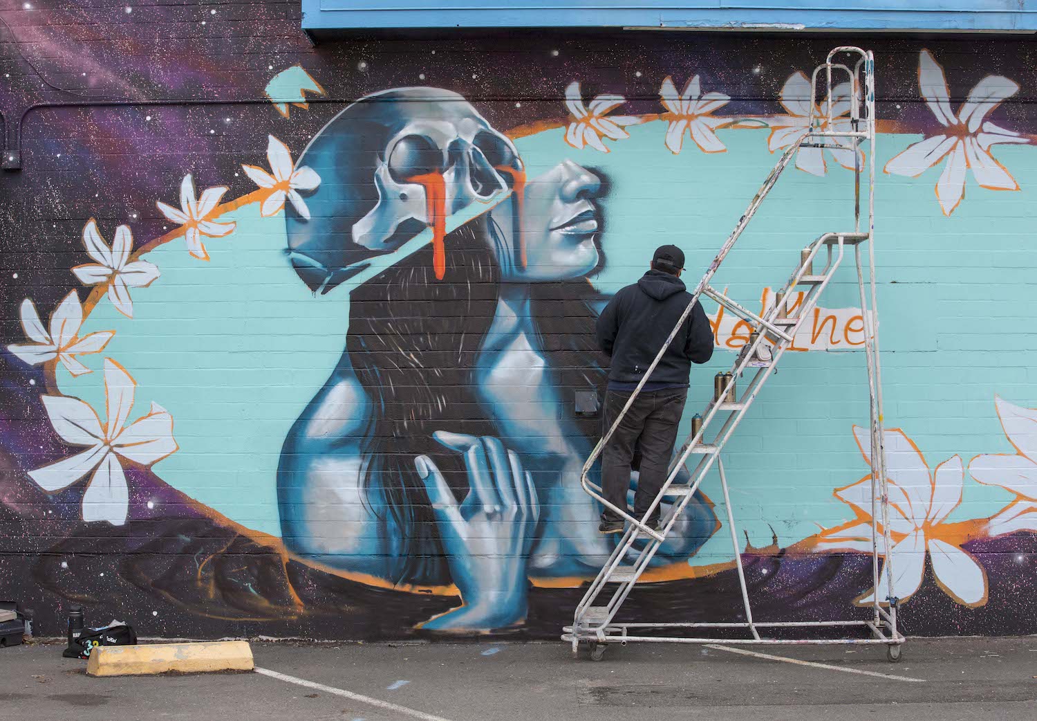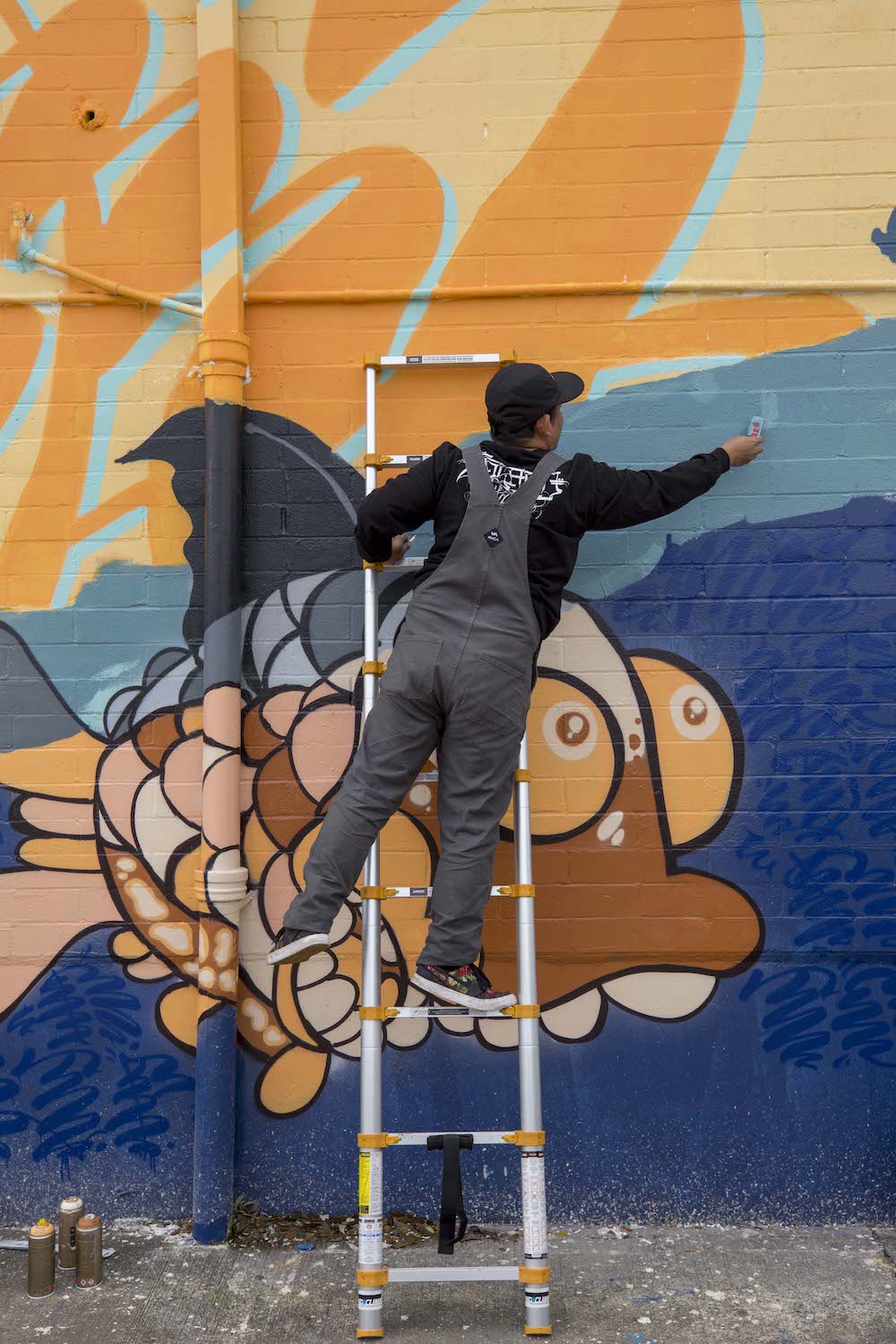 POW! WOW! Hawaii 2019 invited local and international artists to the beautiful town of Oahu, Visiting Artist Roster included Amy Sol (California), Lauren YS (California), Ekundayo (Hawaii/Washington), Joao Ruas (Brazil), Reeder One (California), Mr. Hahn of Linkin Park (Hawaii/California), ONEQ (Japan), Crash (New York), Mike McGinn of World of Dance (California), Spidertag (Spain), How Nosm (New York), Logan Hicks (New York), Zepha (France), Roamcouch (Japan), Superdeux (California), Shepard Fairey (California), Kevin Lyons (New York), Mayo (Australia), Drew Young (Canada), Eddy Angel (Florida), Aaron De La Cruz (California), Woes (Hawaii/California) and OG Slick (Hawaii/California). Local artists included 7sketches (California),Asalt (Hawaii), Cme (Hawaii),Cory Taum (Hawaii), Ckaweeks (Hawaii), Devour (Hawaii), Gary Draws Fish (Hawaii), Gavin Murai (Hawaii), Jasper Wong (Hawaii), Jeffrey Gress (Hawaii), Dak1ne (Hawaii), Kahiau Beamer (Hawaii), Kai Kaulukukui (Hawaii), Kamea Hadar (Hawaii), Kaplan Bunce (Hawaii), Katch (Hawaii), Kate Wadsworth (Hawaii), Kealakukui of 808Urban (Hawaii), Kris Goto (Hawaii), Lucky Olelo (Hawaii), Luke Dekneef (Hawaii), Render (Hawaii), Matthew Tapia (Hawaii), Maek (Hawaii), Melon James (Hawaii), Jesico Serrano (Hawaii), Oera (Hawaii), Prime (Hawaii), Puff (Hawaii), Sidy (Hawaii), Jack Soren (Hawaii), Nanea Lum (Hawaii), Ran Noveck (Hawaii), Solomon Enos (Hawaii), Unomas (Hawaii), Wooden Wave (Hawaii), Mystic (Hawaii), Gezu (Hawaii), Retsy (Hawaii) and Katoe (Hawaii).