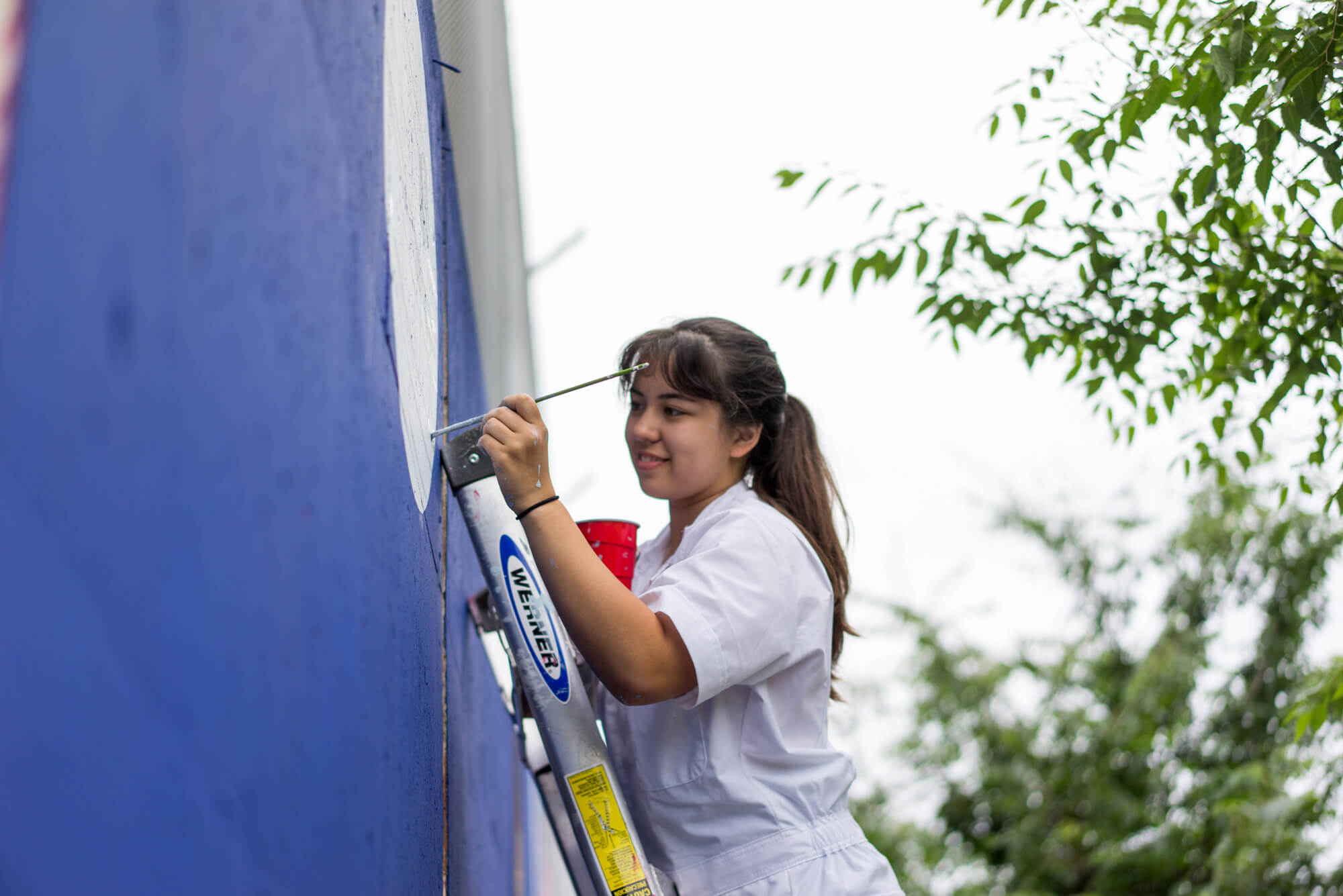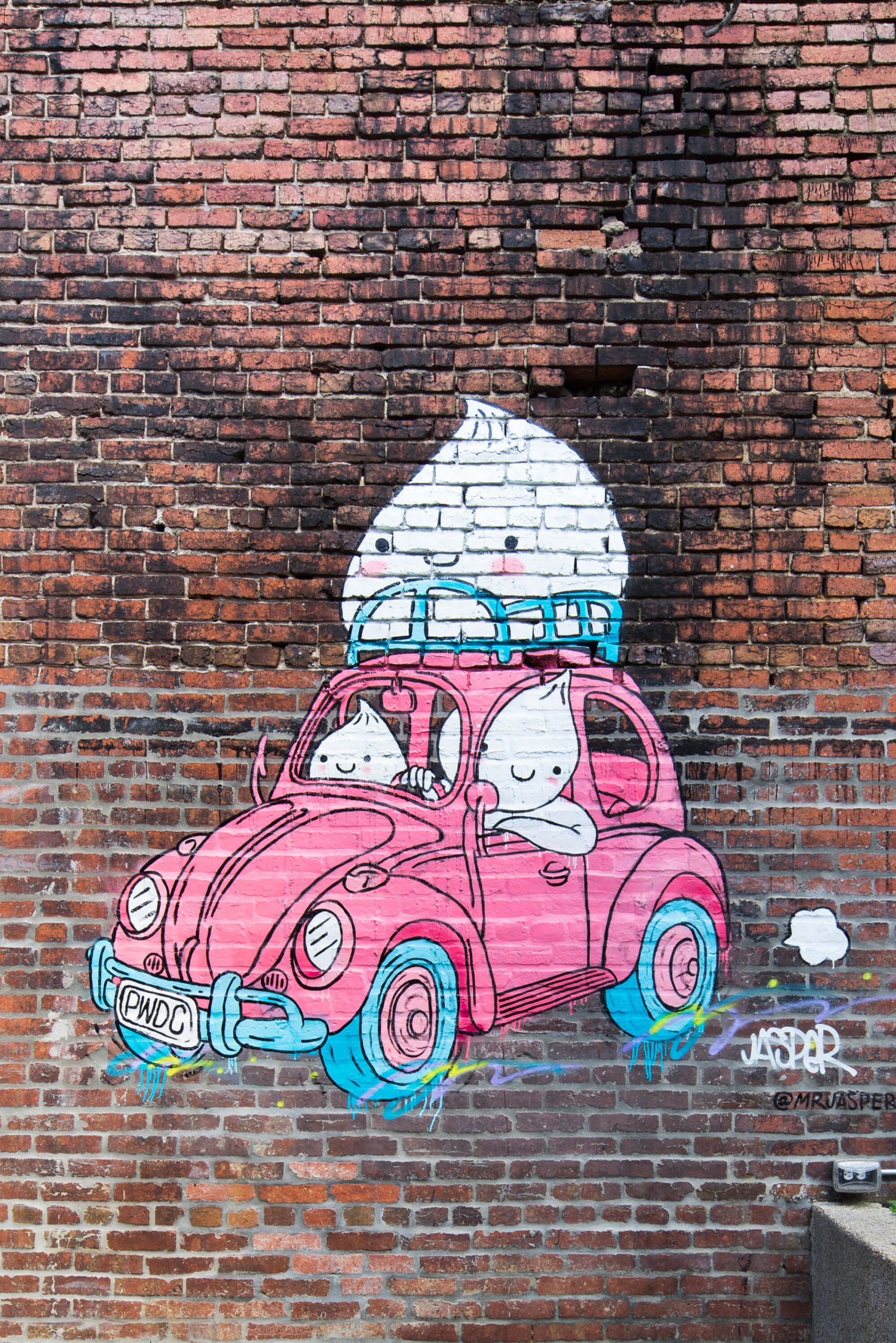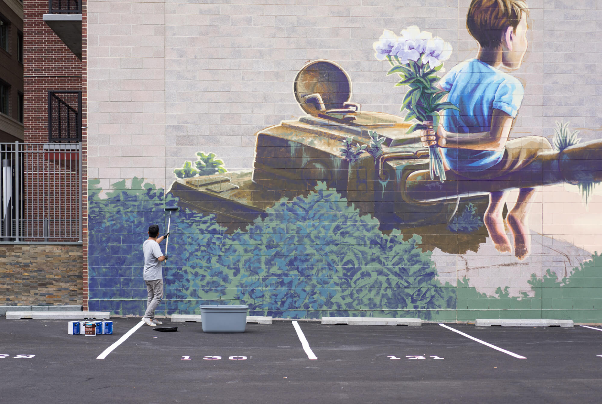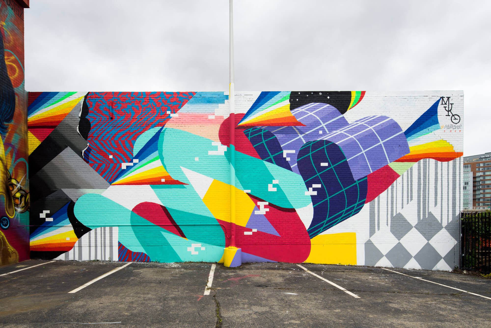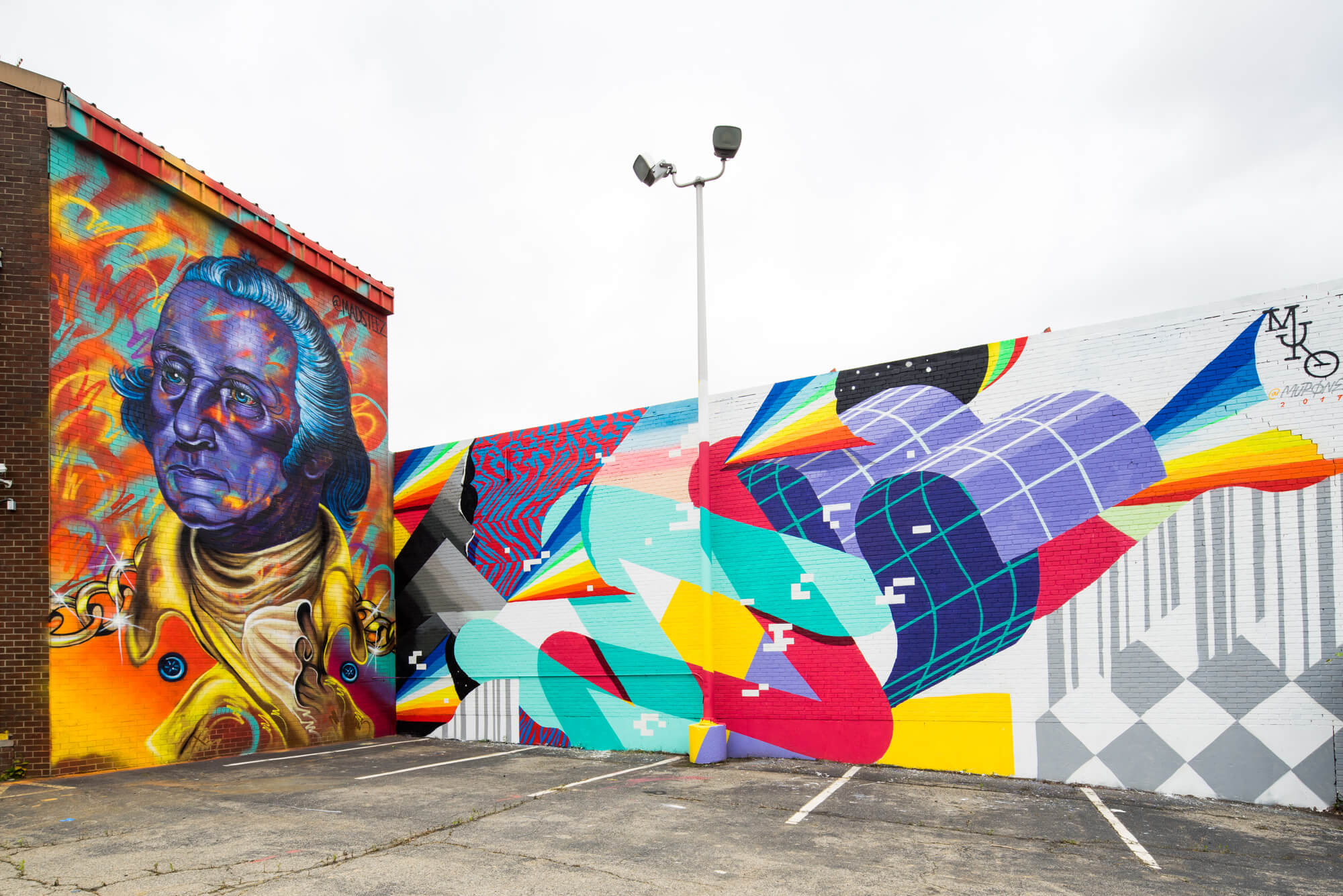 This year’s POW! WOW! DC roster of fifteen artists included eight from the Washington region; CHELOVE (D.C.), JD Deardourff (D.C.), Jordann Wine (D.C.), Julia Chon (D.C.), Key Han (D.C.), Martin, Swift (D.C.), Mas Paz (D.C.), Matt Corrado (D.C.); four from across the U.S., Kaplan Bunce (Hawaii), Madsteez (California), TRAV (California), including legendary New York graffiti artist STASH; and three international artists, It’s a Living (Mexico), Muro (Spain) and Qbic (Russia).