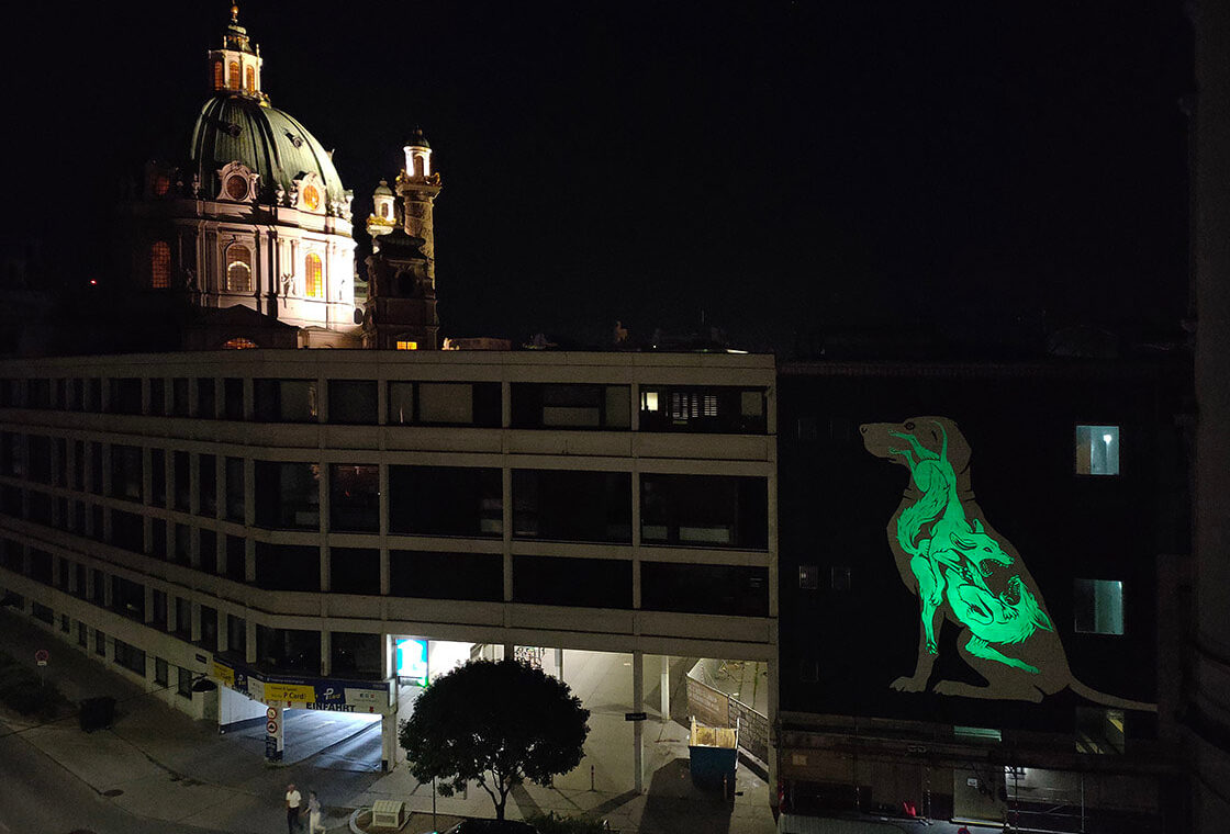 The mural can be found on the Wien Museum, Austria and was painted by Reskate, an artistic collective formed by Minuskula (María López – 1980) and Javier de Riba (1985), for the Calle Libre Festival 2019.
