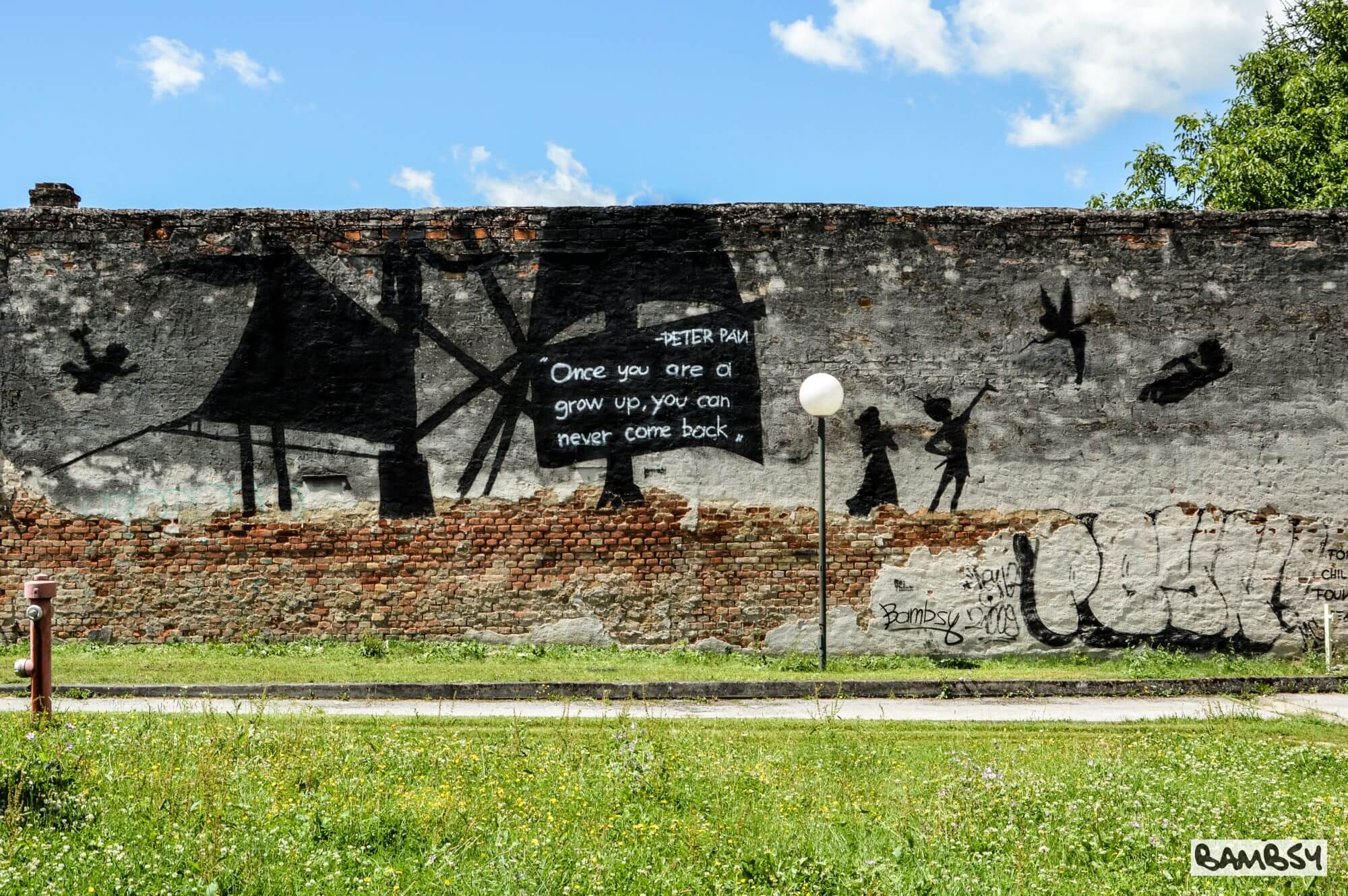 Therefore, the first edition of the festival has selected 10 locations for 10 artists: location within the residential area, location which includes a space that no longer has their original purpose (usually deserted premises), a location that has a specific socio-historical connotations (this year, the wall located near the former notorious WWII concentration camp for children was chosen for a Bambsy and Robin Abramovich collaboration project called “Escape to Neverland”)