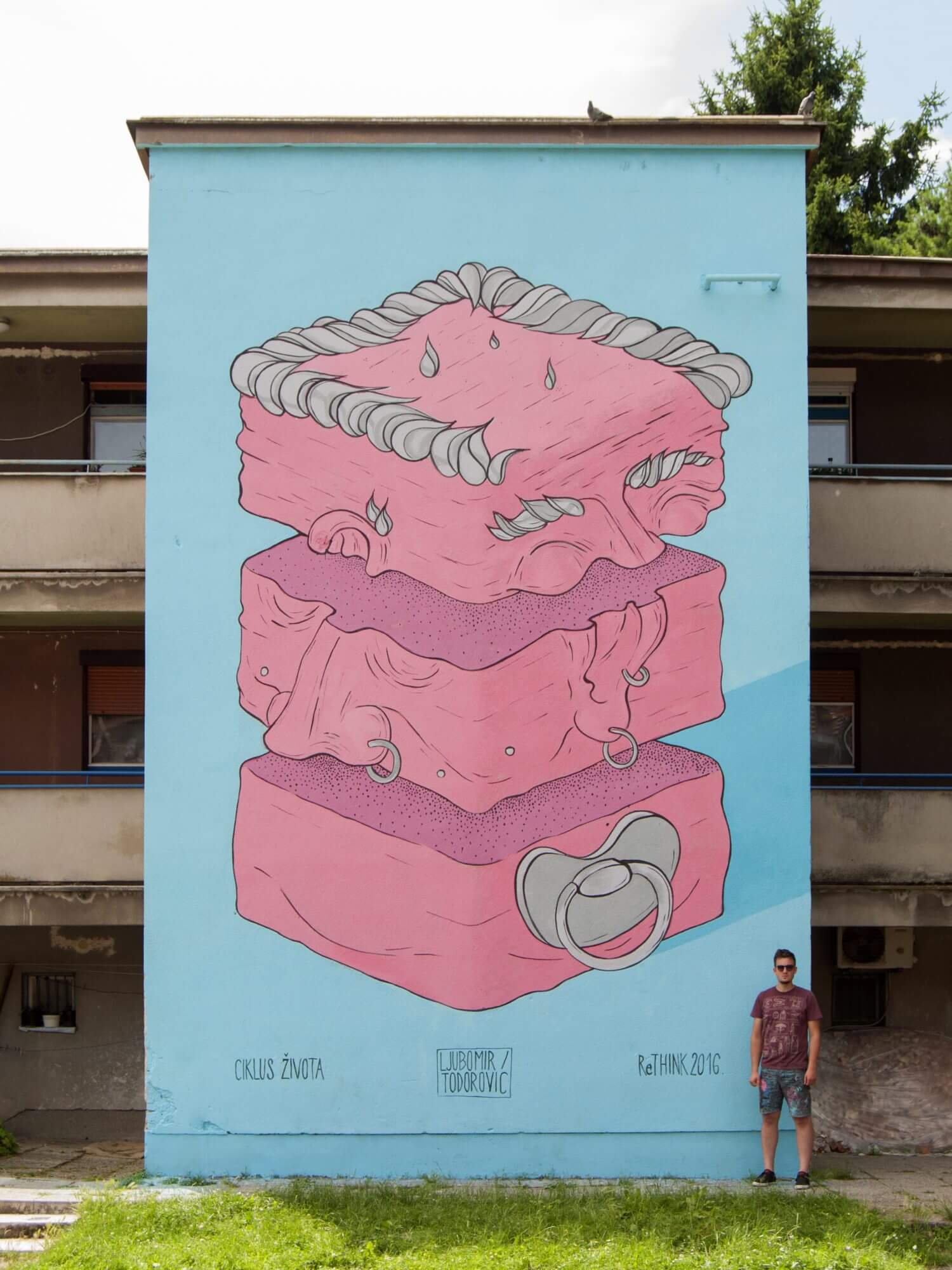 Artists invited for Re:Think first edition include; Jana Danilović (Belgrade, Serbia), Tifani Rubi (Zagreb, Croatia), Lonac (Zagreb, Croatia), Lunar (Zagreb, Croatia), Auks (Osijek, Croatia), Azram (Ljubljana, Slovenia), Ljubomir Todorović (Tuzla, BiH), Mane Mei (Zagreb, Croatia), Robin Abramovich with a Bambsy project (Vienna- Mostar, BiH), and a graffitti writer from Sisak, Neman.