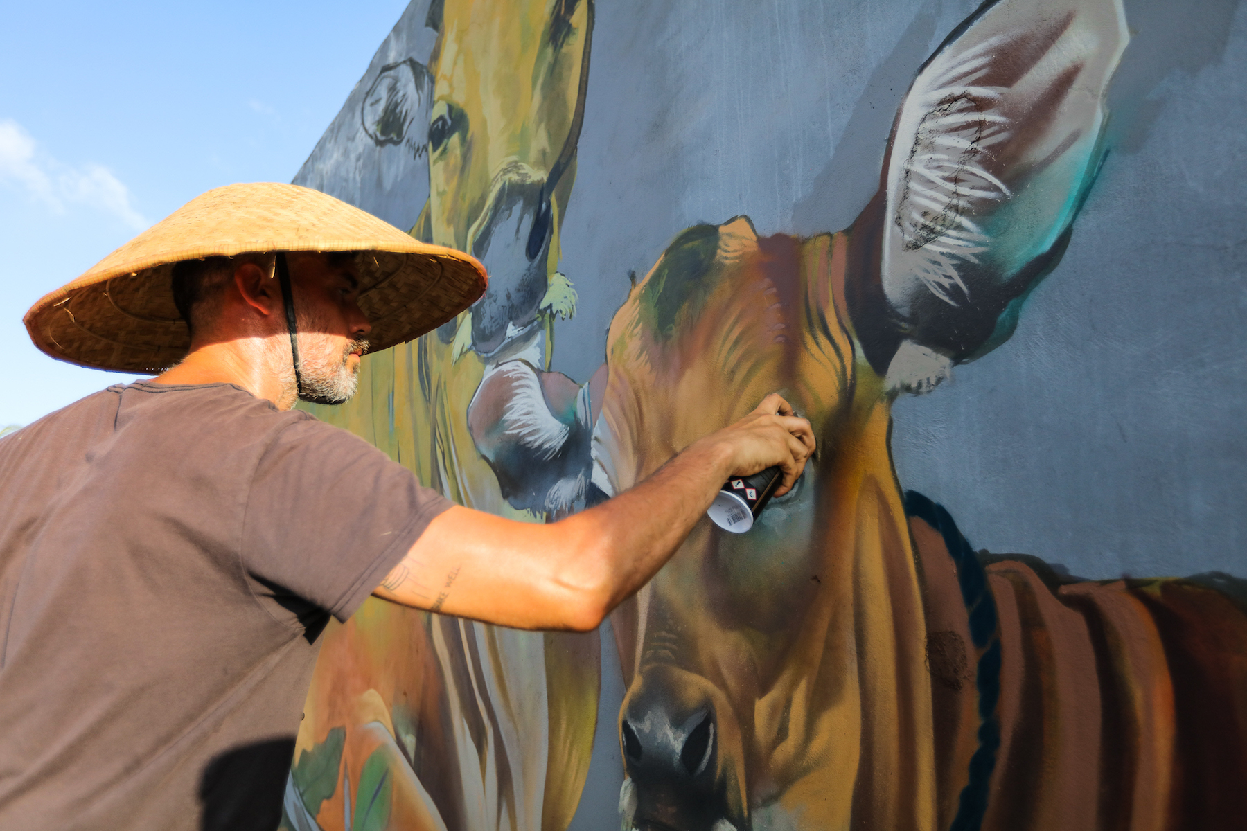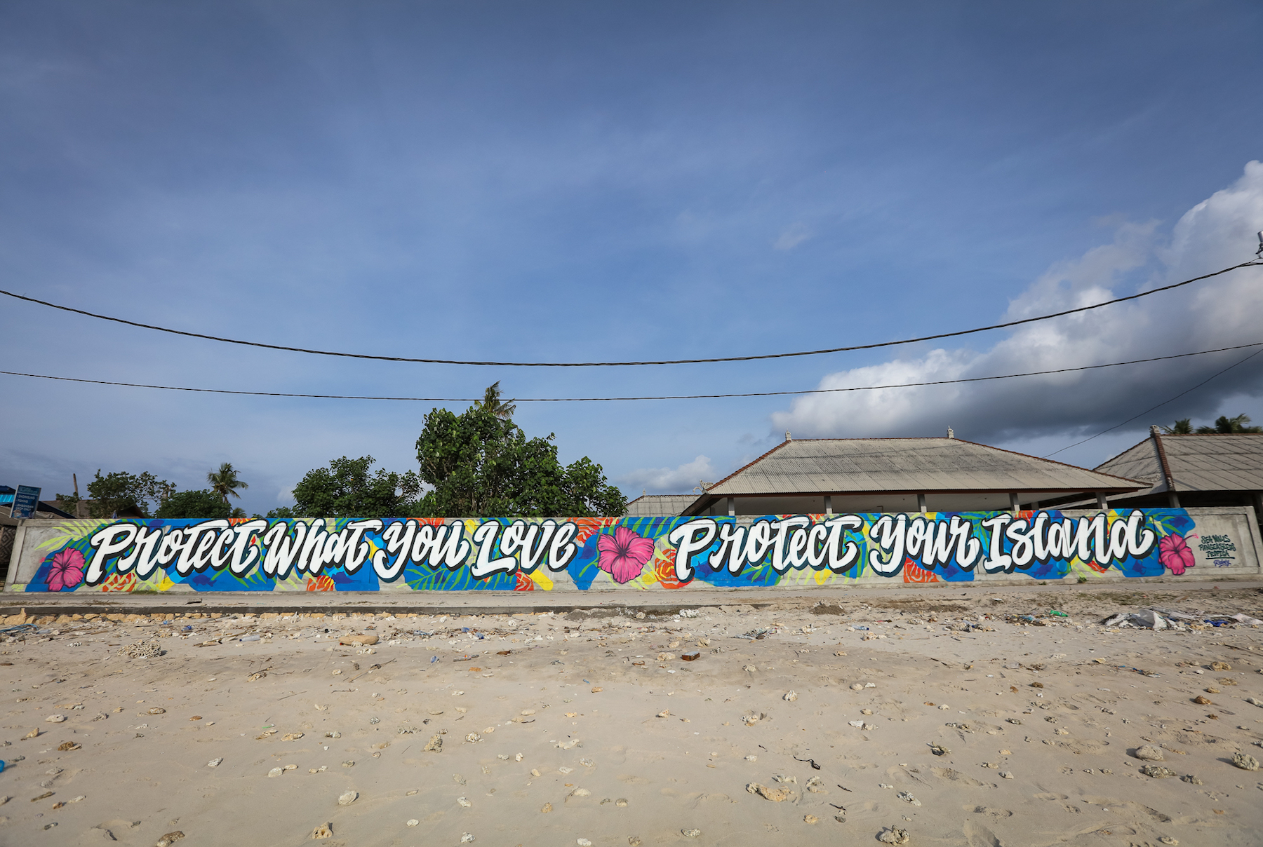 A team of 19 international and local artists and change makers were invited to the island of Nusa Penida, off the coast of Bali, Indonesia, to create a series of public artworks for  Sea Walls Bali: “Protect What You Love –Protect Your Island”.