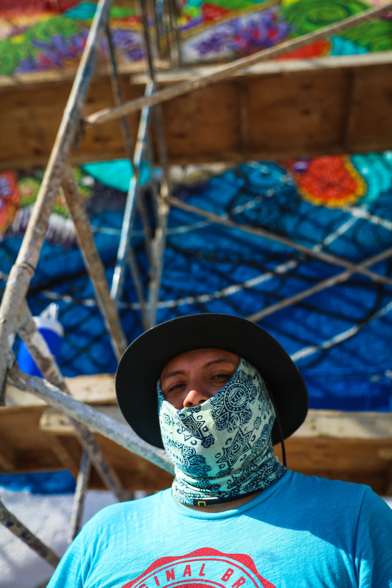 Artists invited to paint were Crea (Cancun), Curiot (Mexico City), Frase Honghikuri (Guadalajara), It’ s a Living (Mexico City), Lauren YS (USA), Mateus Bailon (Brazil), Nychos (Austria), Poket (Cancun) and Saul Torbe (Mexico City).