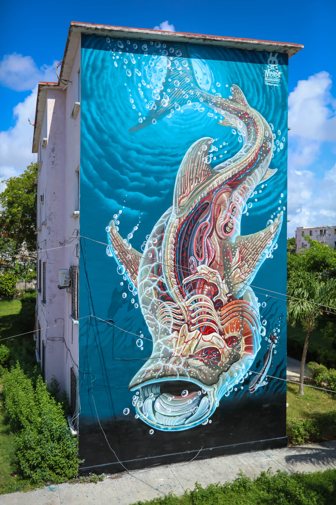 Saul Torbe mural entitled ‘Symbiosis’ expresses the connection between humans and nature, focusing on marine life, especially highlighting the Mesoamerican Reef in Cancun.
