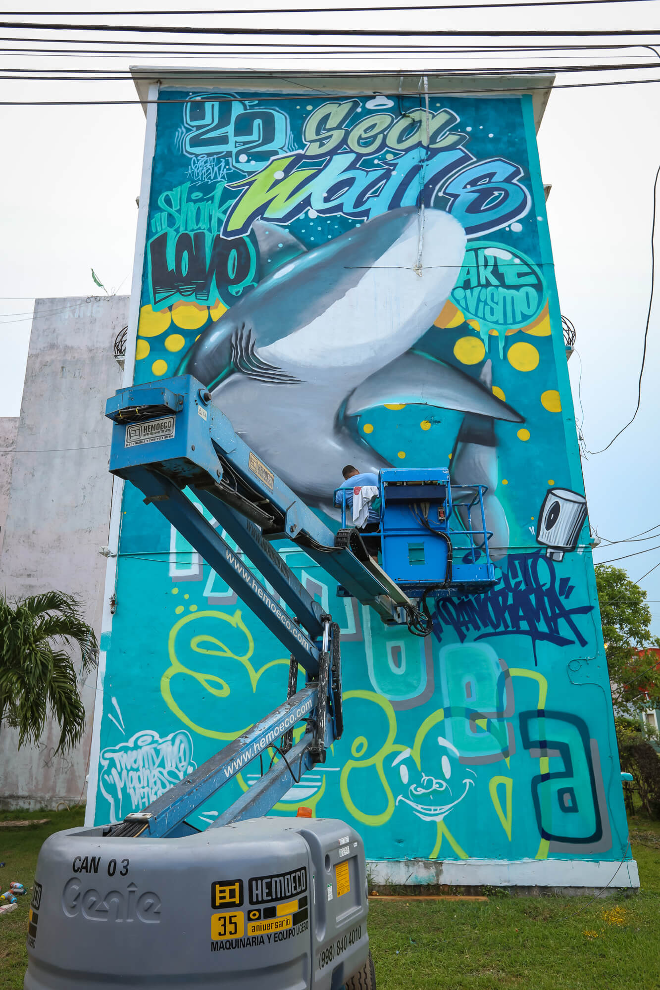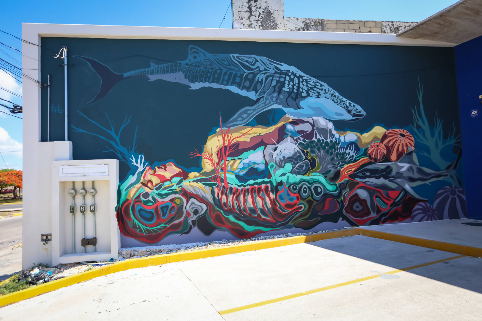 Nine renowned artists, including six from Mexico, were invited to paint nine large-scale public murals, inspired by the aquatic history of the state, in-water interactions with endangered marine life such as whale sharks, and highlighting some of the issues affecting the region as well as solutions. Some of the issues addressed included whale shark conservation, ocean acidification, plastic and pollution, overfishing, coral restoration and sustainable seafood.