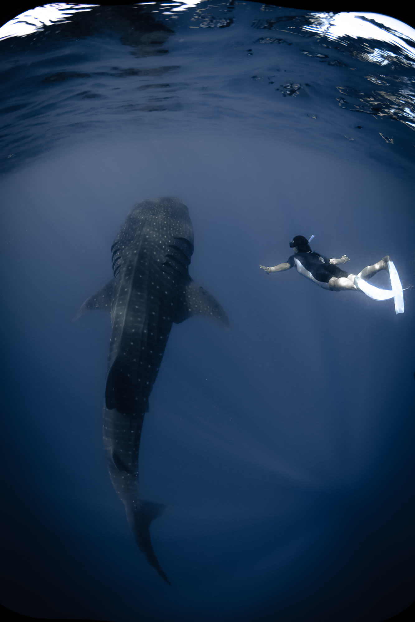 “The wall reflects the symbiosis that exists between the human and the animal; shaping the narrow invisible, but not intangible link we have with these underwater worlds. In the upper part the Whale Shark disappears gradually since is an endangered marine species.” Saul Torbe