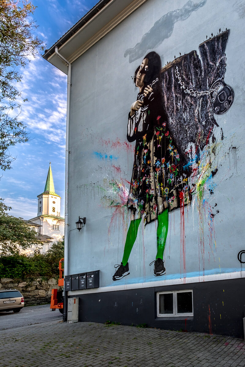 ‘Sofia and the Mountain’ by Bergen-based artist NIMI makes its appearance in Stavanger courtesy of Nuart’s latest ‘Art City’ program. The piece depicts NIMI’s daughter, Sofia, and the famous Rogaland landmark – Preikestolen rock or Pulpit Rock.