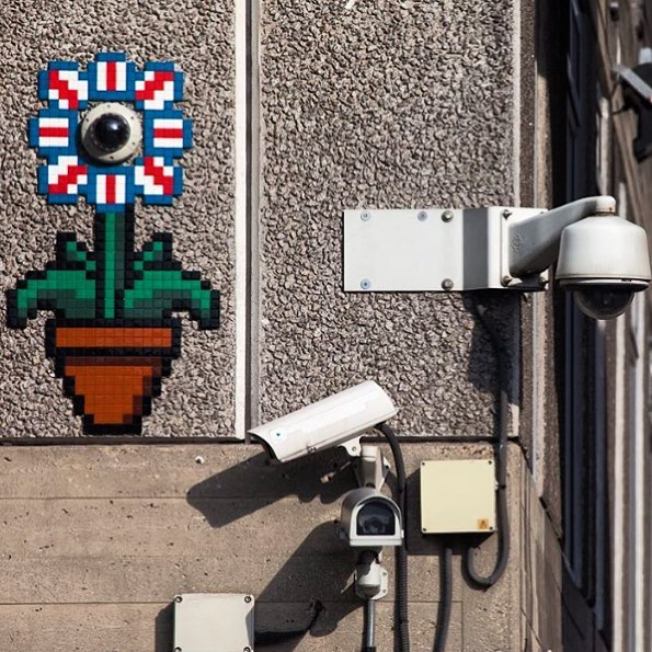 This wave also taps into our obsession with CCTV, with Space Invader playfully turning the tables — he’s watching us! One clever mosaic shows an Invader placing flowers in a pot within a CCTV camera, blending humour with a subtle commentary on surveillance culture. It’s a perfect example of how his art interacts with its urban surroundings, inviting us to look a little closer.