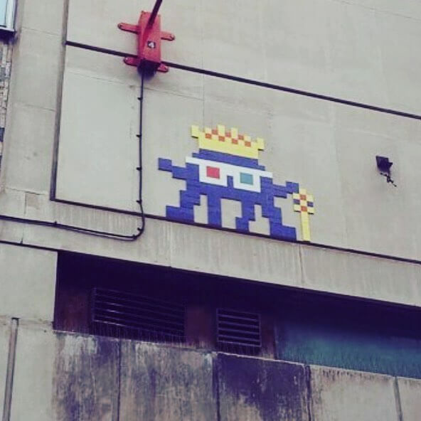 Another highlight of this wave is a mosaic paying cheeky tribute to the Royal Family. Placed on the side of the Prince Charles Cinema, this piece is titled Who is the King? — a playful nod that blends Invader’s pixelated style with a question that invites passers-by to pause and smile. It’s yet another example of how his art cleverly connects with its location.