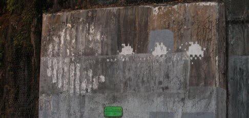 Space Invader is the pseudonym of a well-known French urban artist whose work is modelled on the crude pixellation of 1970s-1980s 8-bit video games. He took his name from the 1978 arcade game Space Invaders, and much of his work is composed of square ceramic tiles inspired by video game characters. His distinctive creations can be seen in many highly visible locations in more than 60 cities in 30 countries.