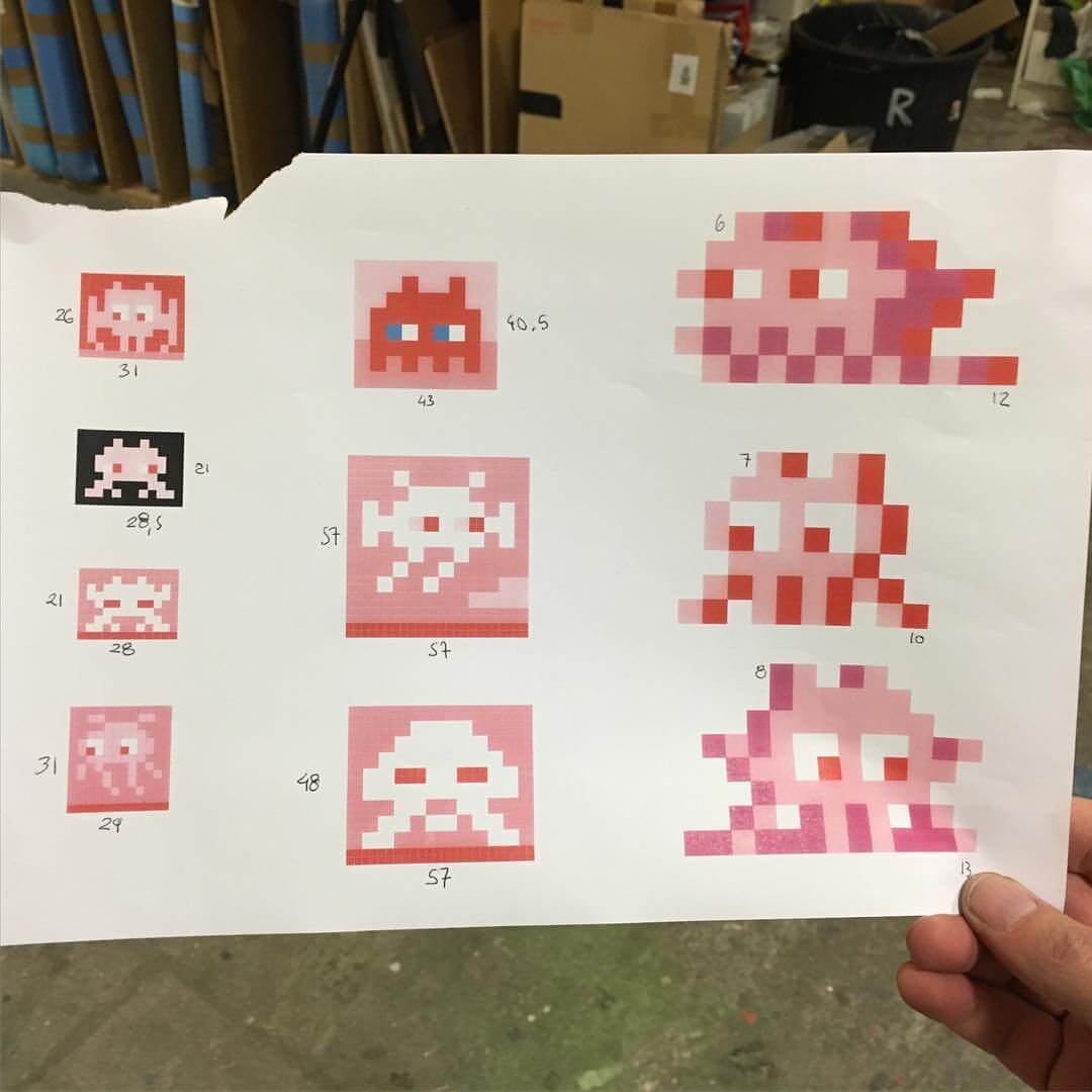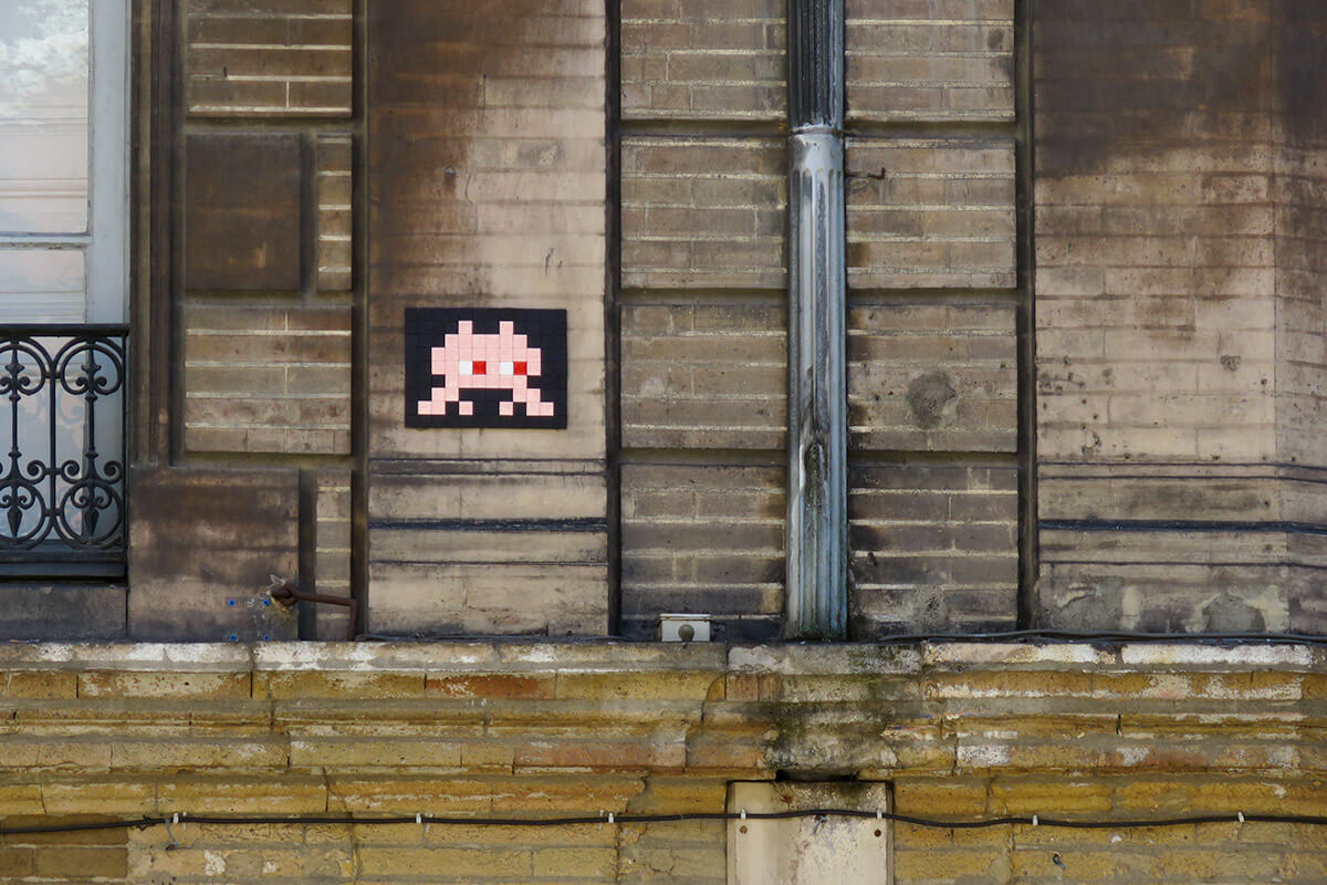 Space Invader is the pseudonym of a well-known French urban artist whose work is modelled on the crude pixellation of 1970s-1980s 8-bit video games. He took his name from the 1978 arcade game Space Invaders, and much of his work is composed of square ceramic tiles inspired by video game characters.
