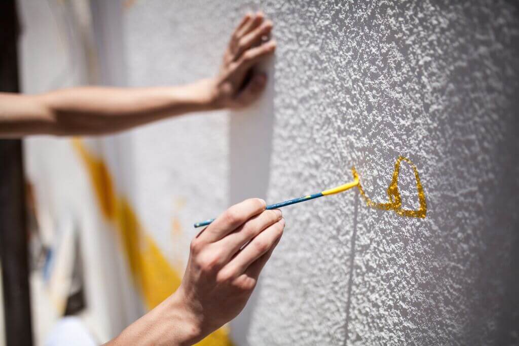Children participated in workshops developing words that represent them. They then painted their words on the wall inside the stripes of the boys T-shirt. Words included;