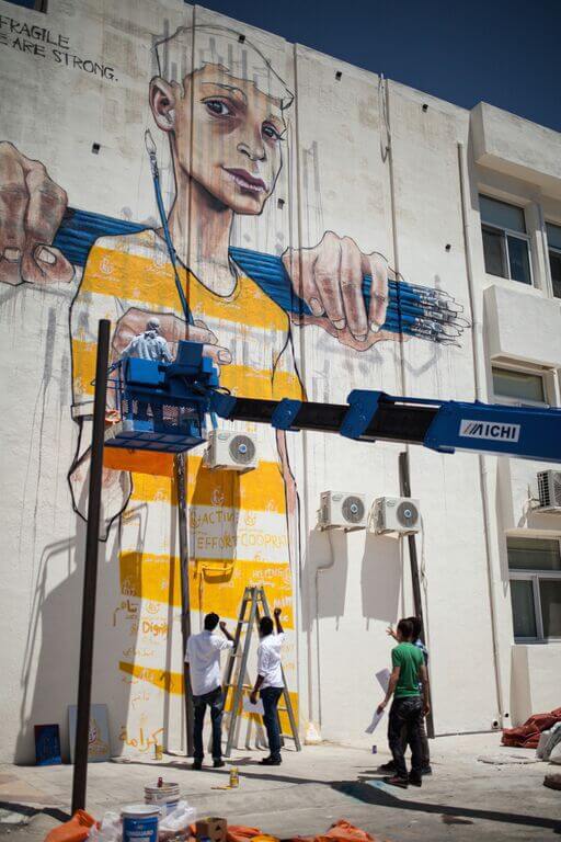 This project was made possible by the enthusiasm and support of both refugee and host communities in Jordan. It was implemented by UNHCR and aptART with the support of Montana Cans (always sending colours to the most remote destinations), Norwegian Refugee Council and IRD (International Relief and Development).