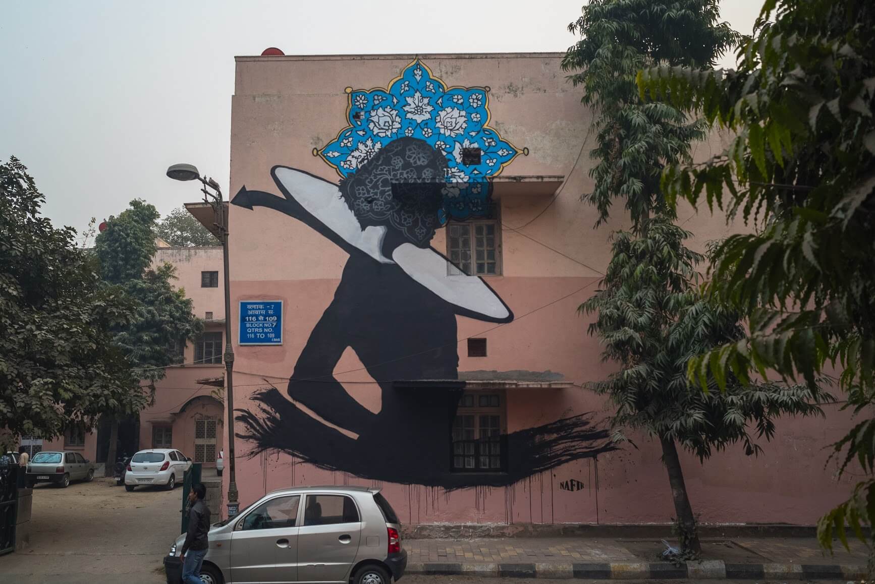 Iranian artist Nafir paints about womens rights in the eastern part of the world. Living in Tehran, he feels that Iran and India are places where women are subjugulated as culture or traditional thought can cast a shadow on women. This can be found in the lodhi Colony.