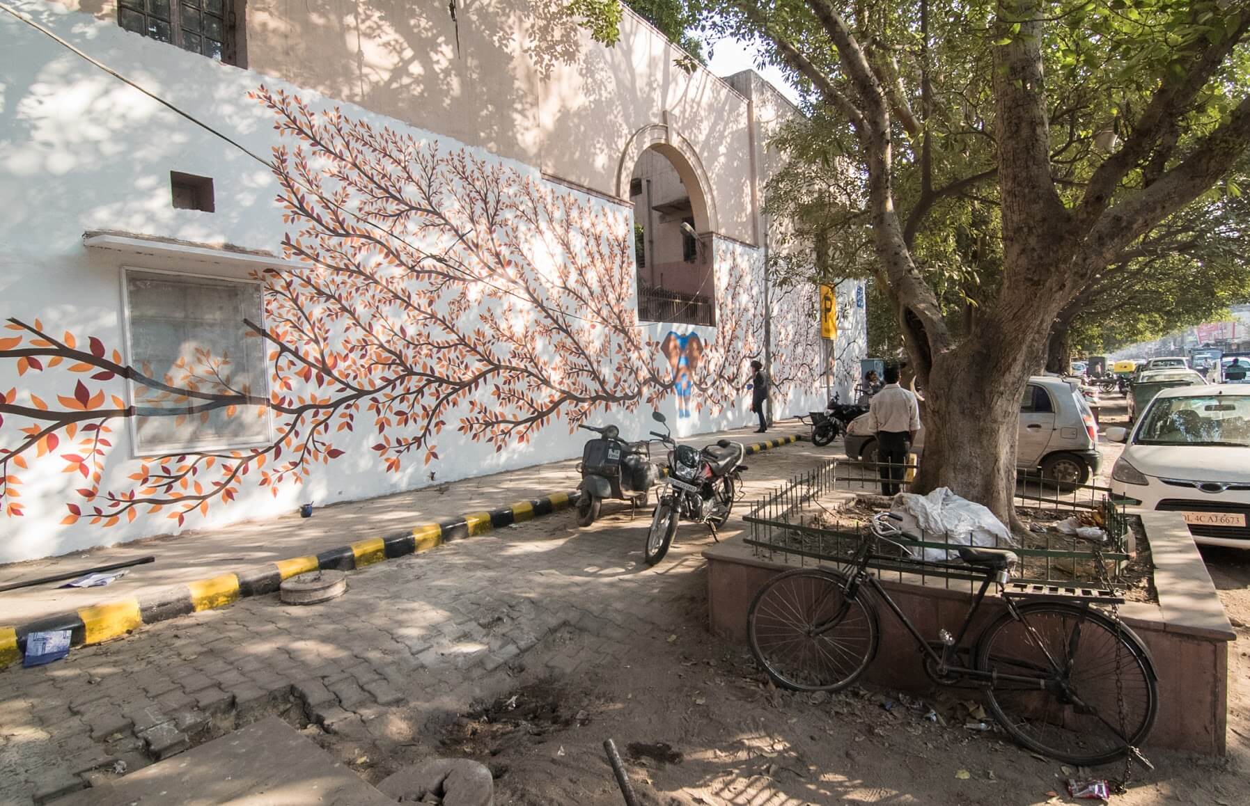 Rakesh Kumar painted his wall titled ‘Fusion Art’, this mural by is dedicated to Gond art, which is native to Central India, and can be found opposite Khanna Market (near Golden Bakery), Block 14, Lodhi Colony.