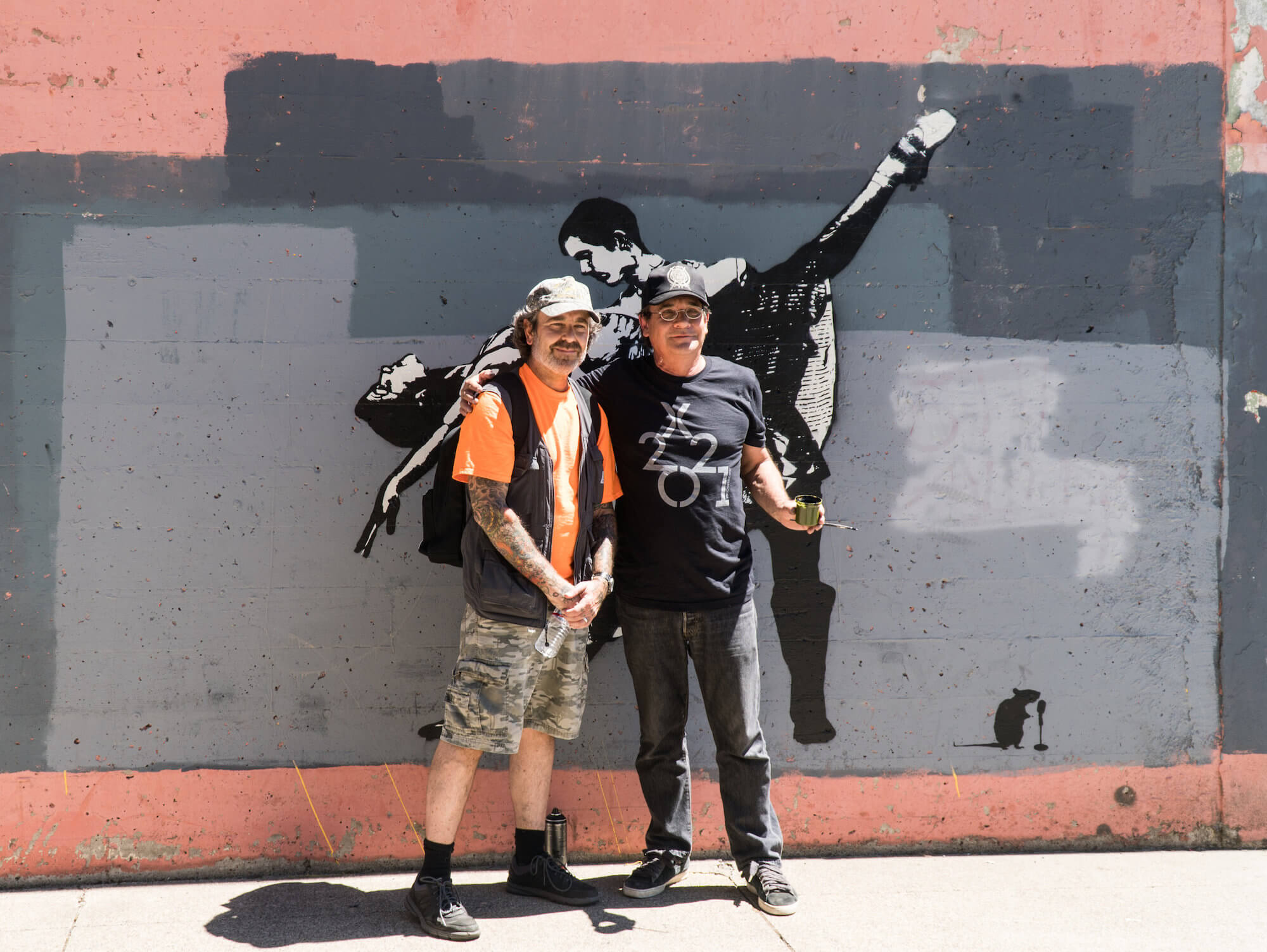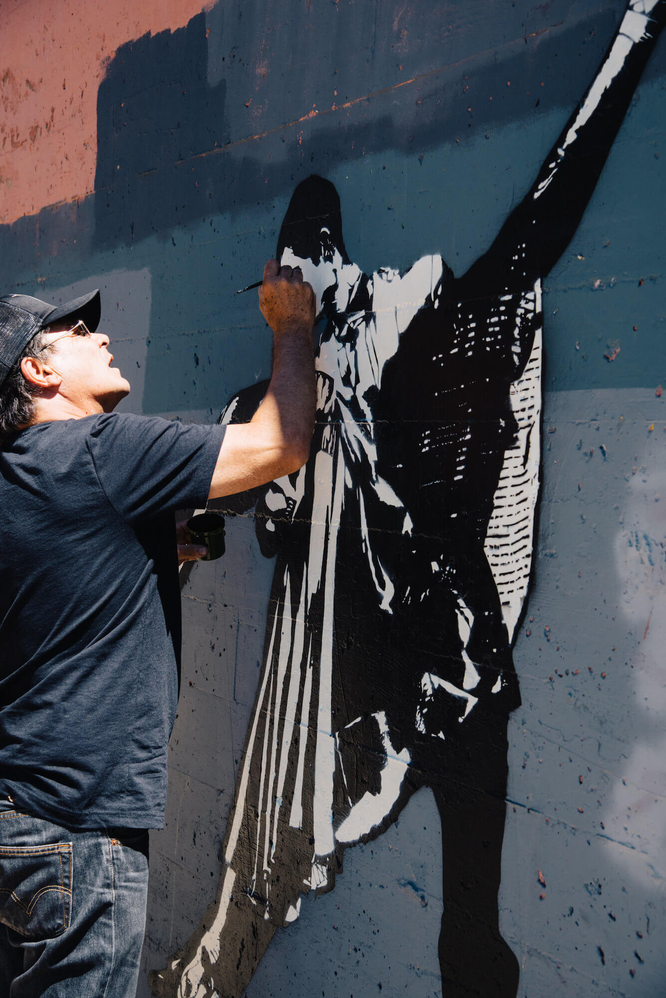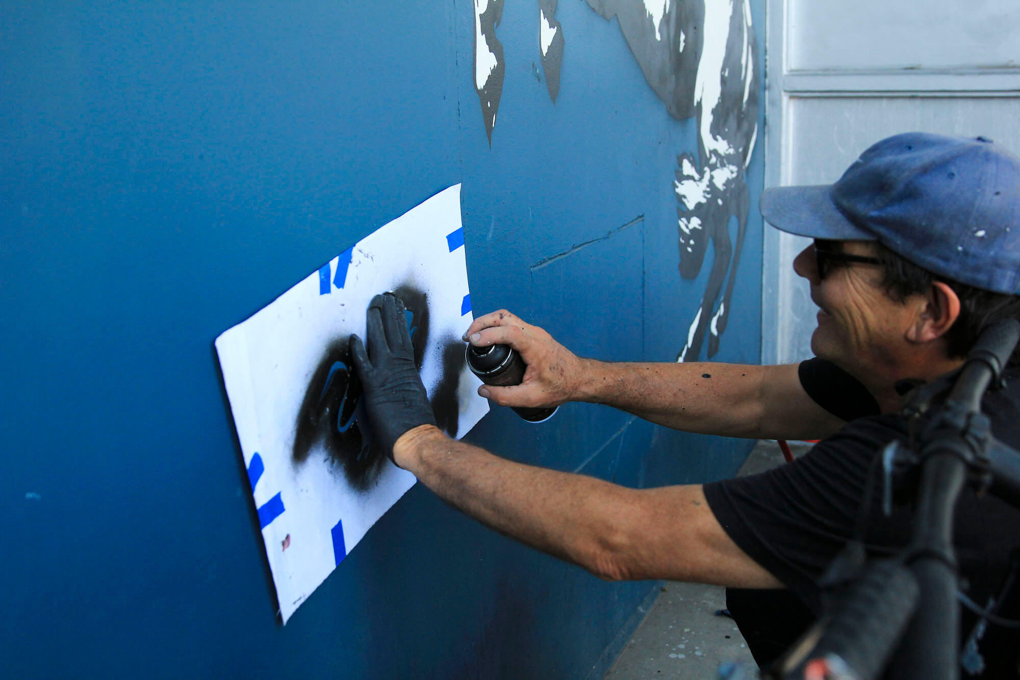 Stencil GodFather Blek Le Rat paints for 20x21EUG Mural Project, Eugene Oregon 2017