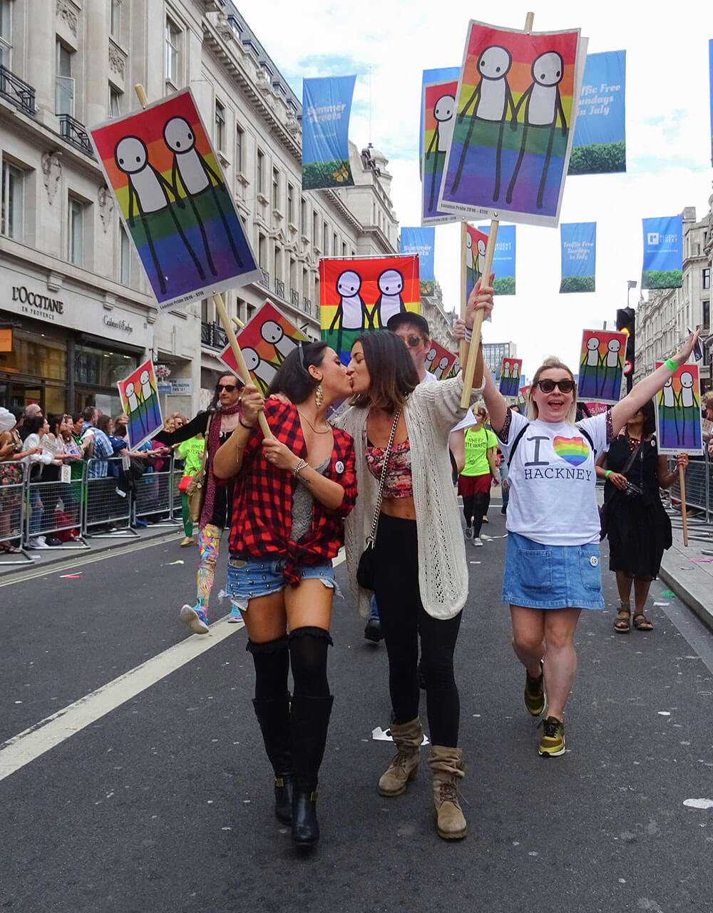 Stik and a large crowd from Hackney joined the party as thousands of people of all genders, sexualities, race and faith came together for Pride in London on Saturday 25th June. The festival celebrates London’s LGBTQ+(lesbian, gay, bisexual, trans, Queer +) community with theatre, dance, art, talks, parties, cinema, events and activities across the city.