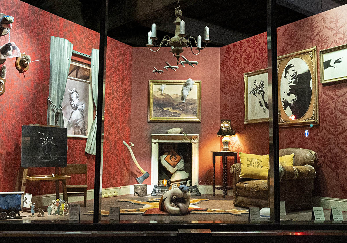 In “Crisis as Usual,” Banksy skillfully captures the frenzied and disorganised nature of our daily lives in a witty and humorous manner. The artwork conveys a fun message about the beauty that can be found amid chaos and reminds us that we can overcome challenges that come our way. This message is relevant and applicable in many scenarios, such as a bustling workplace, a family home with a busy schedule, a challenging project, or the current state of the world… It is “Crisis as Usual”.