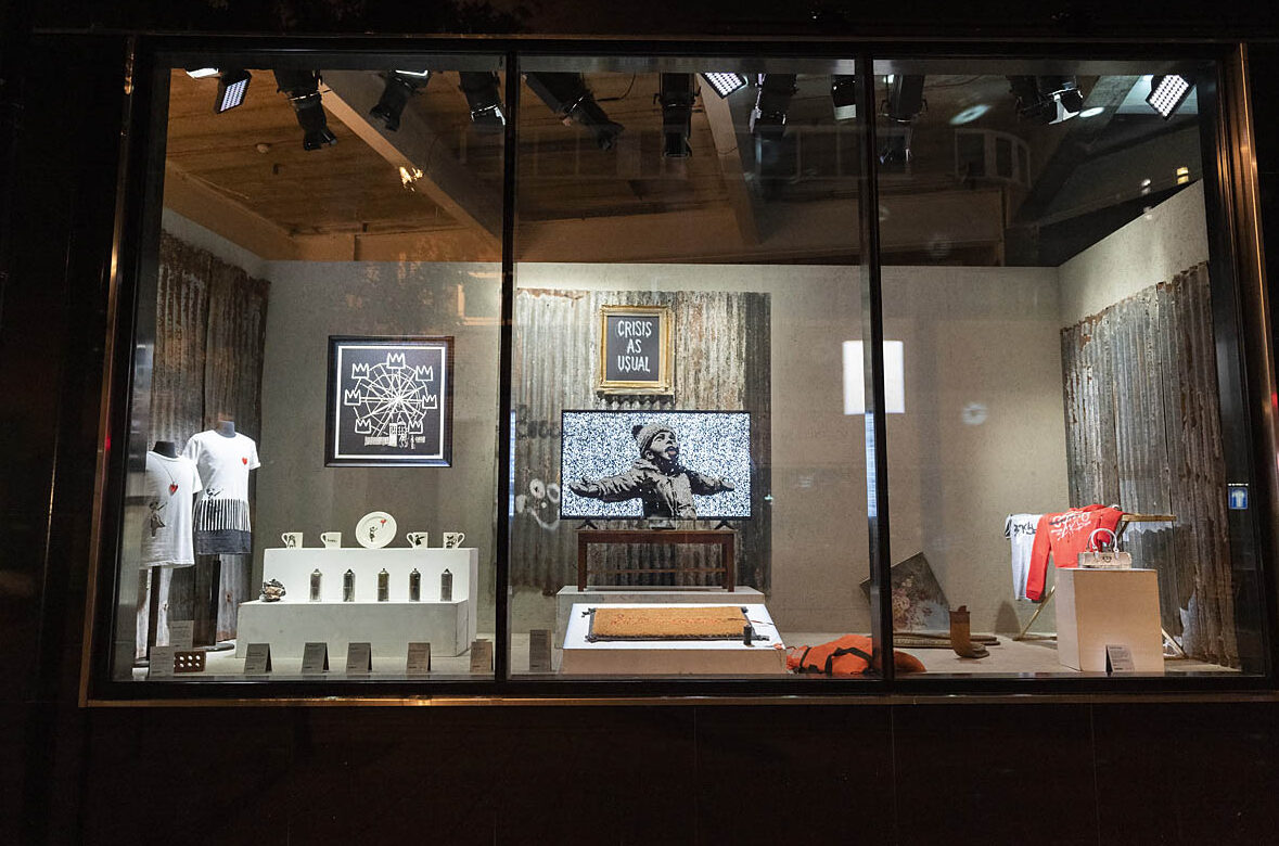 The store was created in response to legal action against Banksy by a greeting card company attempting to take legal custody of the artist’s name.