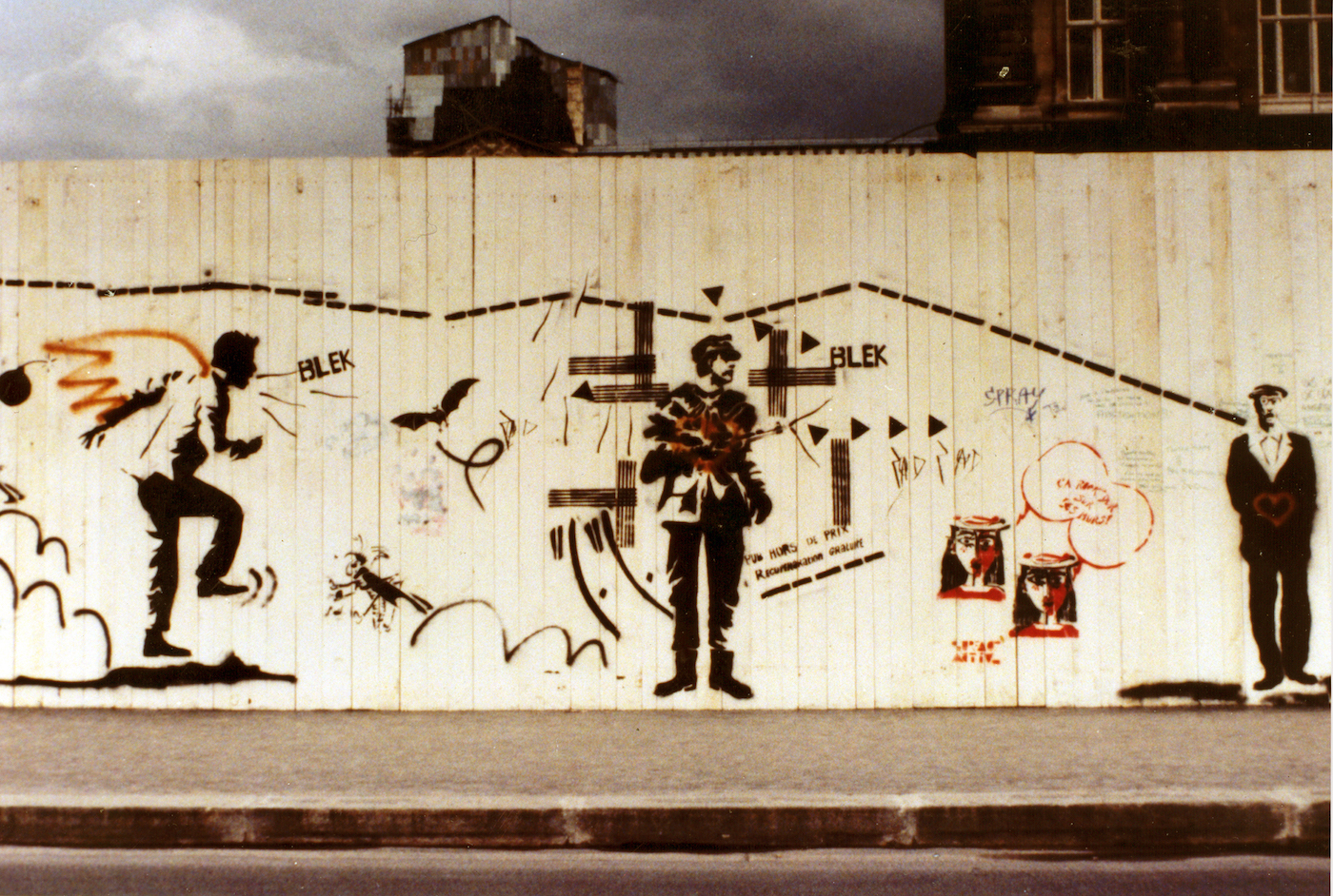 “We chose to use a pseudonym because we decided we wanted to remain anonymous as a way to challenge the locals….Who were the authors of these little rats, these bananas, the little running men and all the little stencils that we made during the day and sprayed come night throughout the fourteenth and the eighteenth districts of Paris?” Blek le Rat