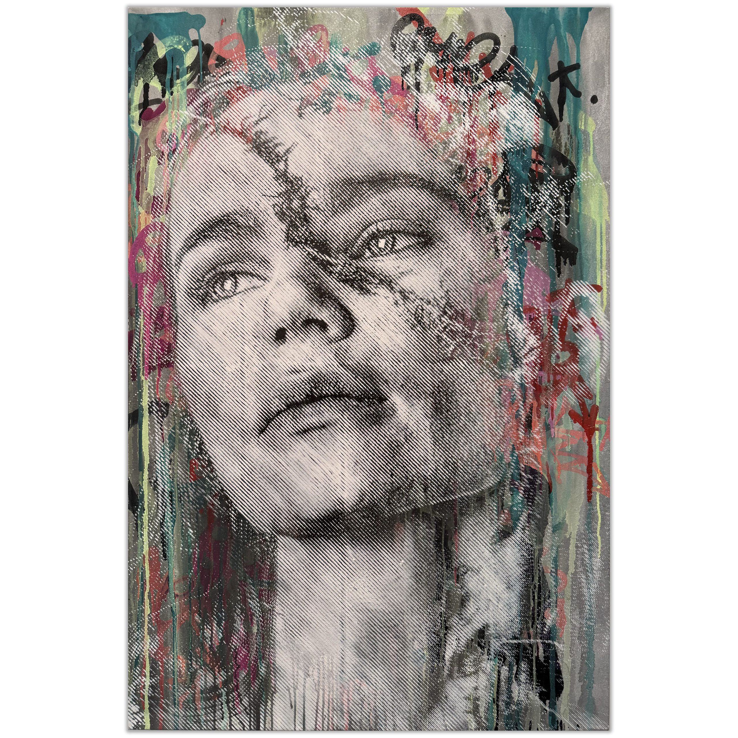 First painted as a mural in the heart of Paris, Embers was born on a wall touched by fire, a place marked by the past, yet ready for new life. It was there that Snik placed their portrait: a quiet figure, eyes in soft gaze, suspended between stillness and change.