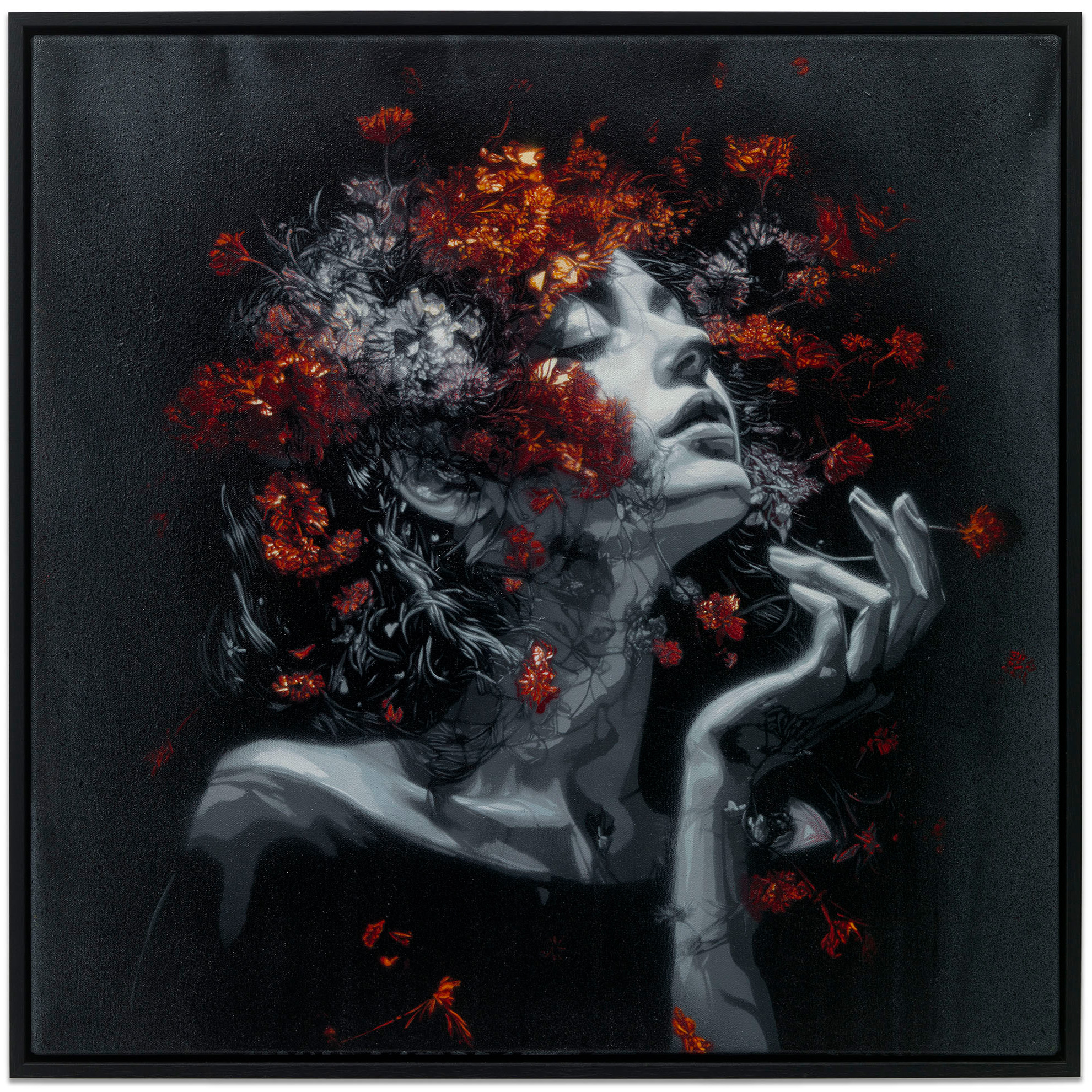 as something elemental, encasing her in life, letting nature slowly claim the space. Rendered in a rare orange palette,