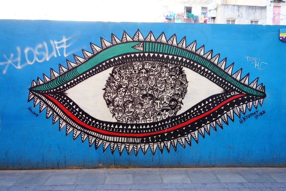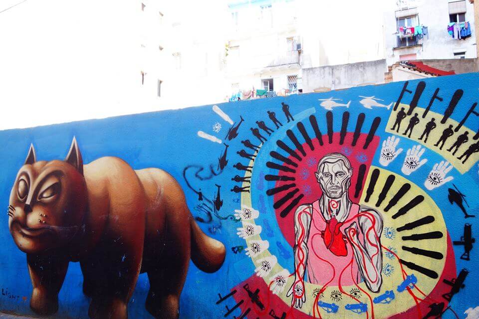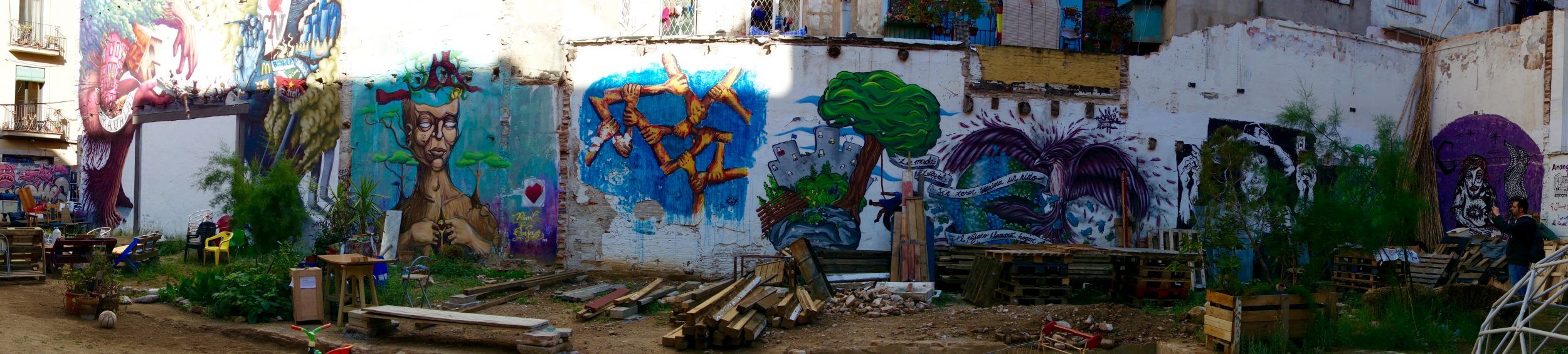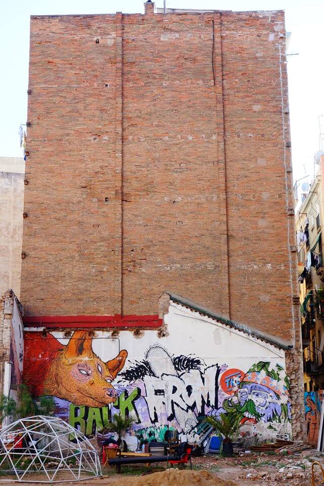 After the well publicised death of Juan Andrés Benítez in 2013, the public cried out for more safe spaces within the city. Consequently, only open a few months ago, a large open space has been opened for the locals, with community gardens and an open air cinema. The walls surrounding the space are nothing short of a collaboration masterpiece by graffiti artists worldwide. Barcelona’s ‘fun, happy and childlike’ graffiti style has illuminated this quarter of the city and filled it with colour, bold statements, identity and safety.