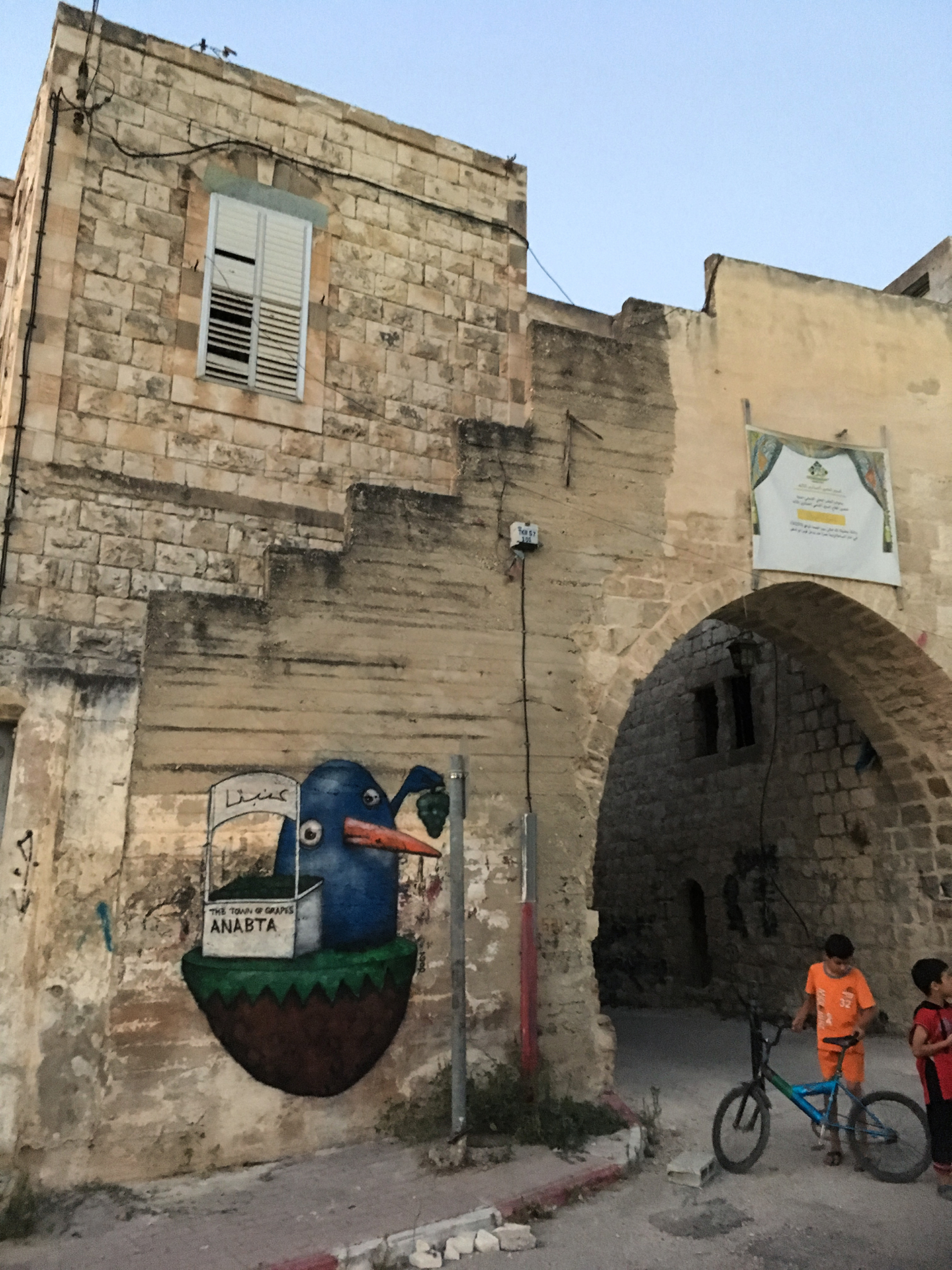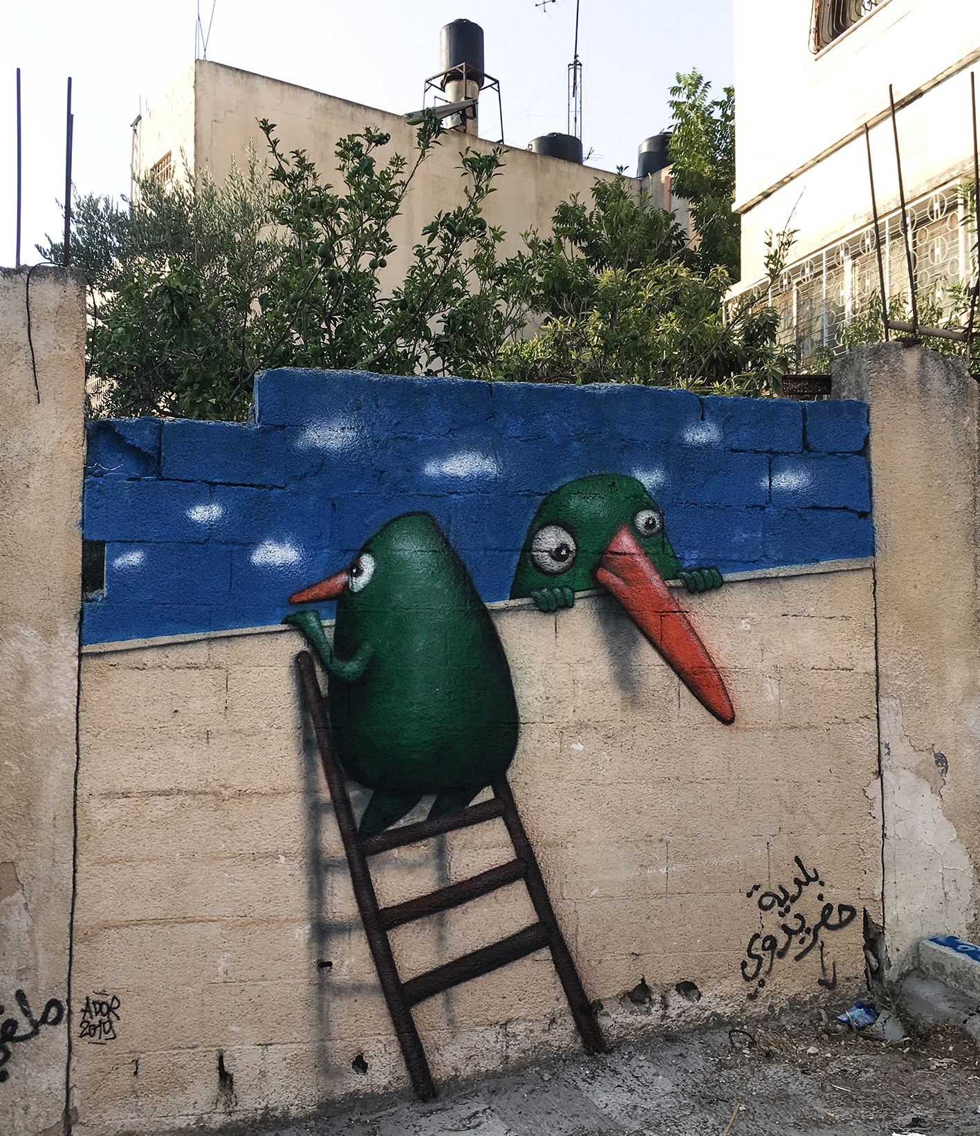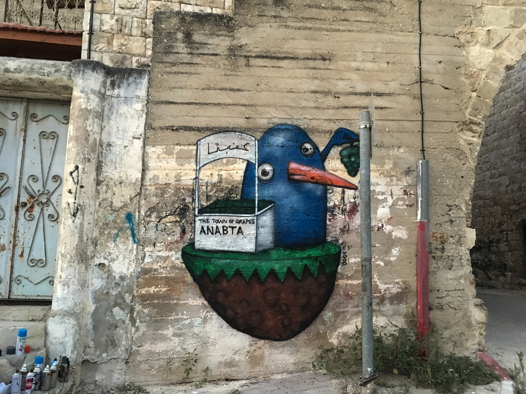 Ador was invited to paint in the twinned city of Anabta, one of the oldest municipalities located just 9km east of Tulkarem. Anabta hosts a modern, bustling town centre with quirky shops and restaurants, and a quiet historic quarter.