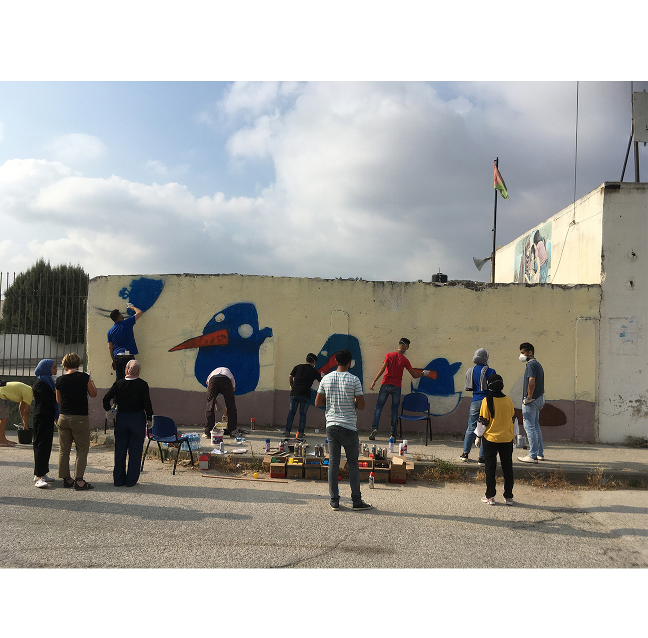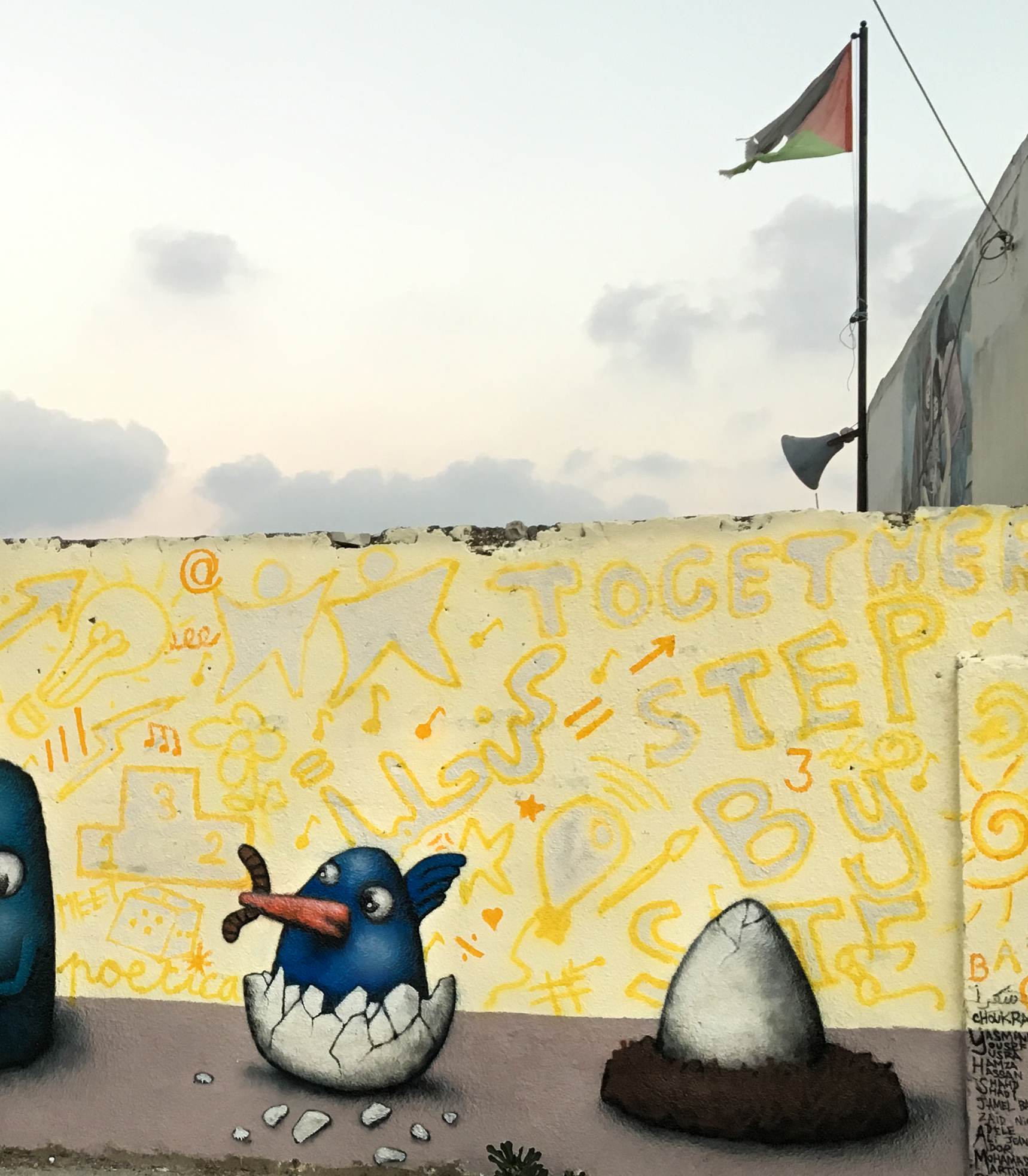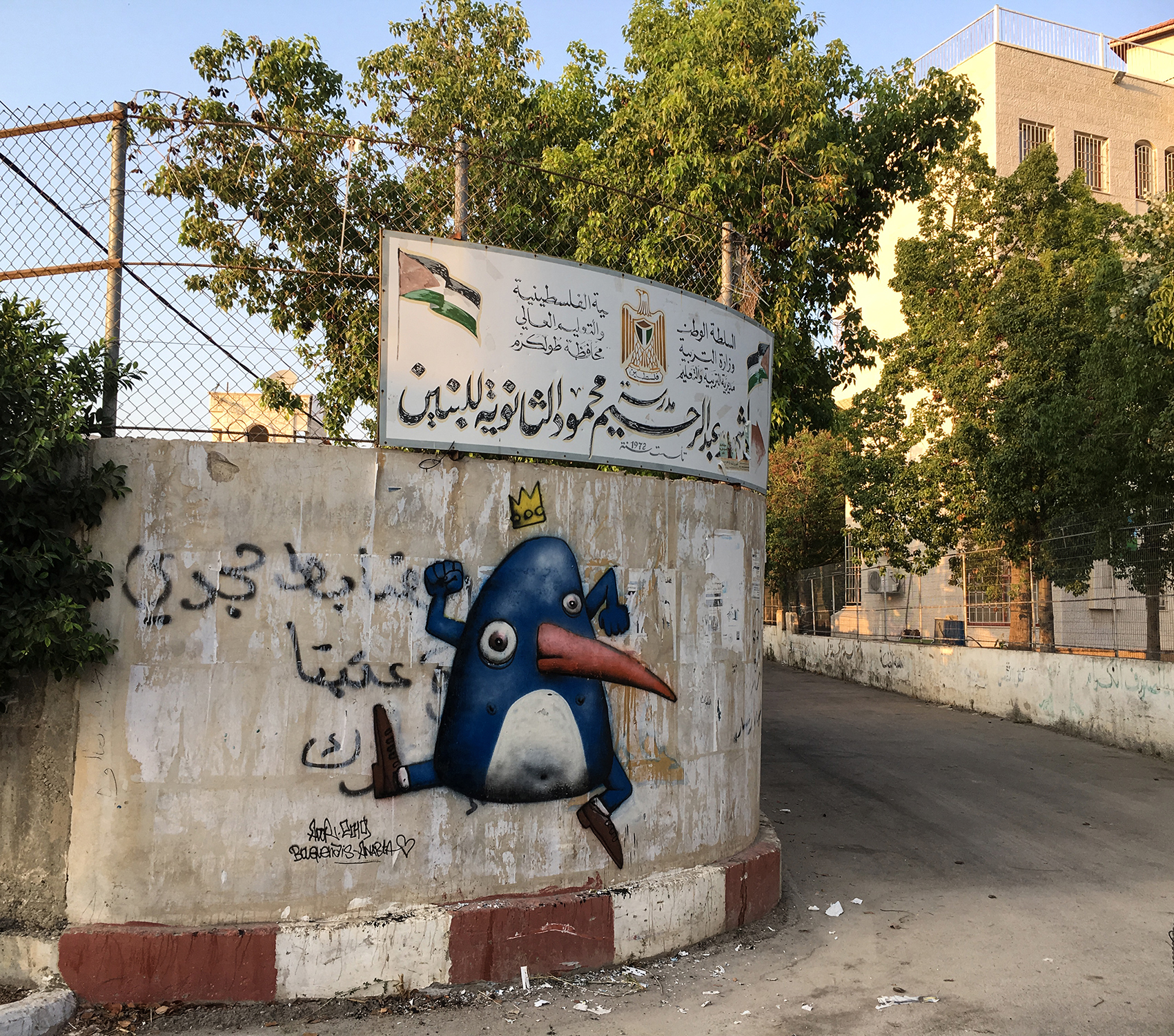 Ador was invited to paint in the twinned city of Anabta, one of the oldest municipalities located just 9km east of Tulkarem. Anabta hosts a modern, bustling town centre with quirky shops and restaurants, and a quiet historic quarter.