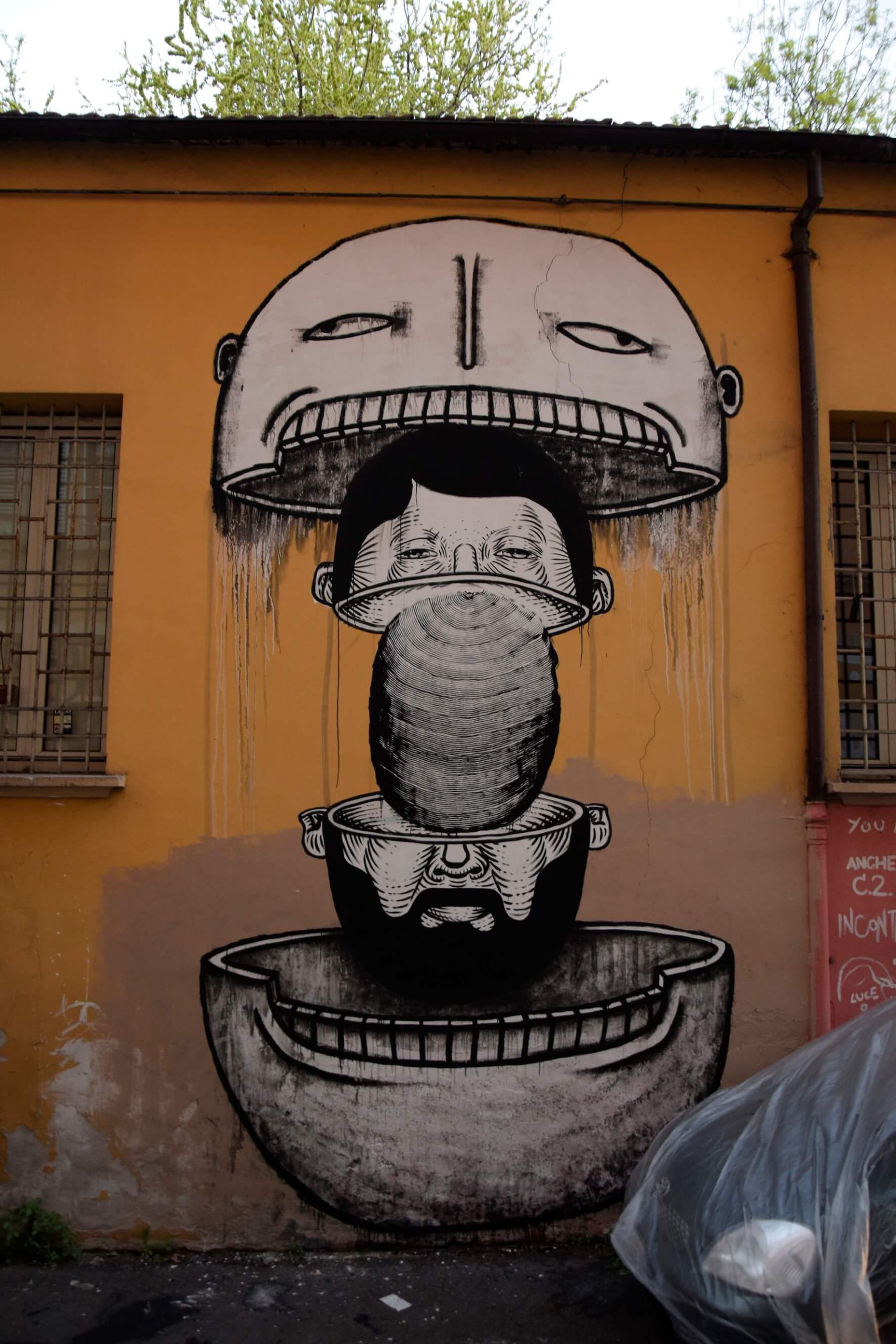 The last wall in Italy see’s Bisser painting inside the Làbas squat and is called ‘Italian Demon’ painted with spray paint and normal paint.