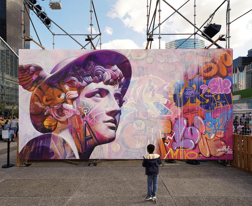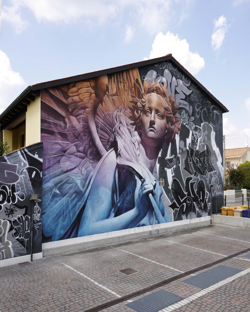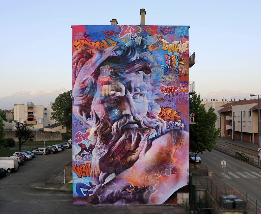 The Valencia-based street art duo PichiAvo has achieved international recognition for their distinctive fusion of classical and contemporary urban art. Through a masterful interplay of mythological sculpture and modern graffiti techniques, they create vibrant, large-scale compositions that bridge the gap between antiquity and the present. Their work not only celebrates the grandeur of classical art but also reimagines it within the dynamic language of today’s urban culture.