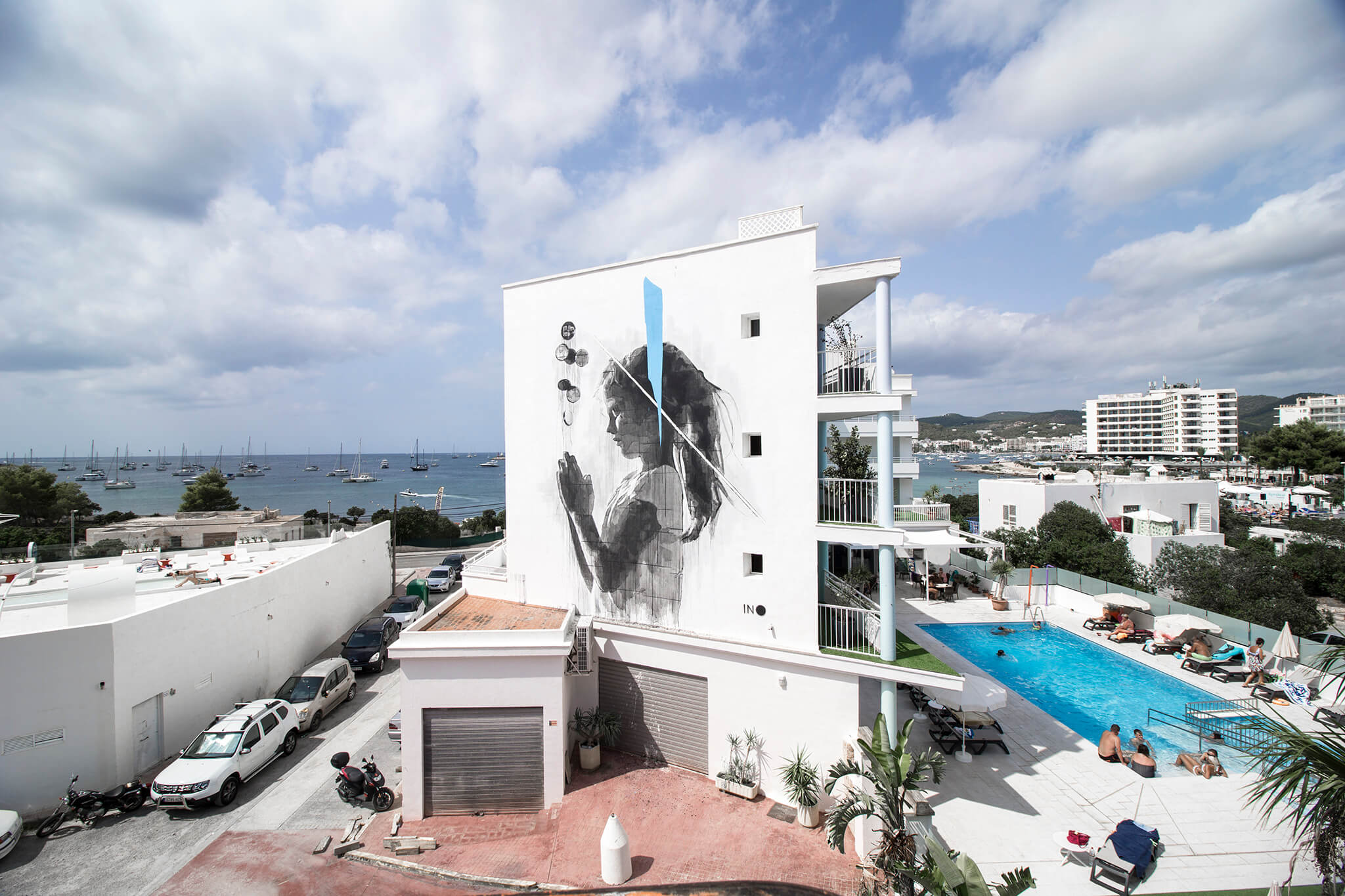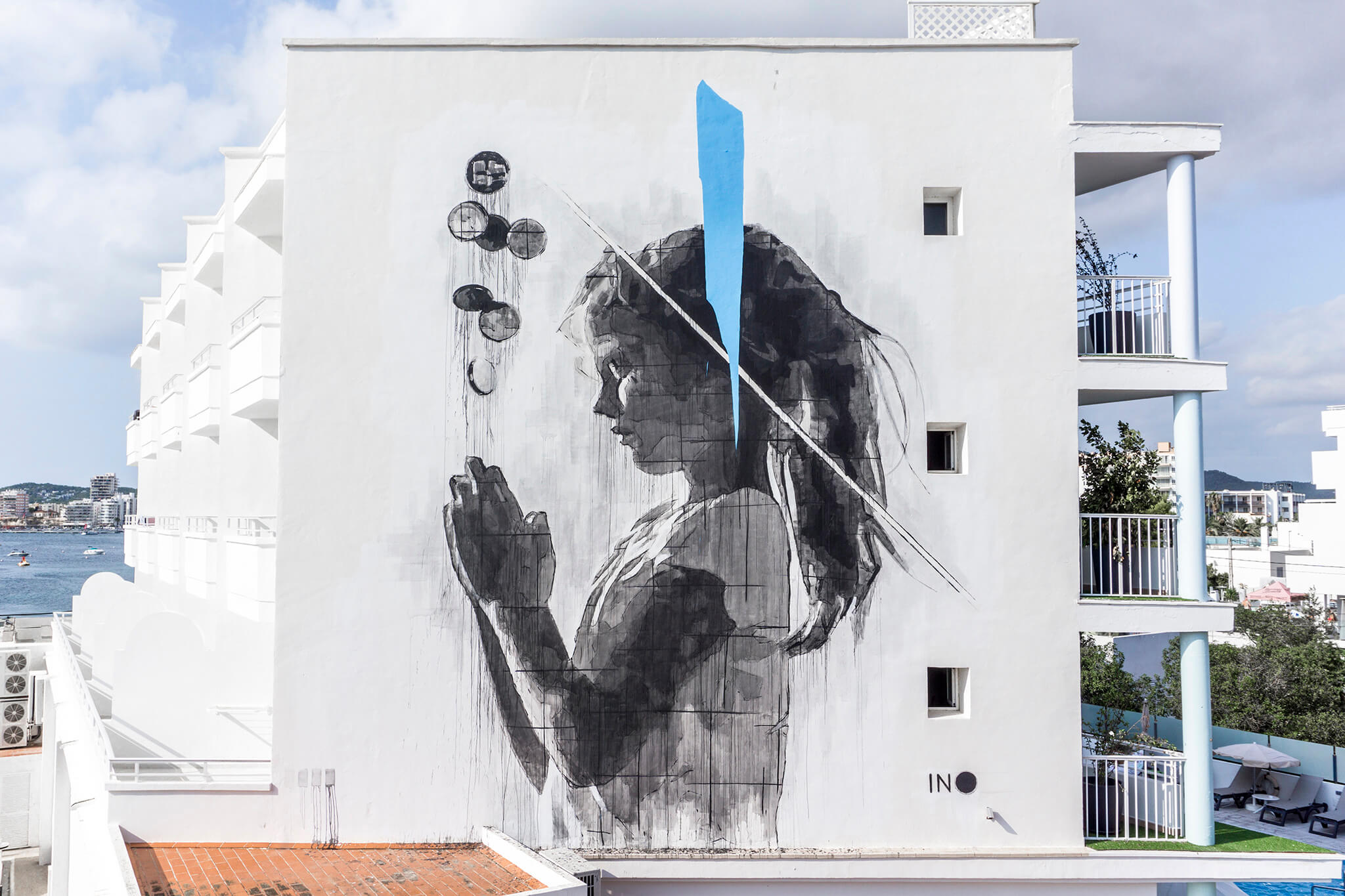For his forth mural on the Isla Blanca, the Greek artist painted his mural “Hopeless” on the La Kiki building on Sant Josep’s bay in Ibiza.