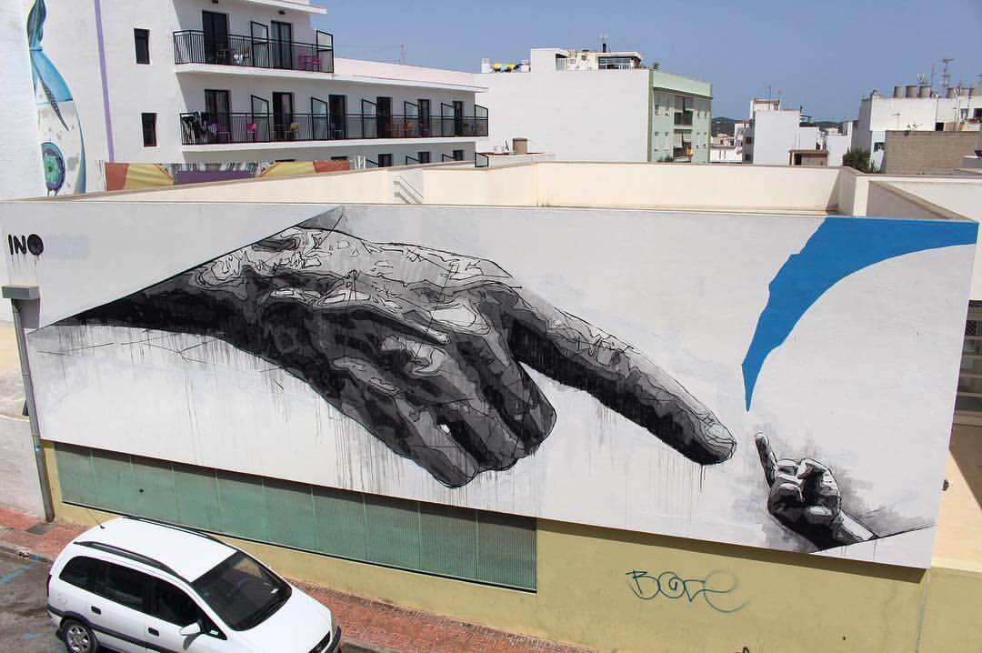 Street Artist INO kicks off BLOOP Street Art Festival, Ibiza, 2016