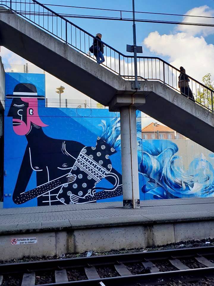 Another wall that saw Joachim up the ladder was at a graffiti jam in the station of Halle (near Brussels- Belgium) for for ‘Zodiac-Jam’.  Joachim was paired up with Adrien Roubens, an artist from Brussels, and painted Aquarius! Joachim’s star sign.