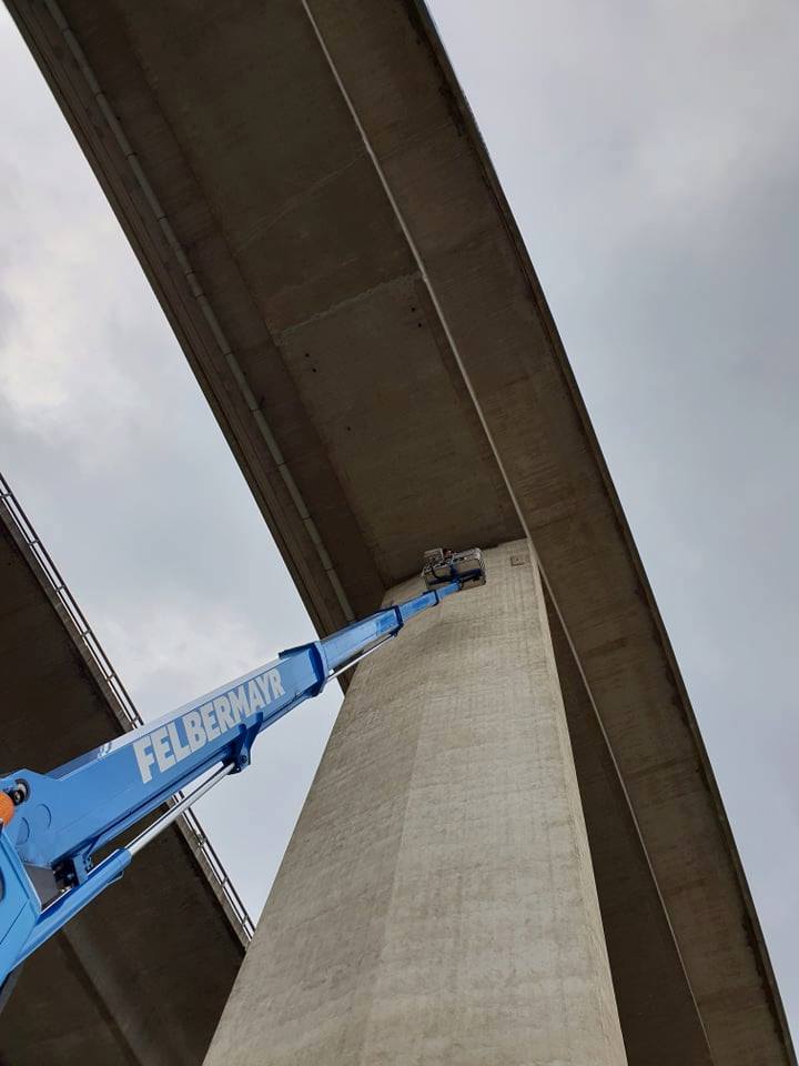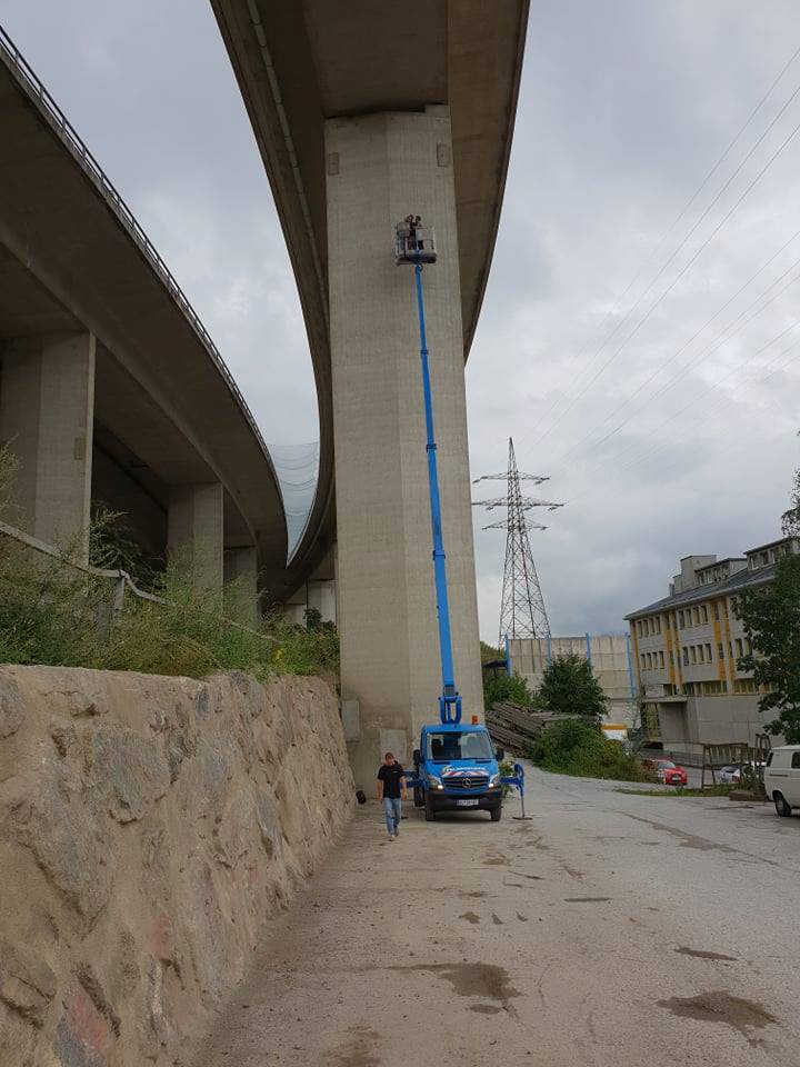 “We were working on a wall next to the railway lines and it was impossible to work with a lift, and a scaffold was also not ideal because of the 1500 high-voltage cables next to my head! It was too dangerous that the electricity may skip onto the scaffold.” Joachim
