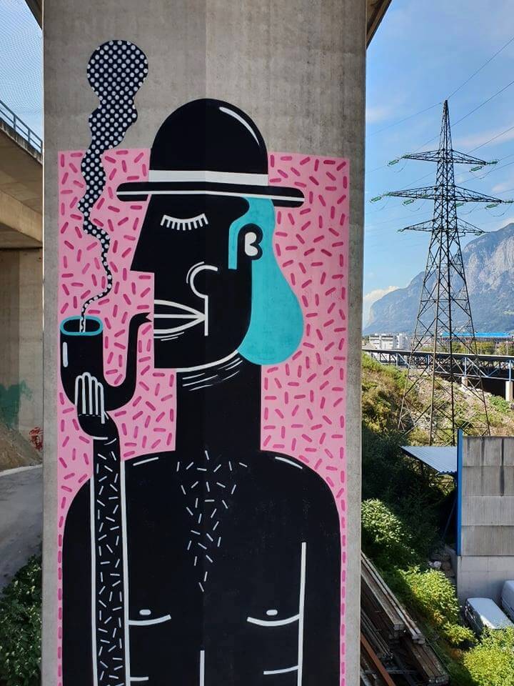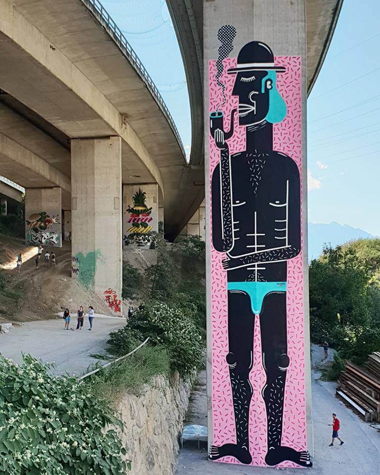 ‘Under the Bridge’, is the first ‘street-art project’ in Insbruck, Austria, and organised by his good friend HNRX! The project saw artists, such as Bebar France), Koctel (Spain) and Guido Zimmerman (Germany), paint the pillars that support the bridge.