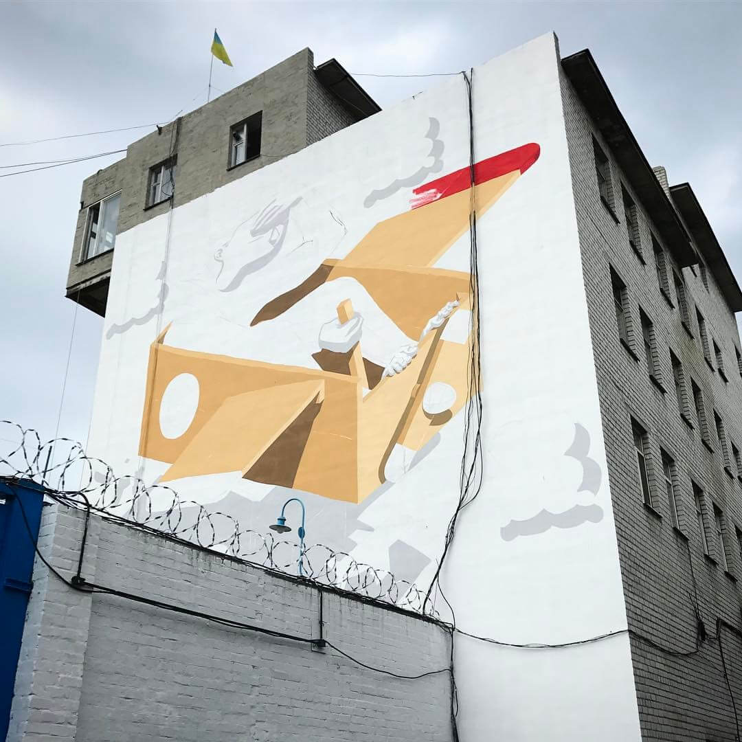 Millo’s latest wall “Power of Imagination ” can be found in the juvenile penitentiary in Kremenchuk, Ukraine. The prison hosts around forty prisoners from the age of fourteen to twenty two years old who have committed crimes. The penitentiary is a special place for the inmates, who can spend up to eight years there. The prison focuses on education and everyday life, where there is a strong belief and desire to help these teenagers in their growth and adaptation to the adult life.
