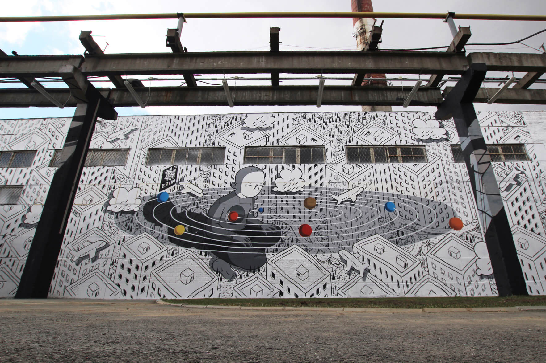 Millo’s latest wall “Rivoluzione/Revolution” is in St Petersburg, Russia’s second-largest city after Moscow. Millo painted this mural for the “Brighter Days Are Coming” exhibition, curated by Street Art Museum and Urban Nation.