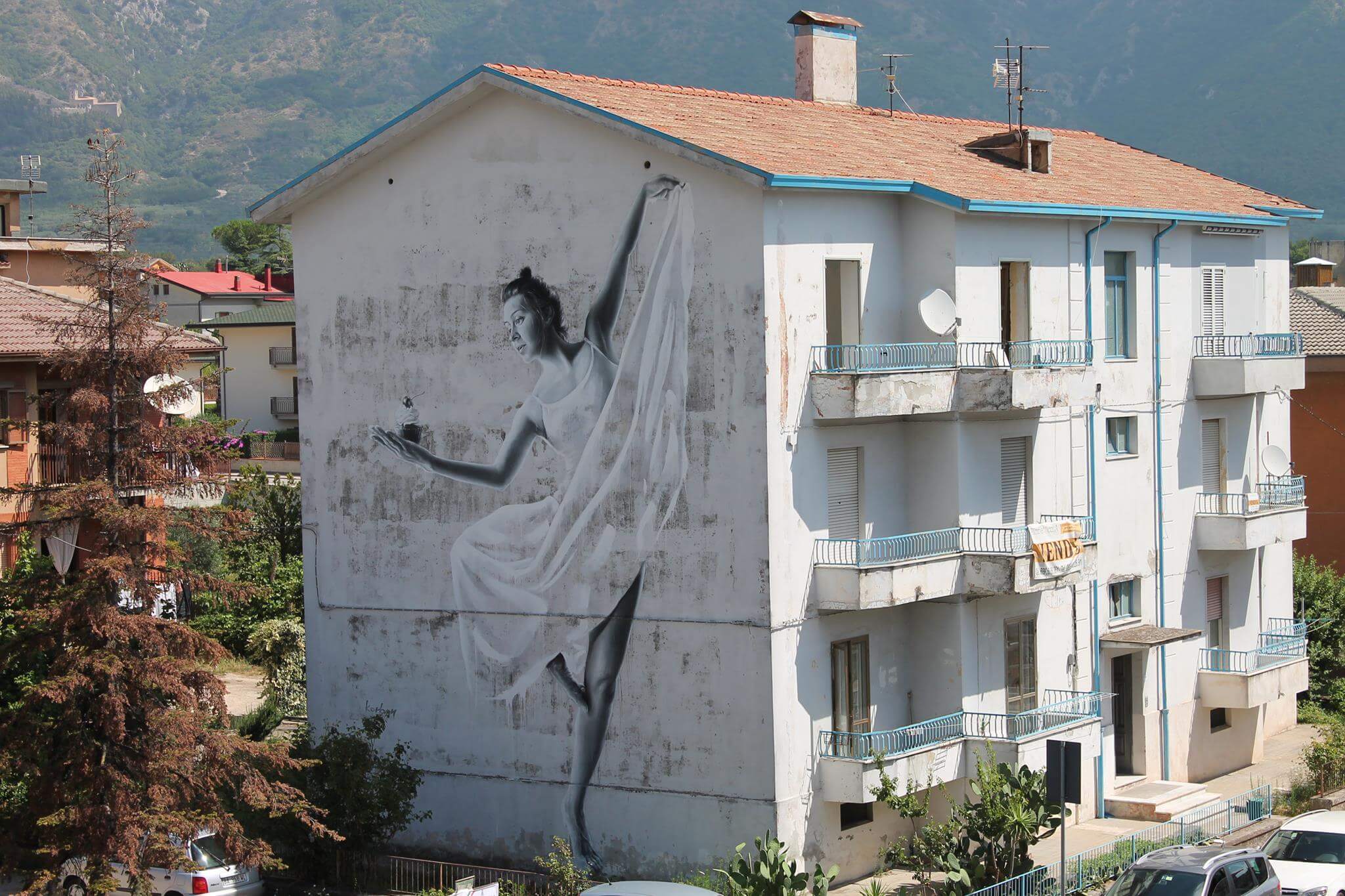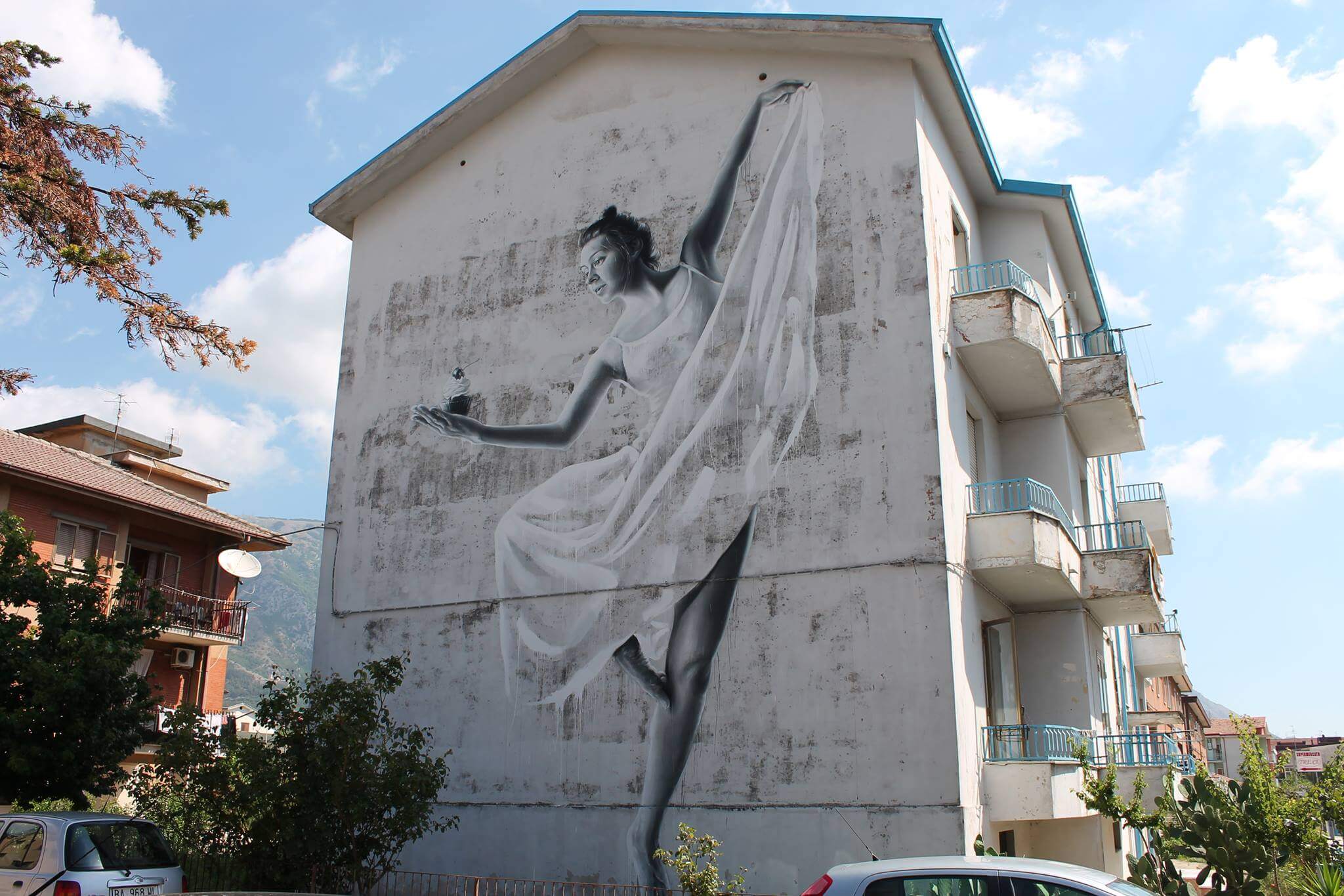 Ukrainian artist Sasha Korban/Саша Корбан has just finished his mural in the picturesque town of Airola near Naples for In Wall We Trust International Street Art Festival 2017.