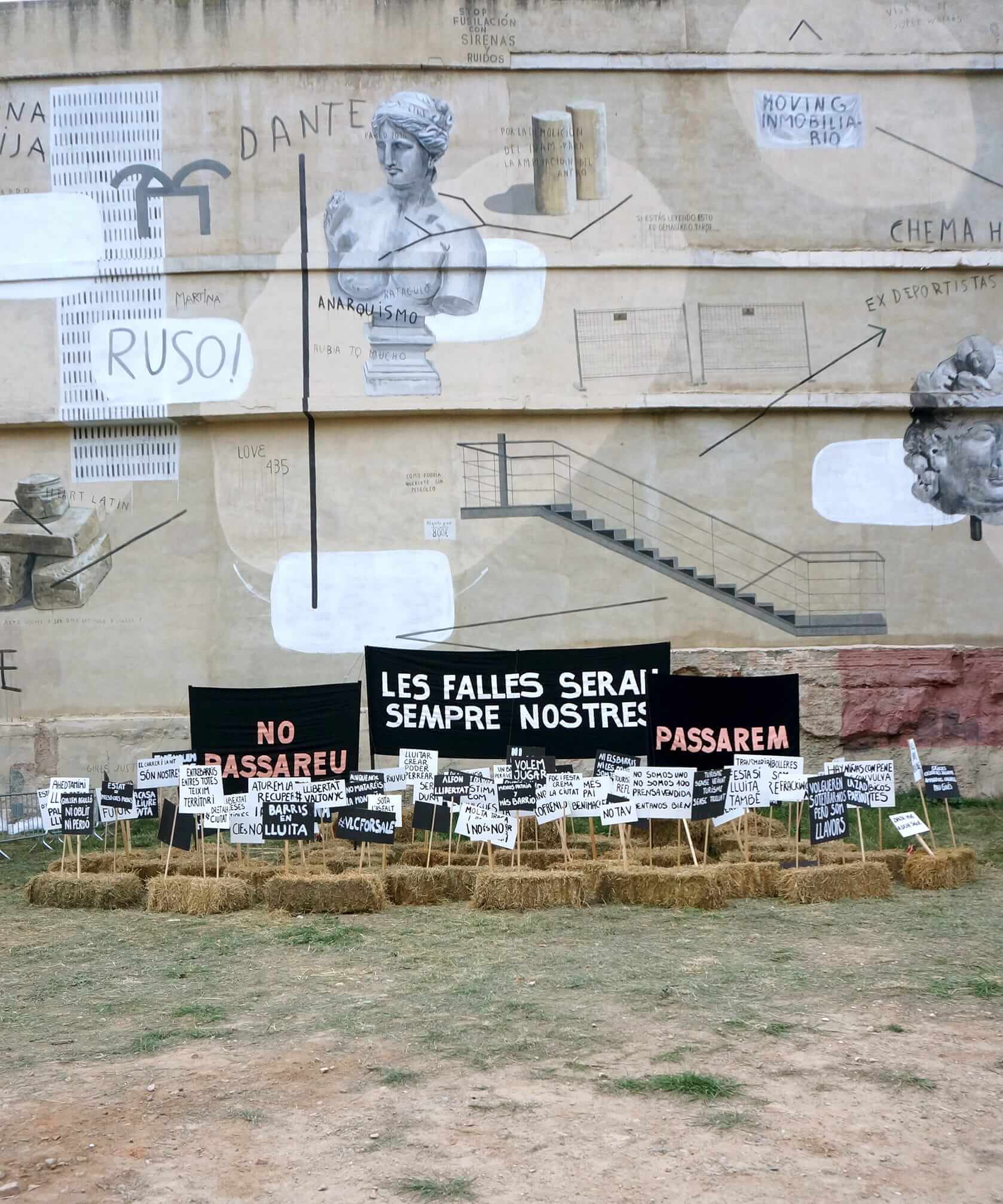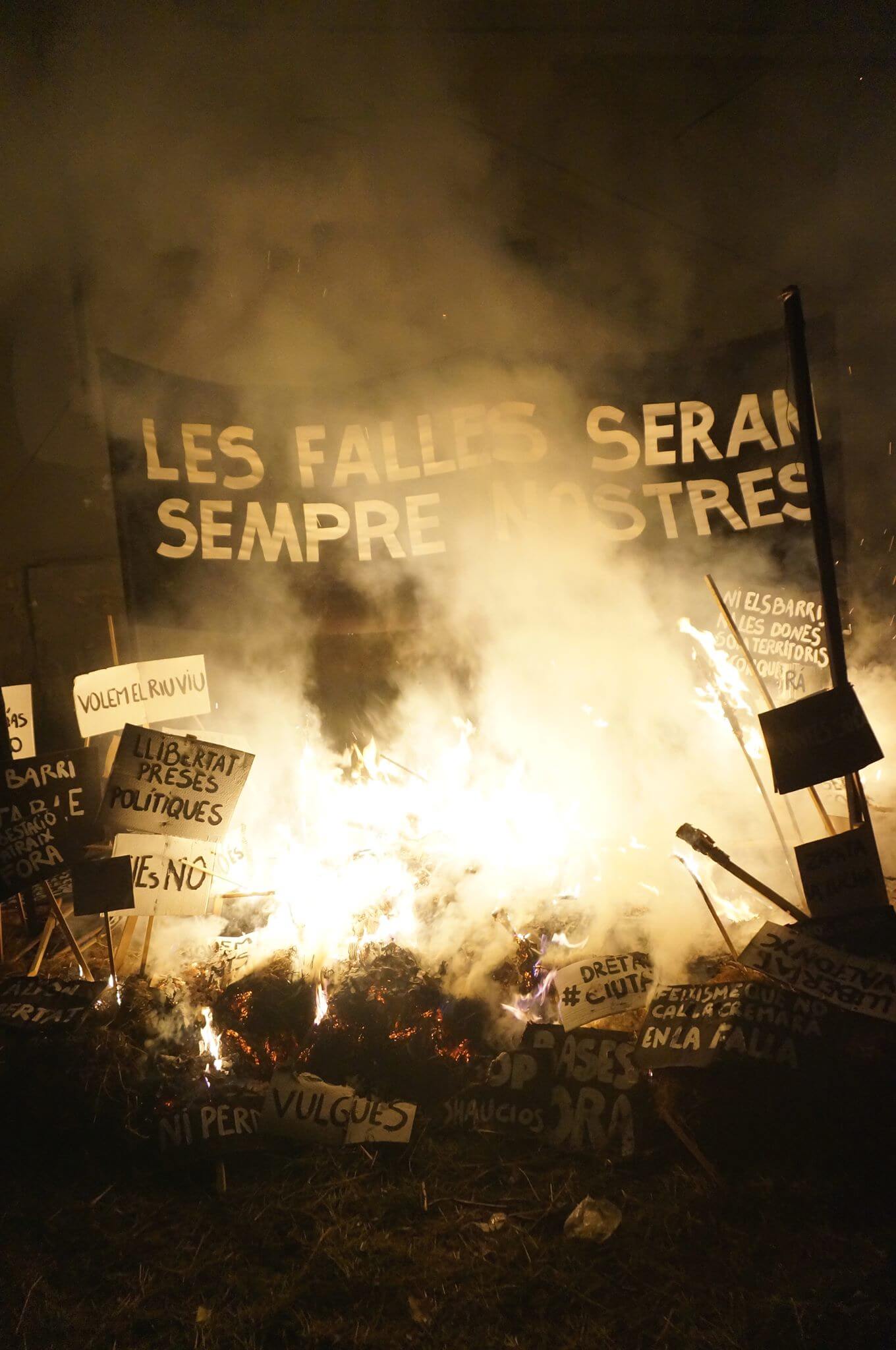 Anaïs Florin and her banners were used to protest through the streets of La Punta and then also burnt for Fallas.