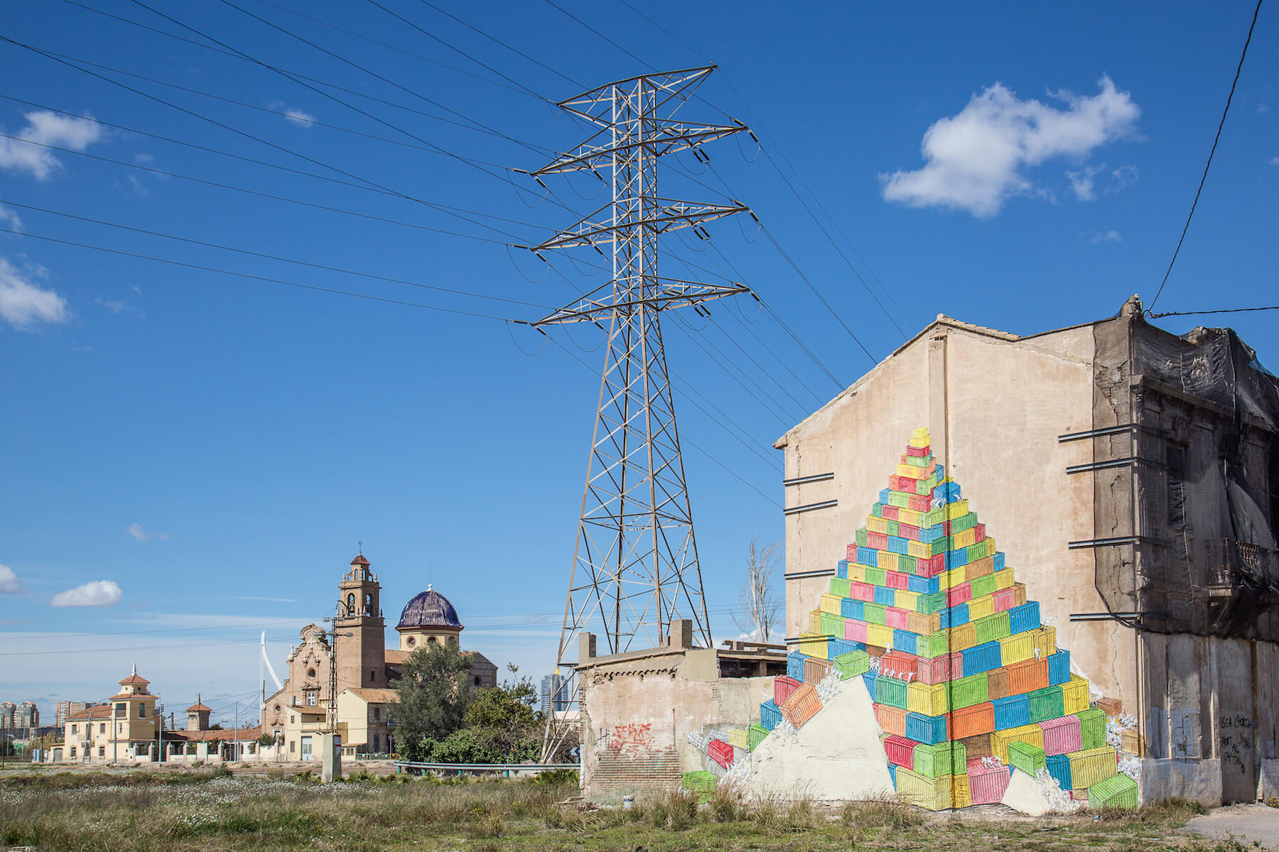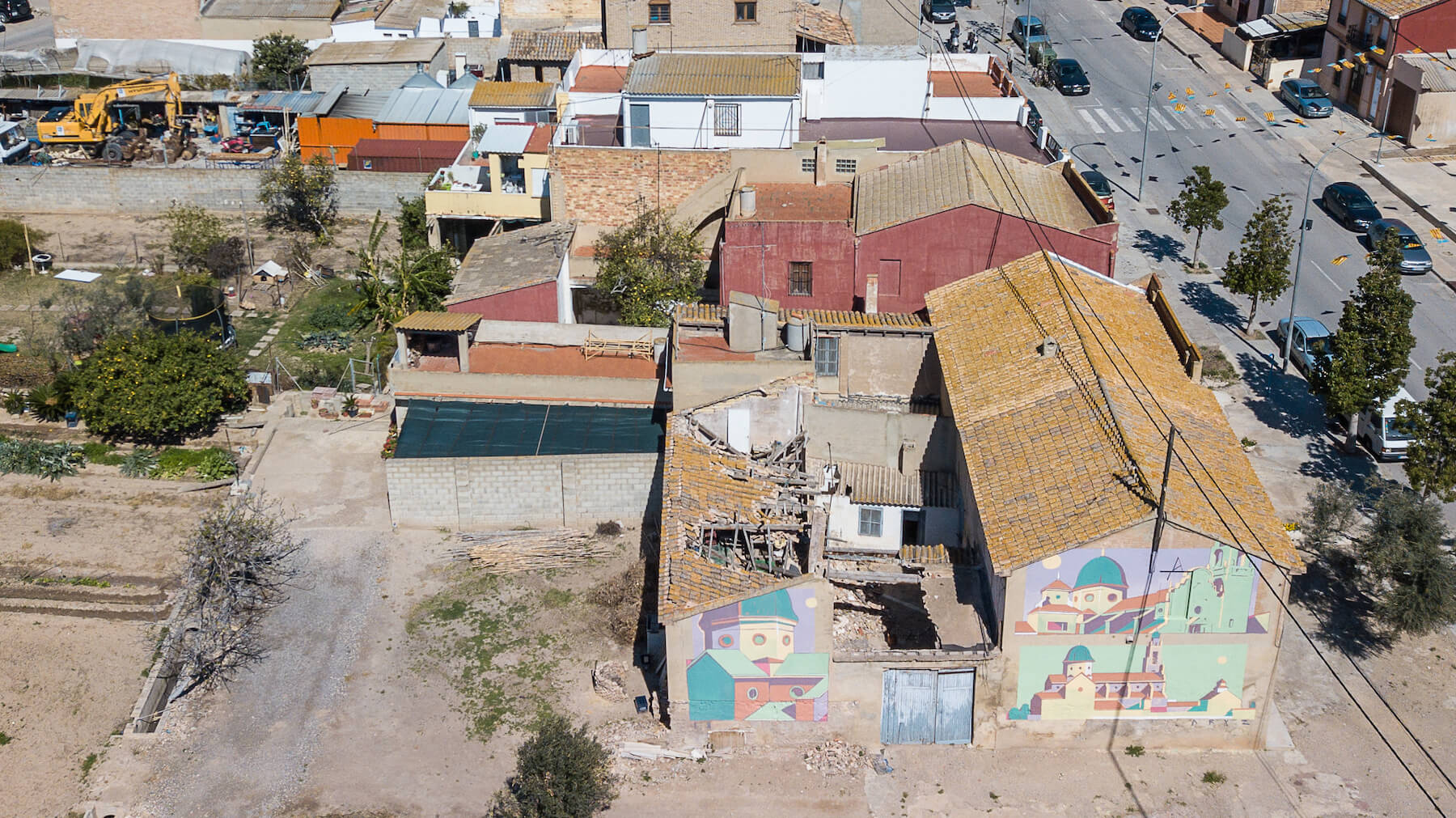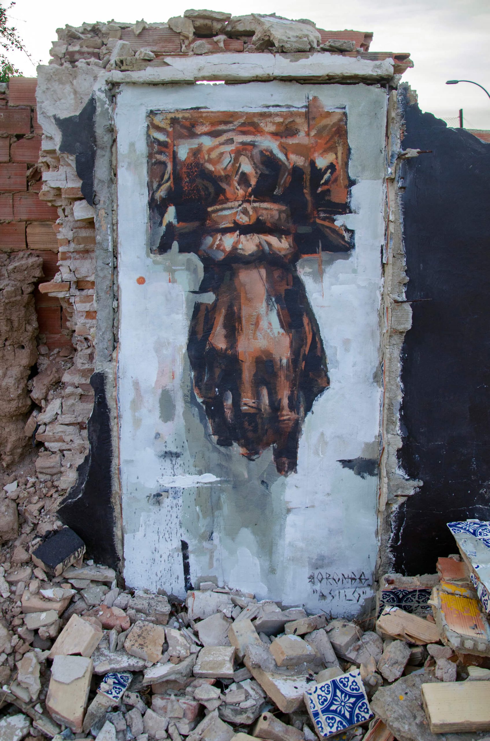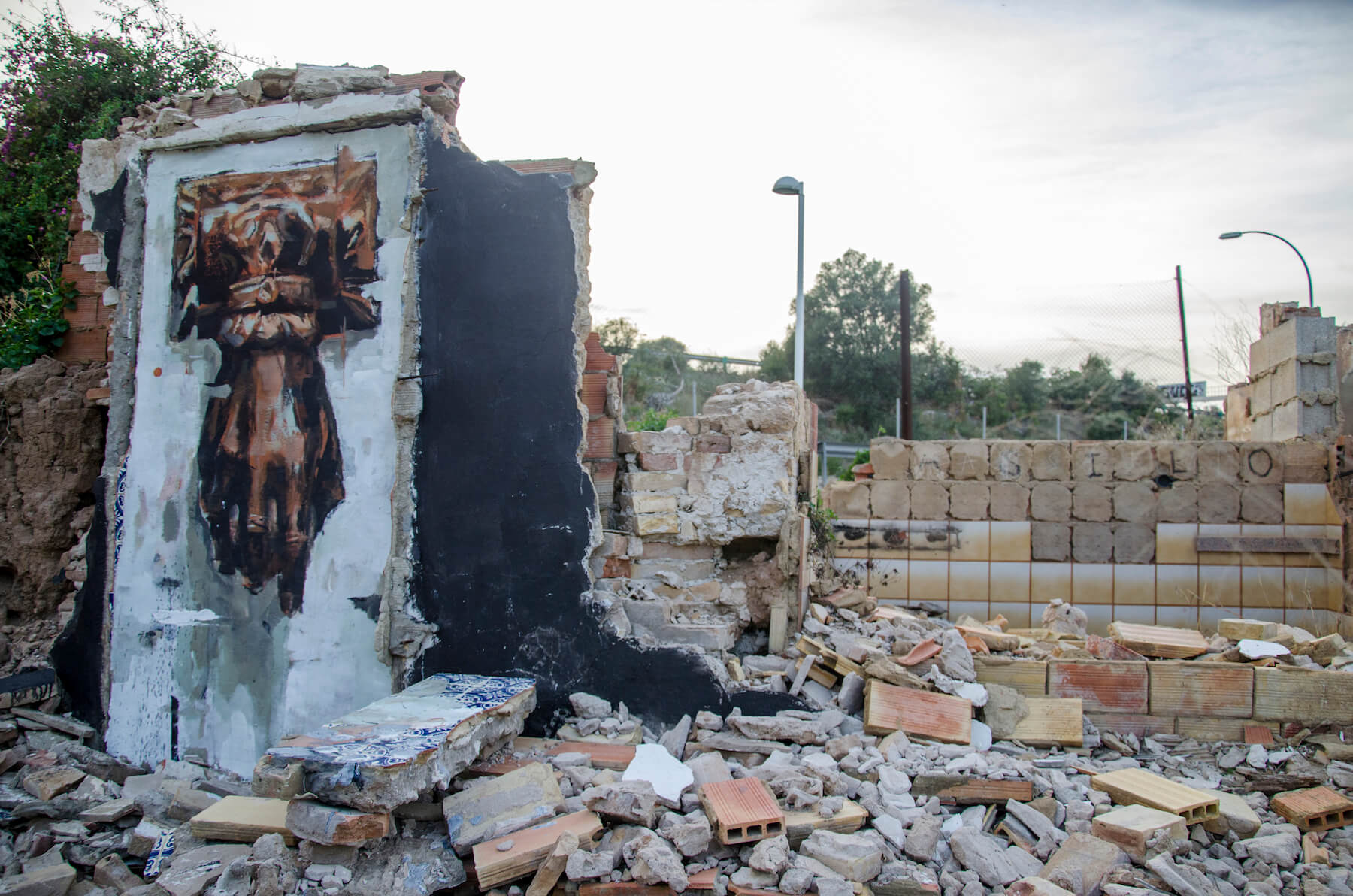 “Mural made in the Valencian neighbourhood of La Punta, their neighbourhoods have been fighting since 1994 against one of the greatest urban and social nonsense lived in the city. After the destruction of their homes and orchards in 2002, they continue fighting to bring to light the political mezzanine that altered their lives forever.” Daniel Muñoz SAN