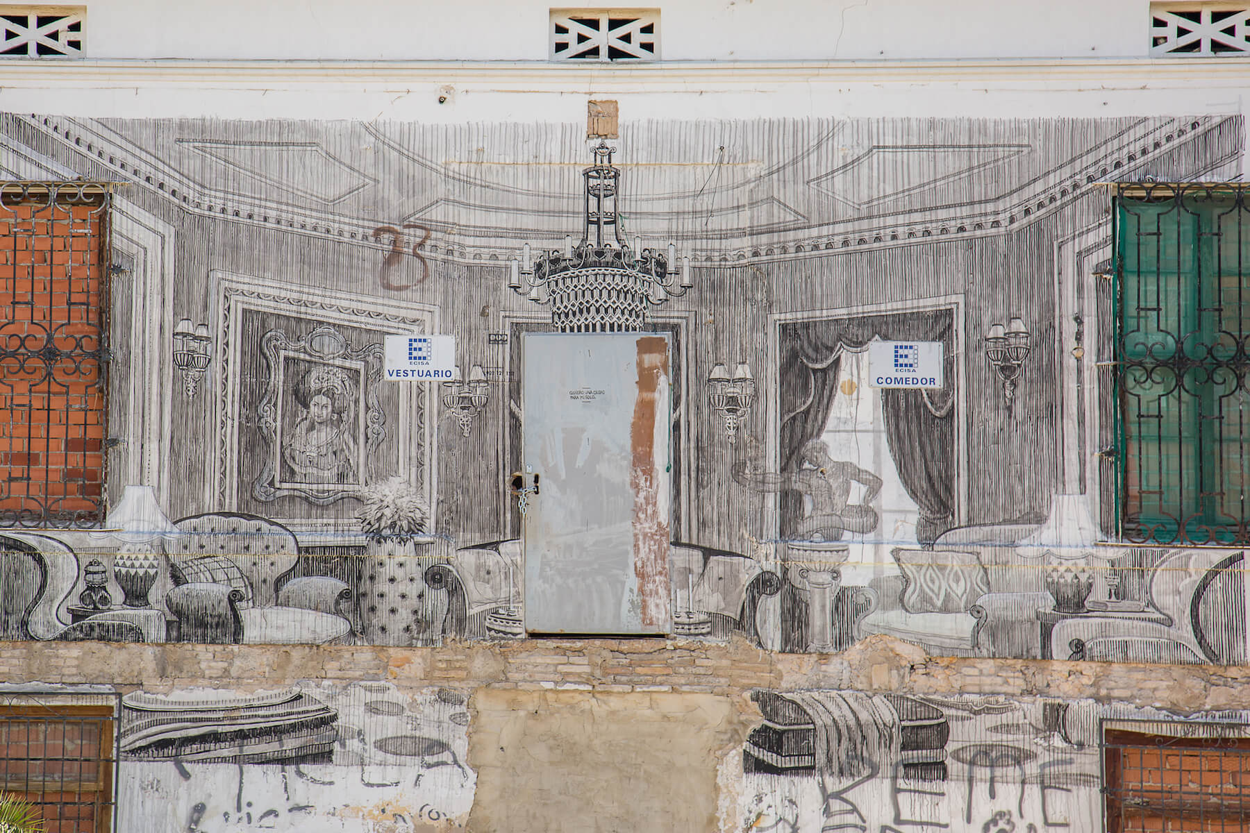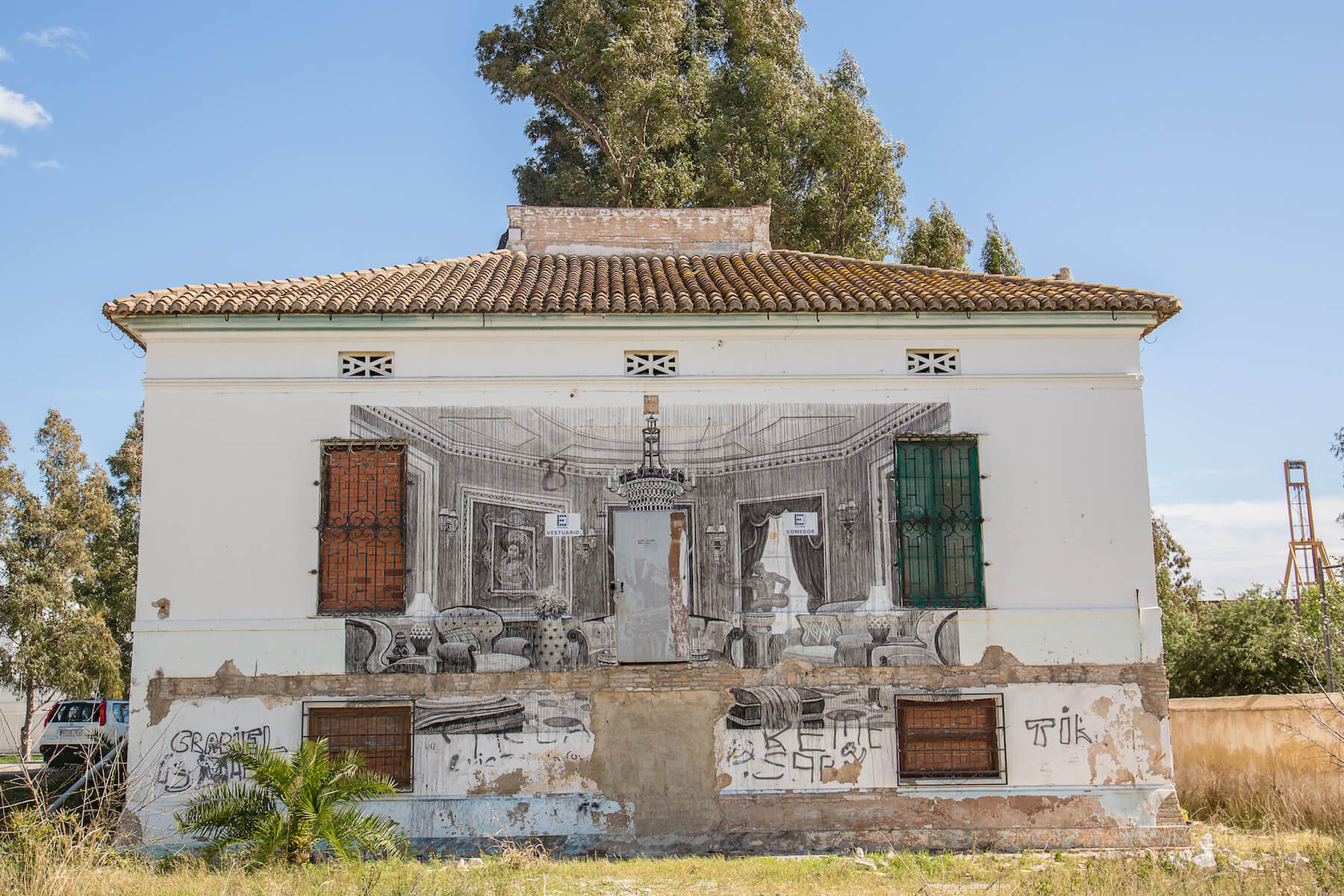 Daniel Muñoz SAN painted a plush living room scene onto a house entitled ‘The wasteland”.