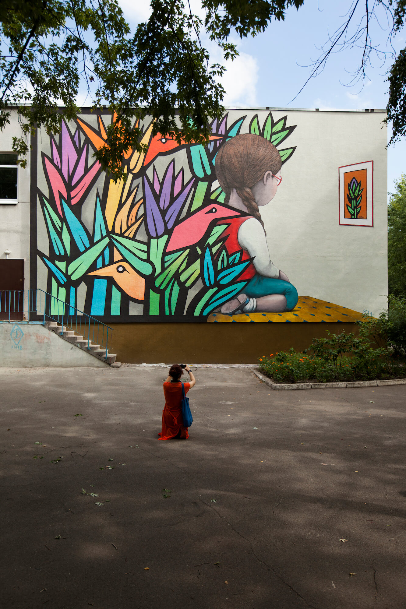 Back to School Ukraine is curated by French artist Julien Malland aka Seth Globepainter and Oleg Sosnov, Mural Social Club, with the support of UNICEF Ukraine and Sky Art Foundation. The project is dedicated to the mural art in schools, kindergartens and other locations, related with children or education, in socially vulnerable zones.