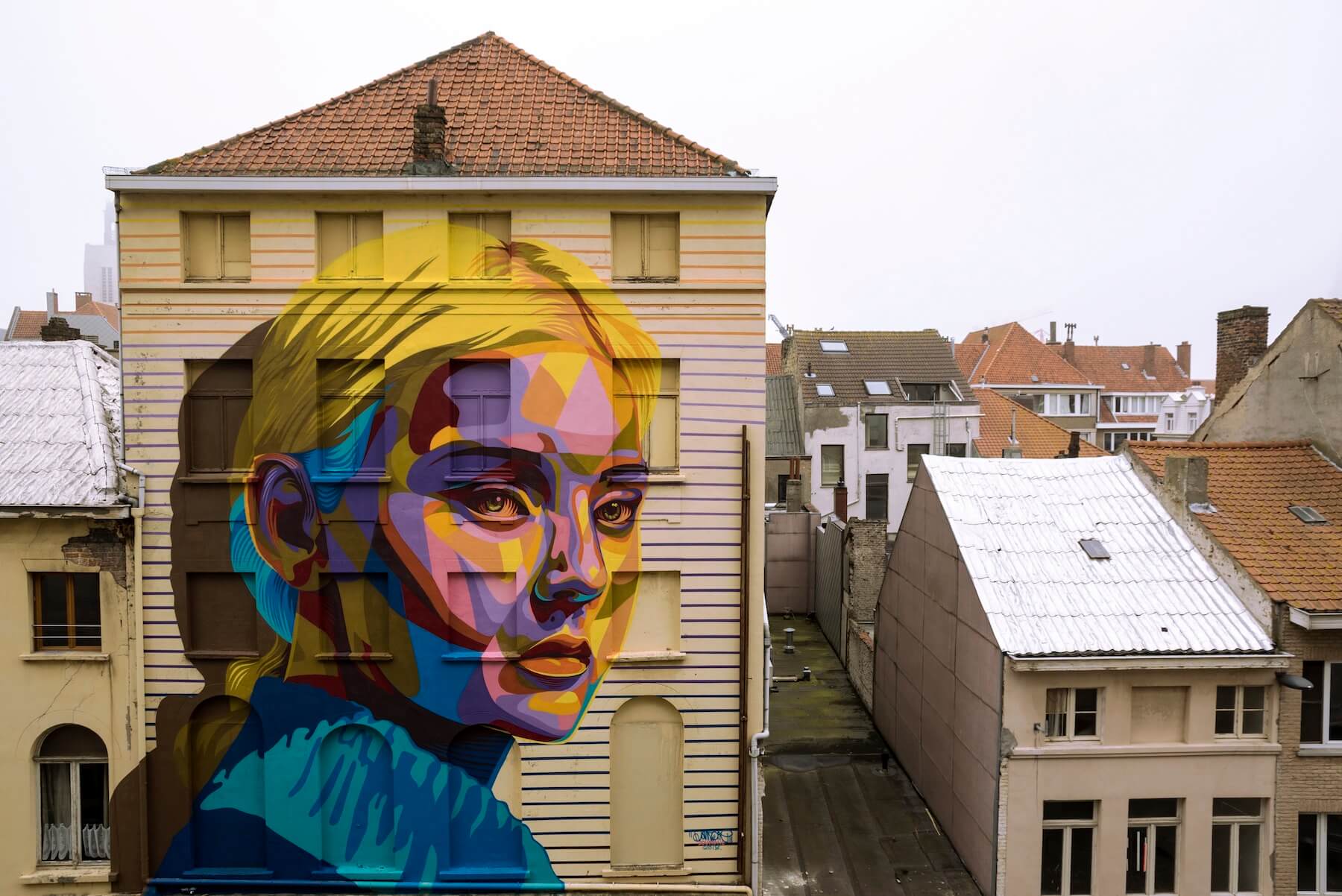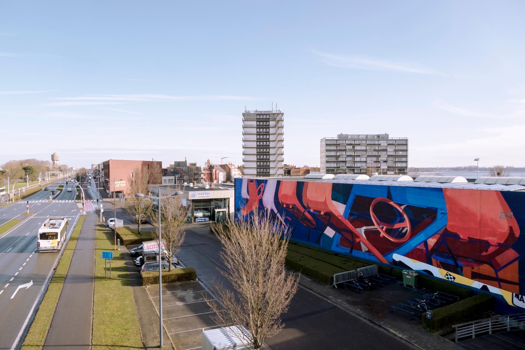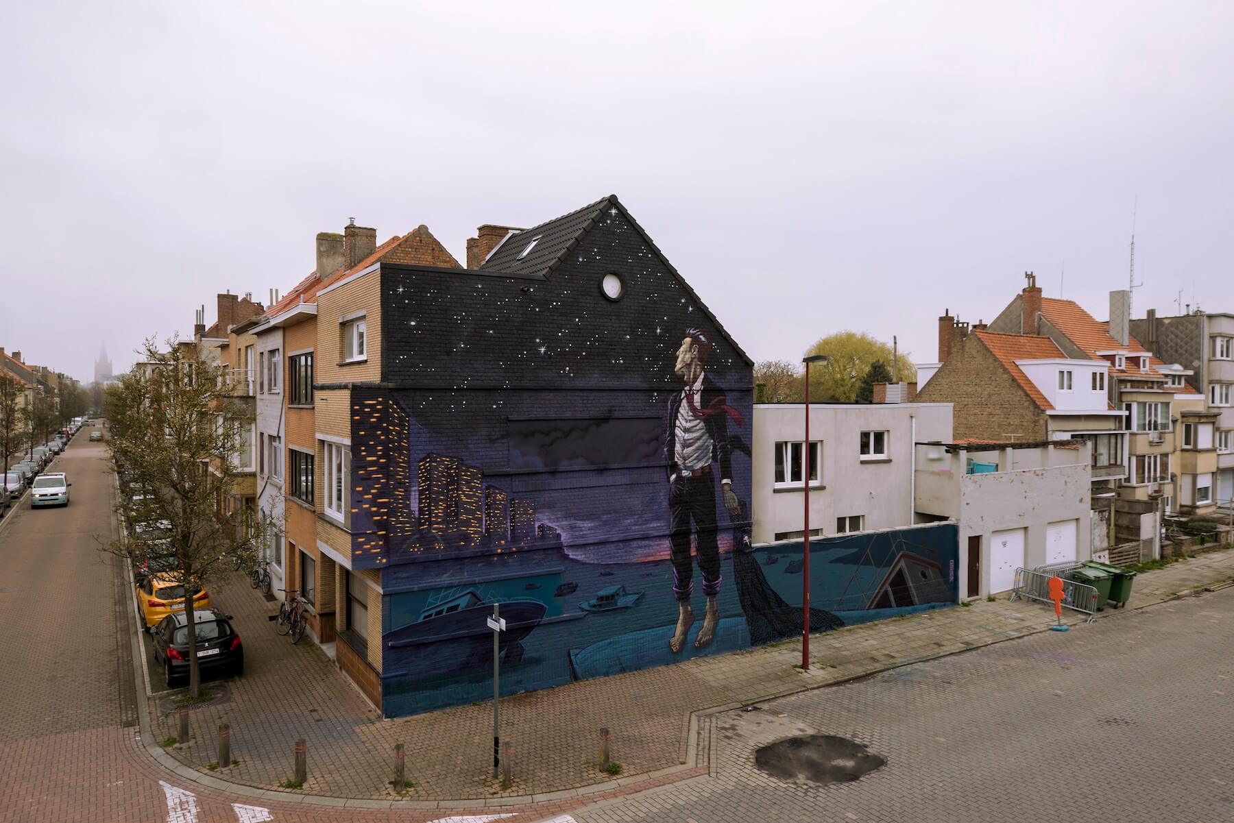 Antwerp artist Joachim painted a huge mural just outside the city centre. His inspiration for the mural was from a conversation he had with an elderly man on the coastal tram from De Haan towards Ostend.